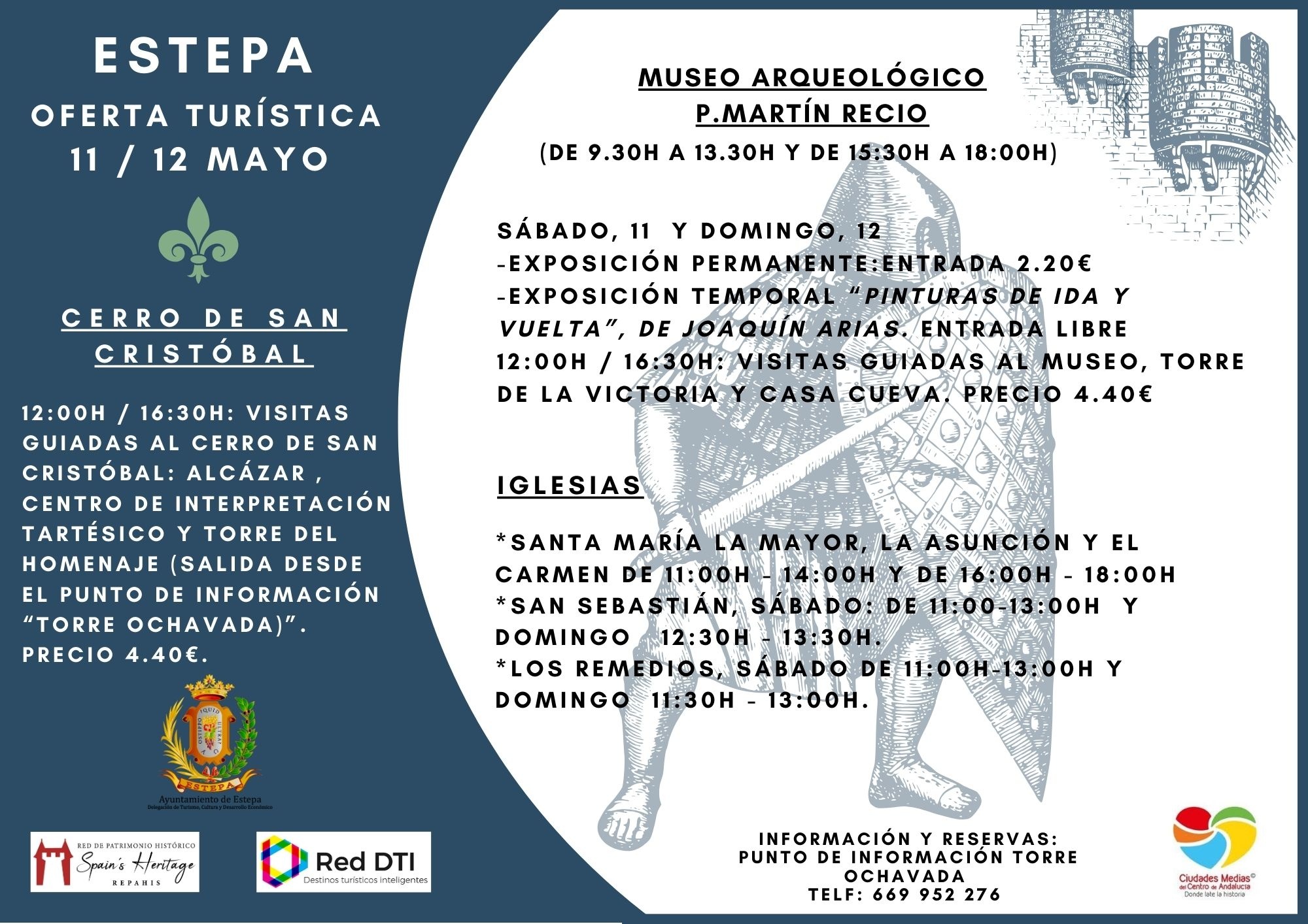 12:00h / 16:30H: Visitas guiadas al Cerro de San Cristóbal: Alcázar , Centro de Interpretación Tartésico y Torre del Homenaje (Salida desde el punto de información “Torre Ochavada)”. Precio 4.40€.