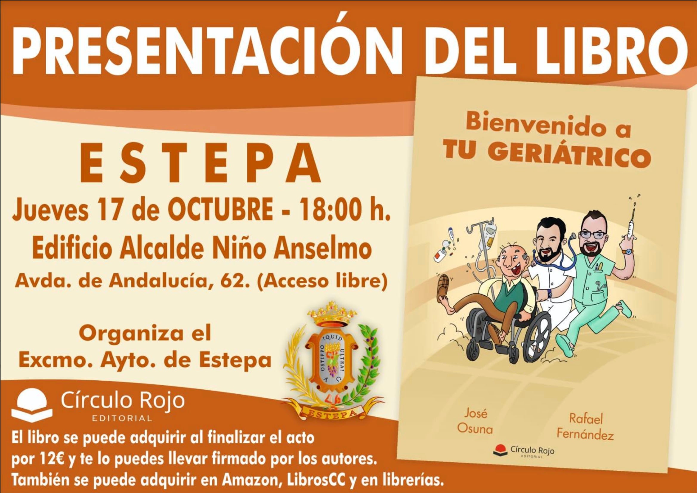 Este jueves día 17 de Octubre a las 18h tendrá lugar en el salón de Actos del Edificio Alcalde Niño Anselmo la presentación del libro "Bienvenido a tu geriátrico", por parte de sus autores Rafael Fernández y José Osuna. Os invitamos a todos a asistir y disfrutar de este acto. A la finalización del mismo aquellos que lo deseen podrán adquirir el ejemplar y llevárselo firmado por los autores. Os esperamos. Entrada libre hasta completar aforo.