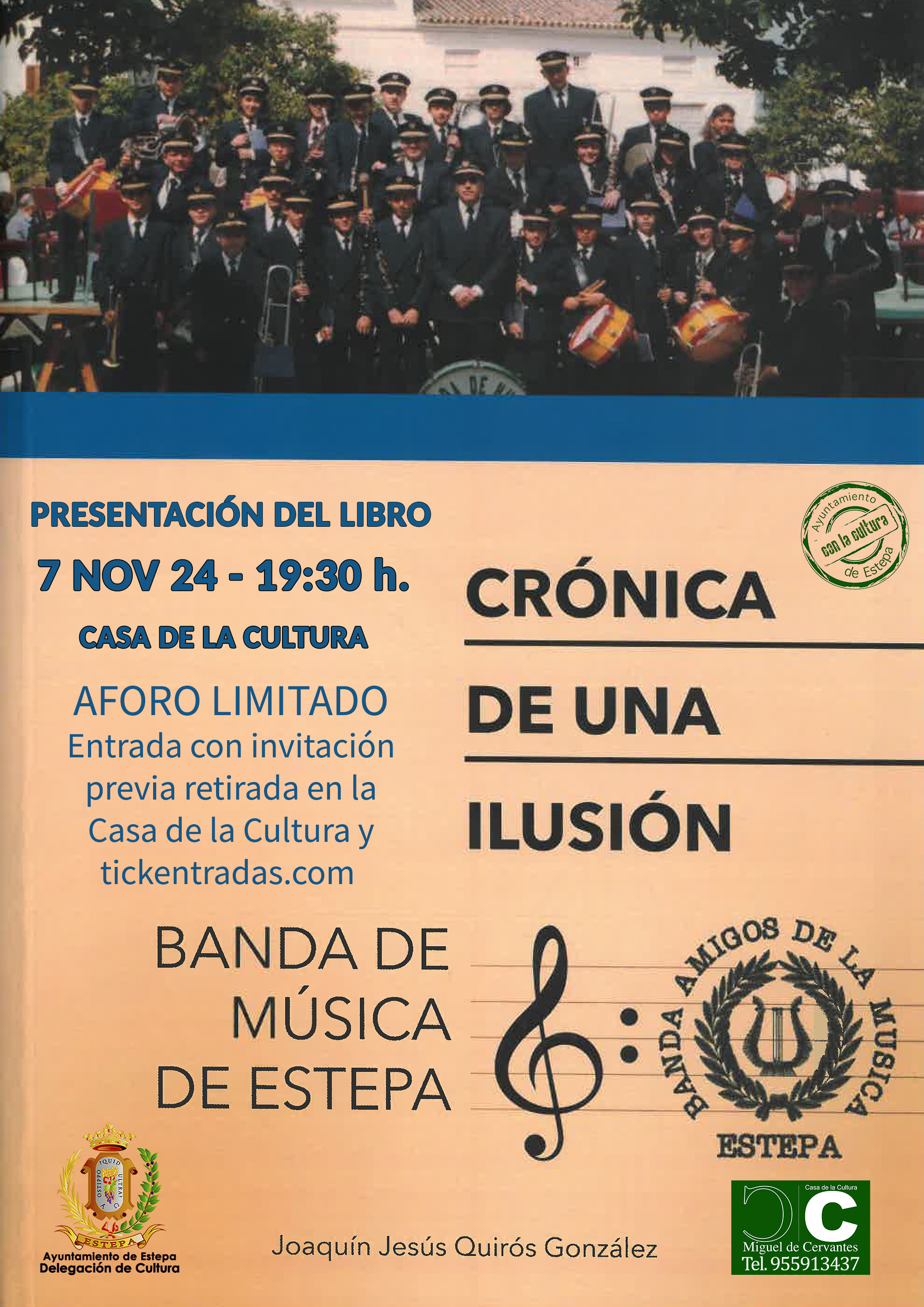 La Delegación de Cultura organiza la presentación del libro CRÓNICA DE UNA ILUSIÓN, escrito por Joaquín Jesús Quirós, conocido entre los estepeños como el “maestro de la música”.