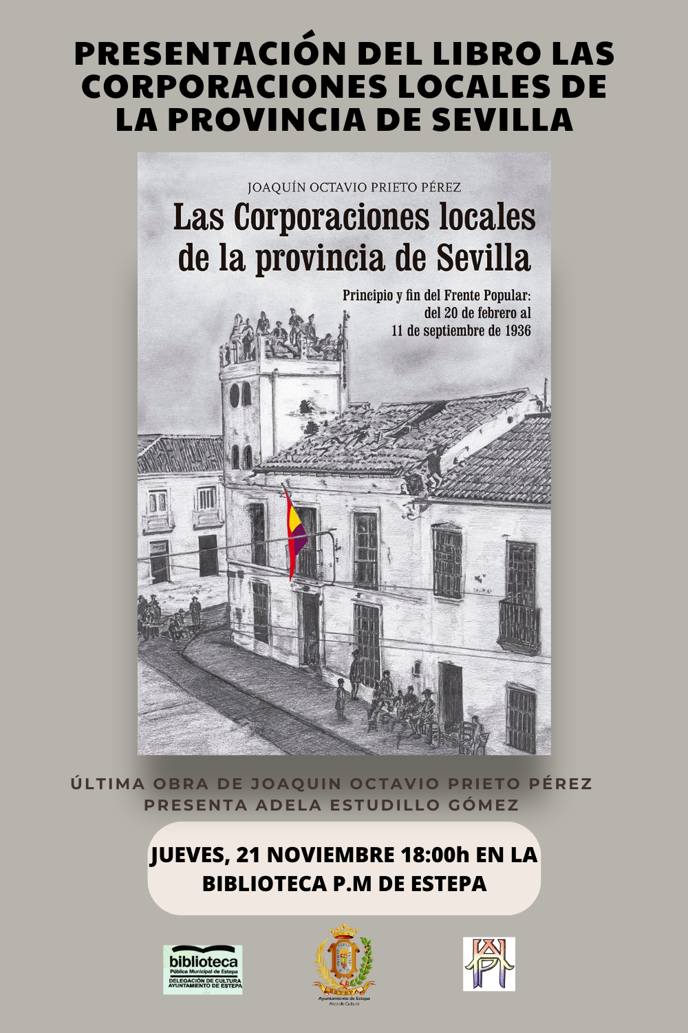 Desde la Delegación de Cultura, el próximo jueves 21 de noviembre a las 18:00 h, se realizará en la Biblioteca P.M de Estepa, la presentación del libro “LAS CORPORACIONES LOCALES DE LA PROVINCIA DE SEVILLA”.
