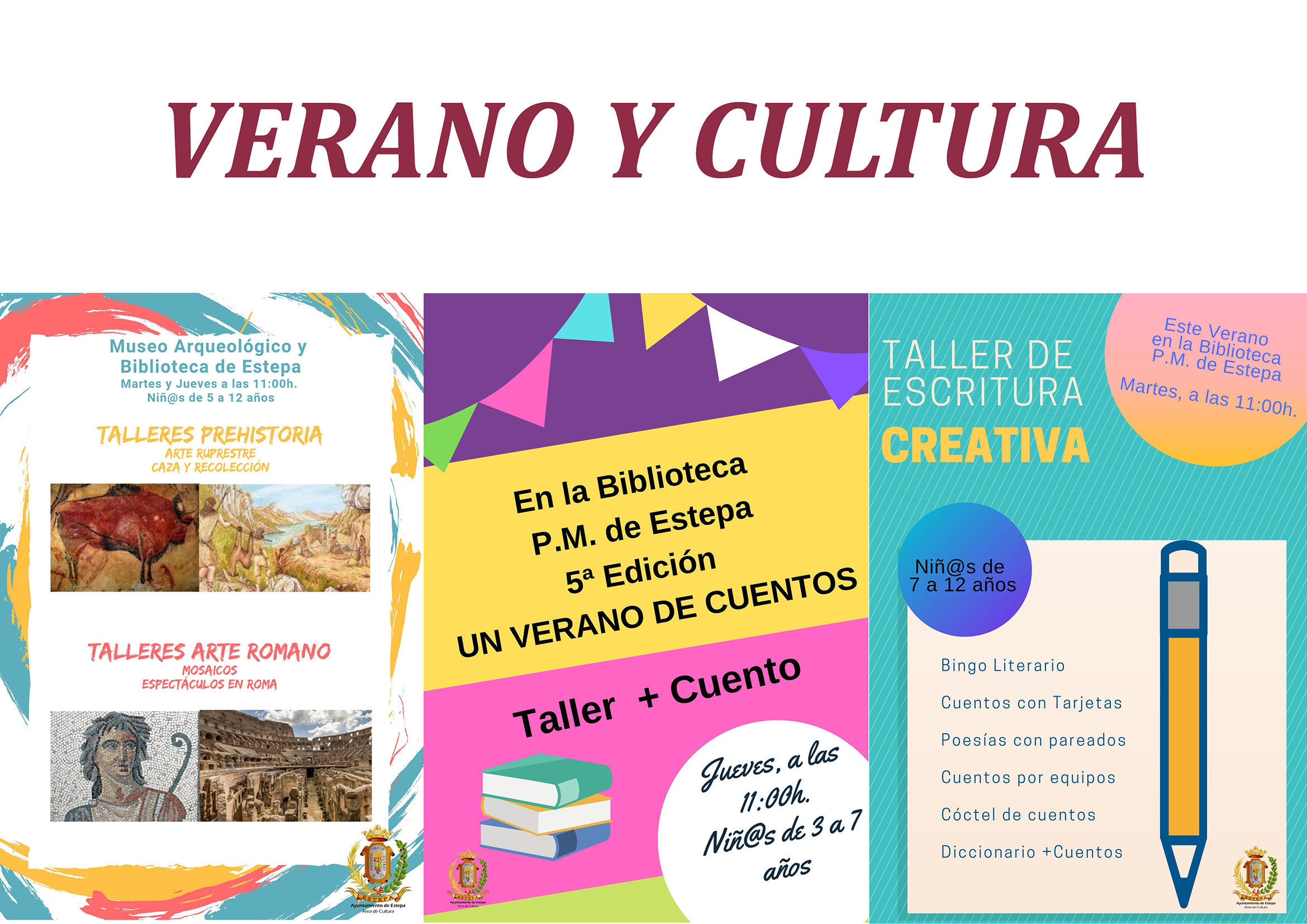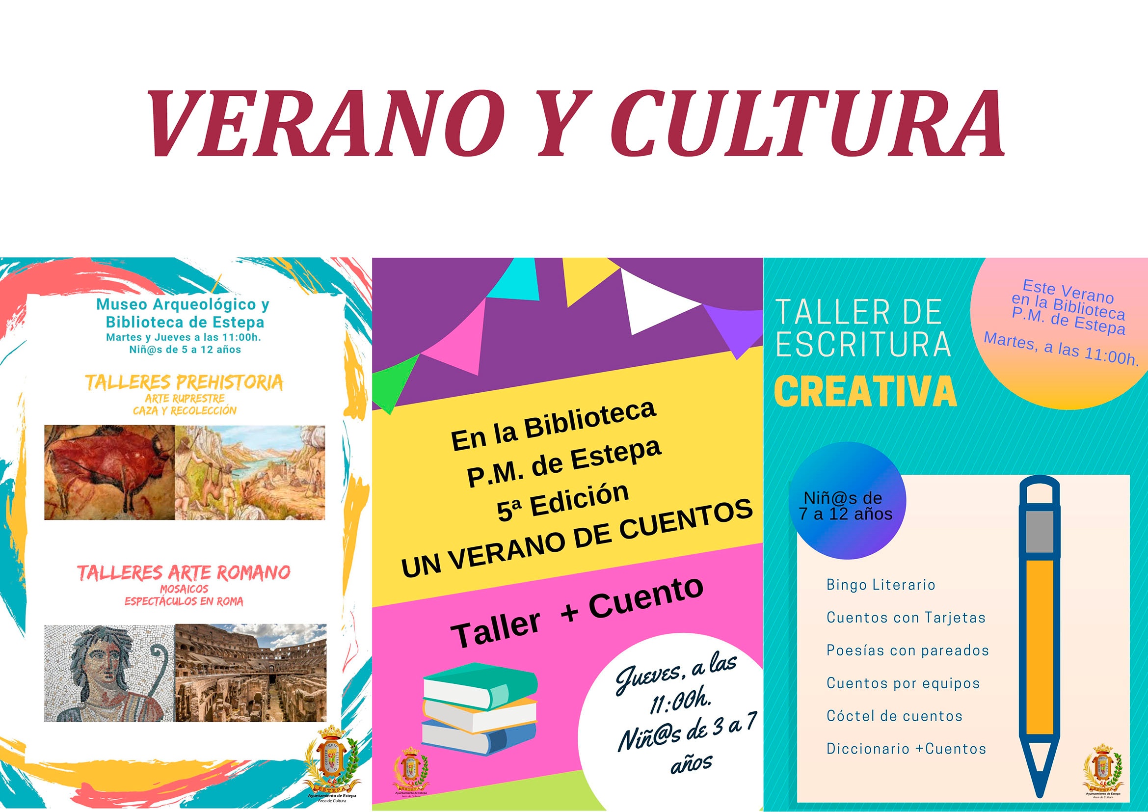 Continuamos con los talleres de verano desde la Biblioteca P.M. de Estepa. Todos los talleres son las 11:00h y tendrán una duración de 1 hora aproximadamente. La próxima semana los talleres son los siguientes: