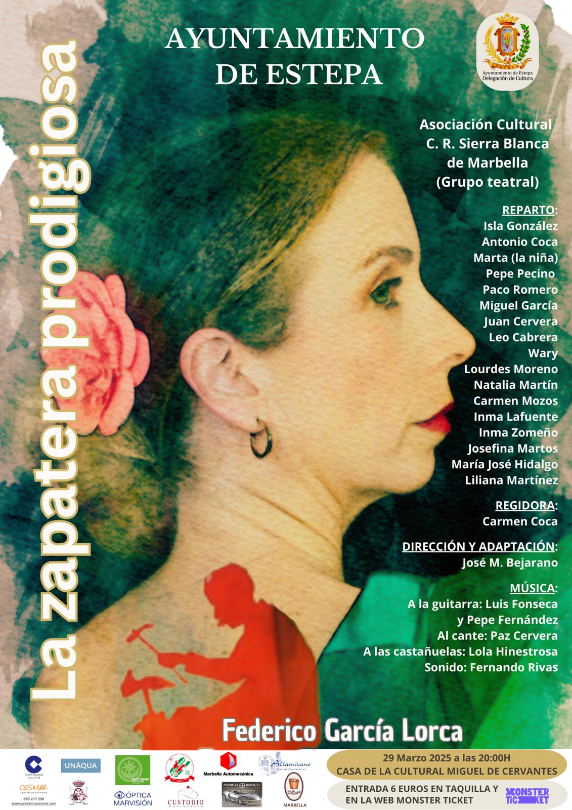 La Asociación Cultural C. R. Sierra Blanca de Marbella – Grupo Teatral, representa esta obra de teatro, adaptada y dirigida por JOSÉ MANUEL BEJARANO y formada por los siguientes actor@s, LAURA GONZÁLEZ, ANTONIO COCA, MARTA DÍAZ, PEPE PECINO, PACO ROMERO, MIGUEL GARCÍA, JUAN CERVERA, LEO CABRERA, WARY, LOURDES MORENO, NATALIA MARTÍN, CARMEN MOZOS, INMA LAFUENTE, INMA ZOMEÑO, JOSEFINA MARTOS, MARÍA JOSÉ HIDALGO, LILIANA MARTÍNEZ y nuestra querida Regidora CARMEN COCA. A la guitarra: LUIS FONSECA y PEPE FERNÁNDEZ. Al cante: PAZ CERVERA. A las castañuelas: LOLA HINESTROSA. Técnico de Sonido: FERNANDO RIVAS.