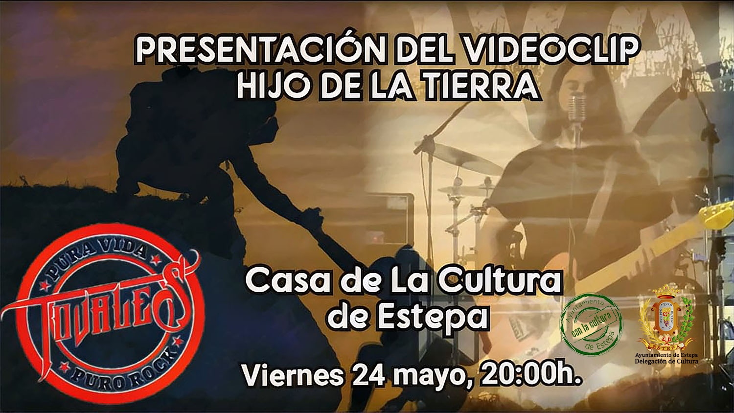 Desde la Delegación de Cultura os informamos de que el próximo 24 de mayo a las 8 de la tarde,va a tener lugar en el Casa de la Cultura de Estepa la presentación del HIJO DE LA TIERRA, el nuevo videoclip de nuestro paisano TOVALES.