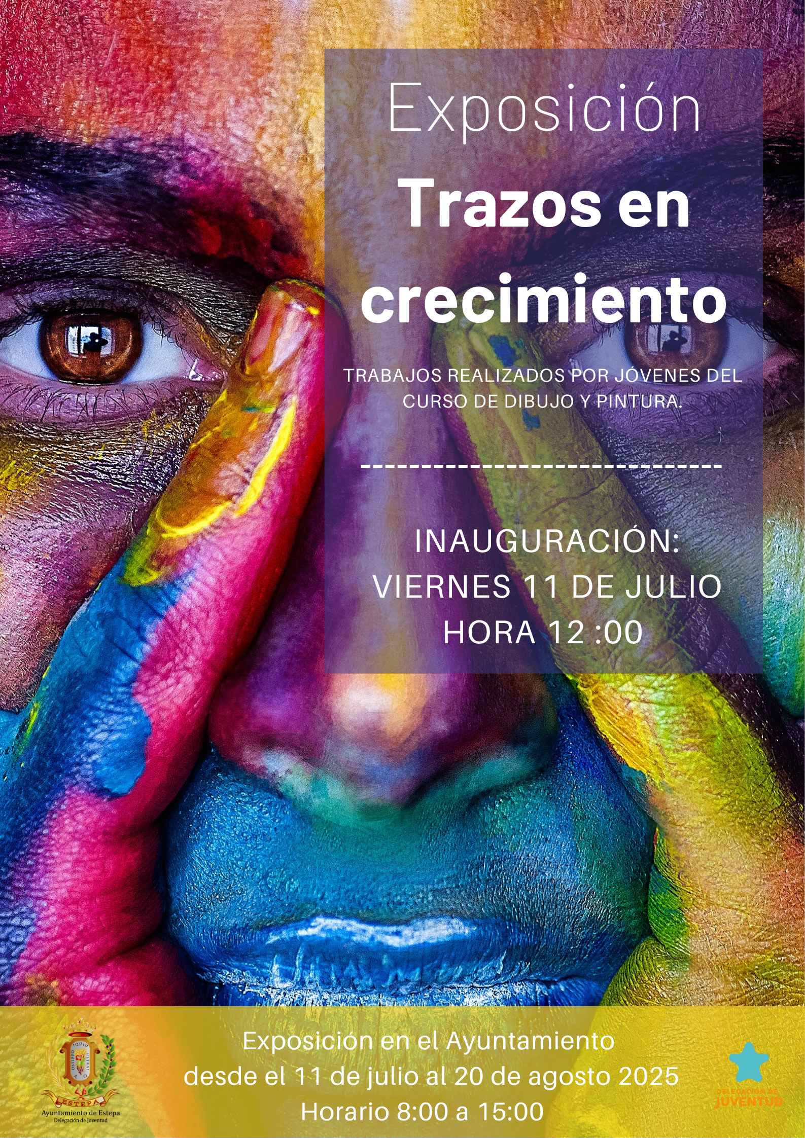 "Del 11 de julio al 20 de agosto de 2025, la Delegación de Juventud del Ayuntamiento de Estepa, organiza la exposición “TRAZOS EN MOVIMIENTO”, un recorrido visual de los trabajos realizados por jóvenes del curso de dibujo y pintura desarrollado desde diciembre a marzo de 2025.