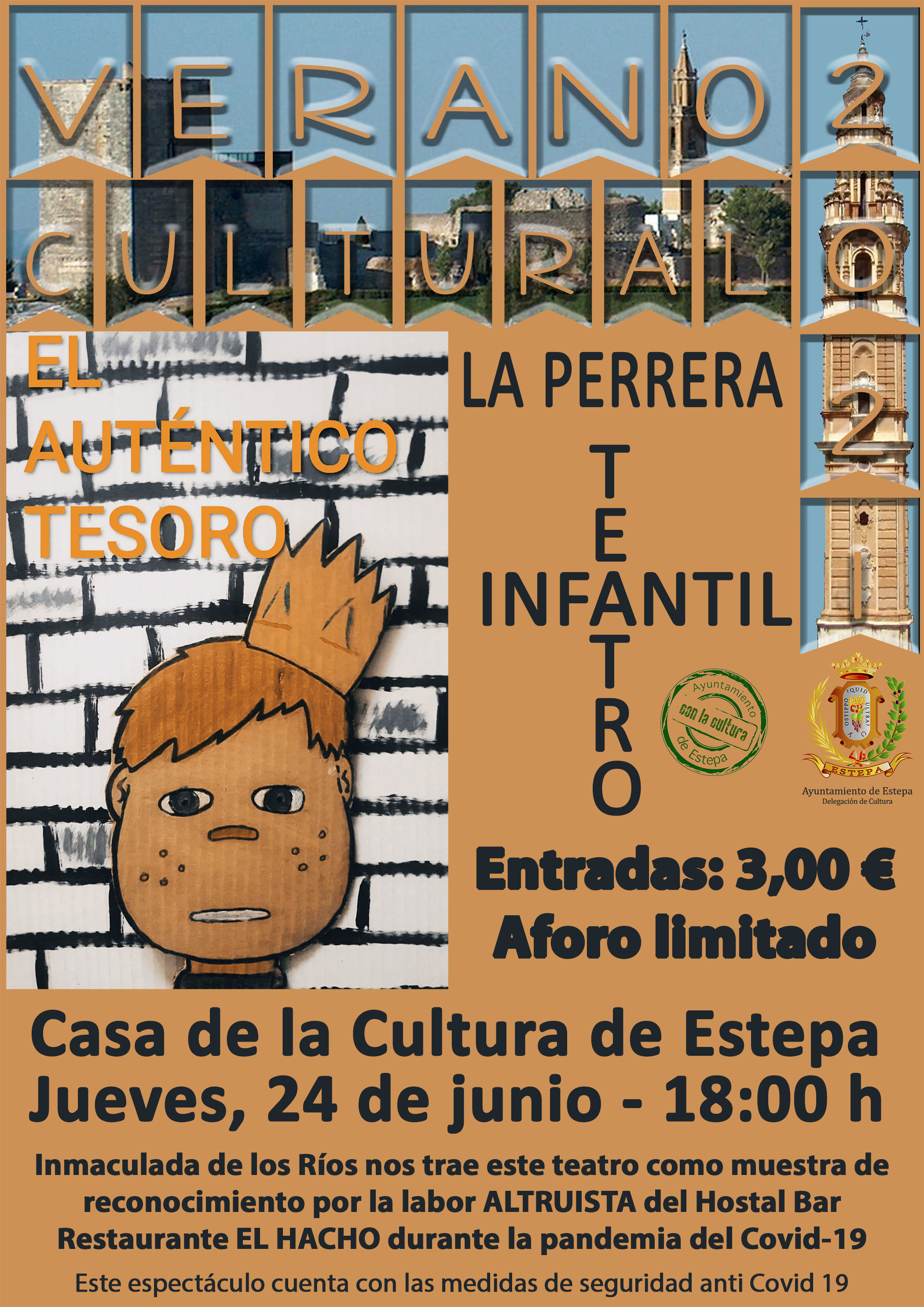 Desde la Delegación de Cultura damos el pistoletazo de salida del Verano Cultural 2021 con la Cía. LA PERRERA con una obra de teatro infantil bajo el título: EL AUTÉNTICO TESORO en la que un pequeño rey decide construir una torre, la más alta, para acabar con su miedo a perder su corona. Una fortaleza que sea la más segura del mundo. Pero algo se tuerce y la fortaleza se destruye. Sin embargo, aprenderá algo más importante: que es el amor y la amistad la mejor medicina contra el miedo.