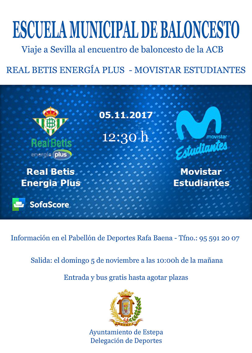 La Escuela Municipal de Baloncesto del Ayuntamiento de Estepa organiza un viaje a Sevilla al partido de Baloncesto de la ACB Real Betis Energía Plus vs Estudiantes Movistar