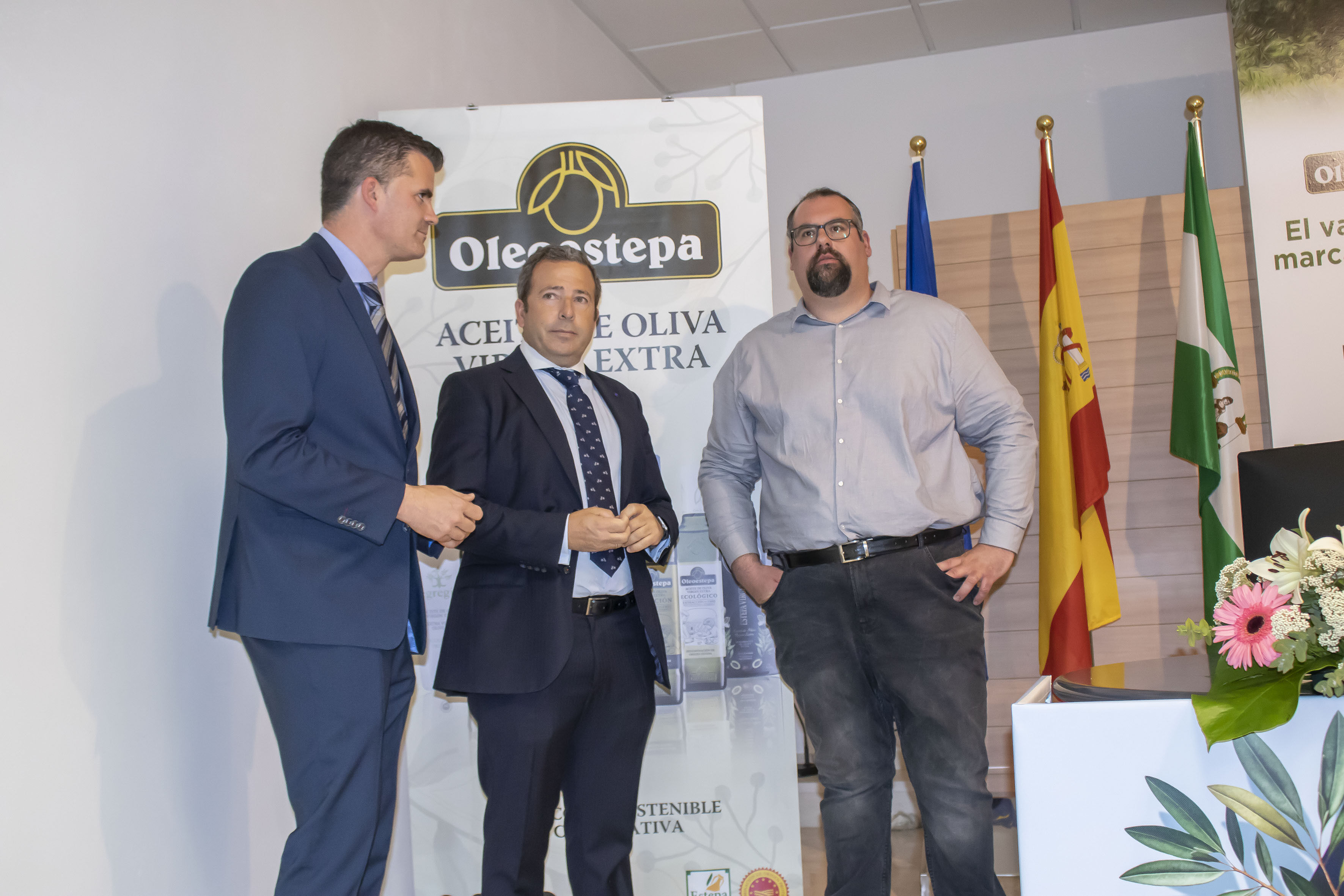 En la mesa inaugural se sentaron el alcalde de Estepa, Antonio Jesús Muñoz Quirós, el alcalde de la localidad vecina de El Rubio, Jesus Guerra Jiménez y el presidente de Oleoestepa, Juan Pedro Juárez Martín.