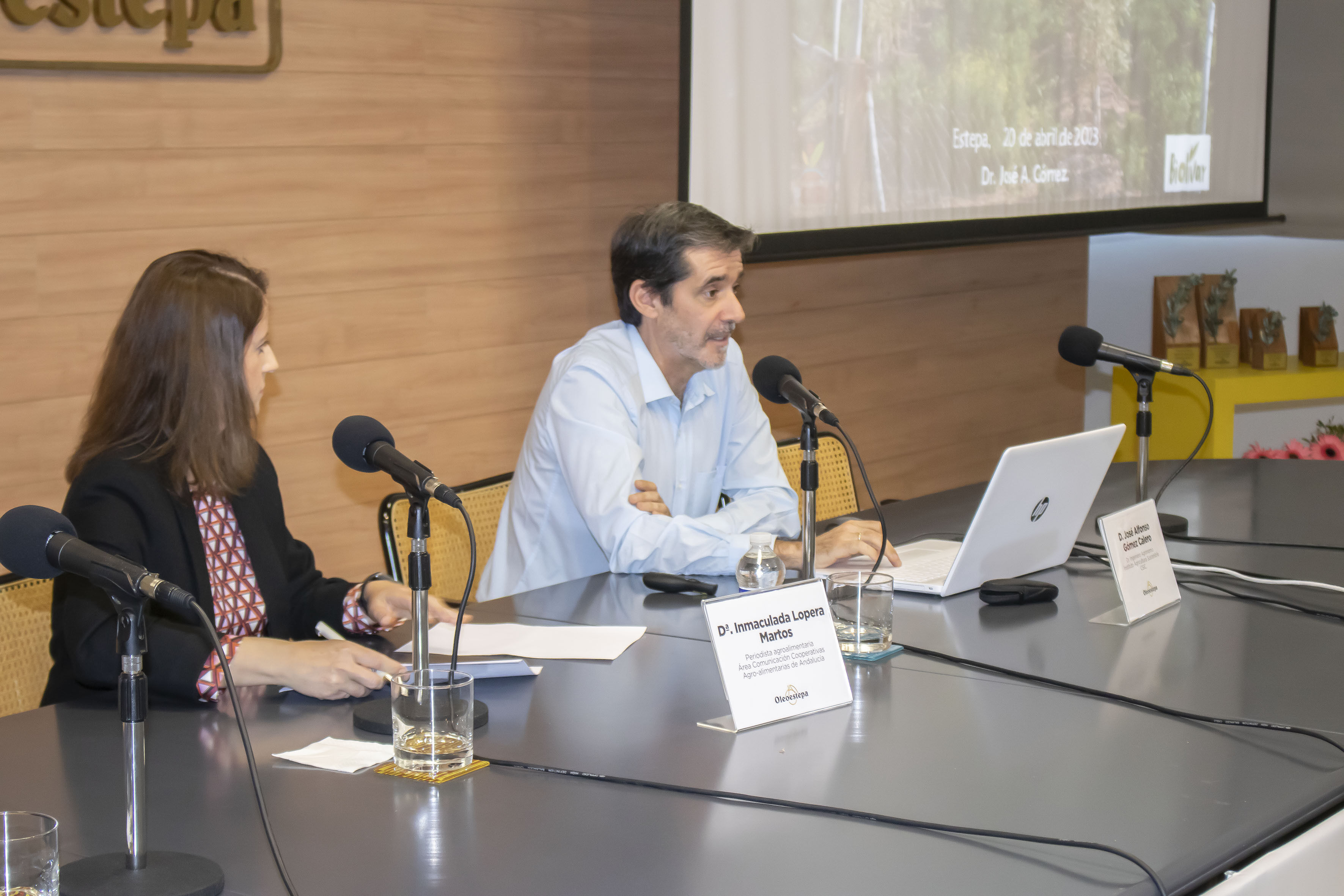 La jornada de ayer acogió la ponencia: "Un avance de guía para identificar estrategias de implantación de cubiertas adaptado a las condiciones de un olivar en particular" a cargo de José Alfonso Gómez Calero, ingeniero agrónomo del CSIC.