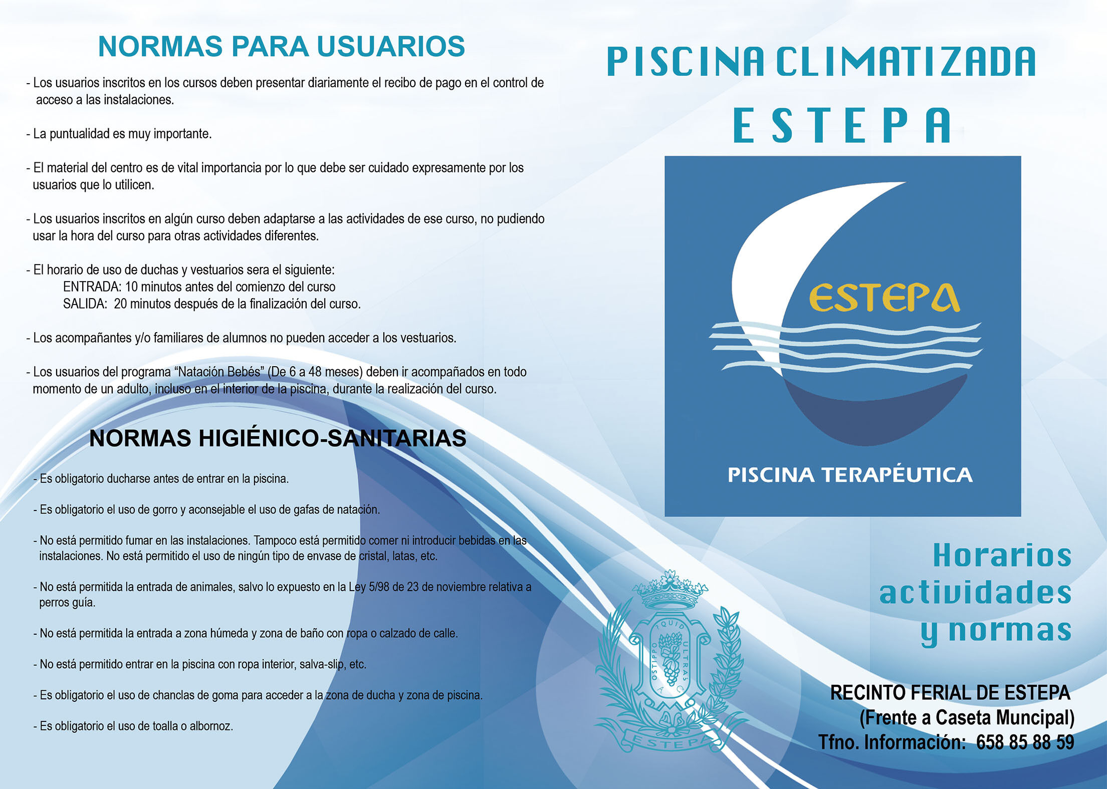 Por fin, la piscina climatizada de Estepa abrirá sus puertas a partir del próximo lunes. El mismo lunes 29 y martes 30 de abril tendrá lugar unas jornadas de puertas abiertas en la que todos los estepeños y estepeñas que lo deseen pueden pasar a conocer las instalaciones sitas en el recinto ferial, frente a la caseta municipal Paco Gandía.