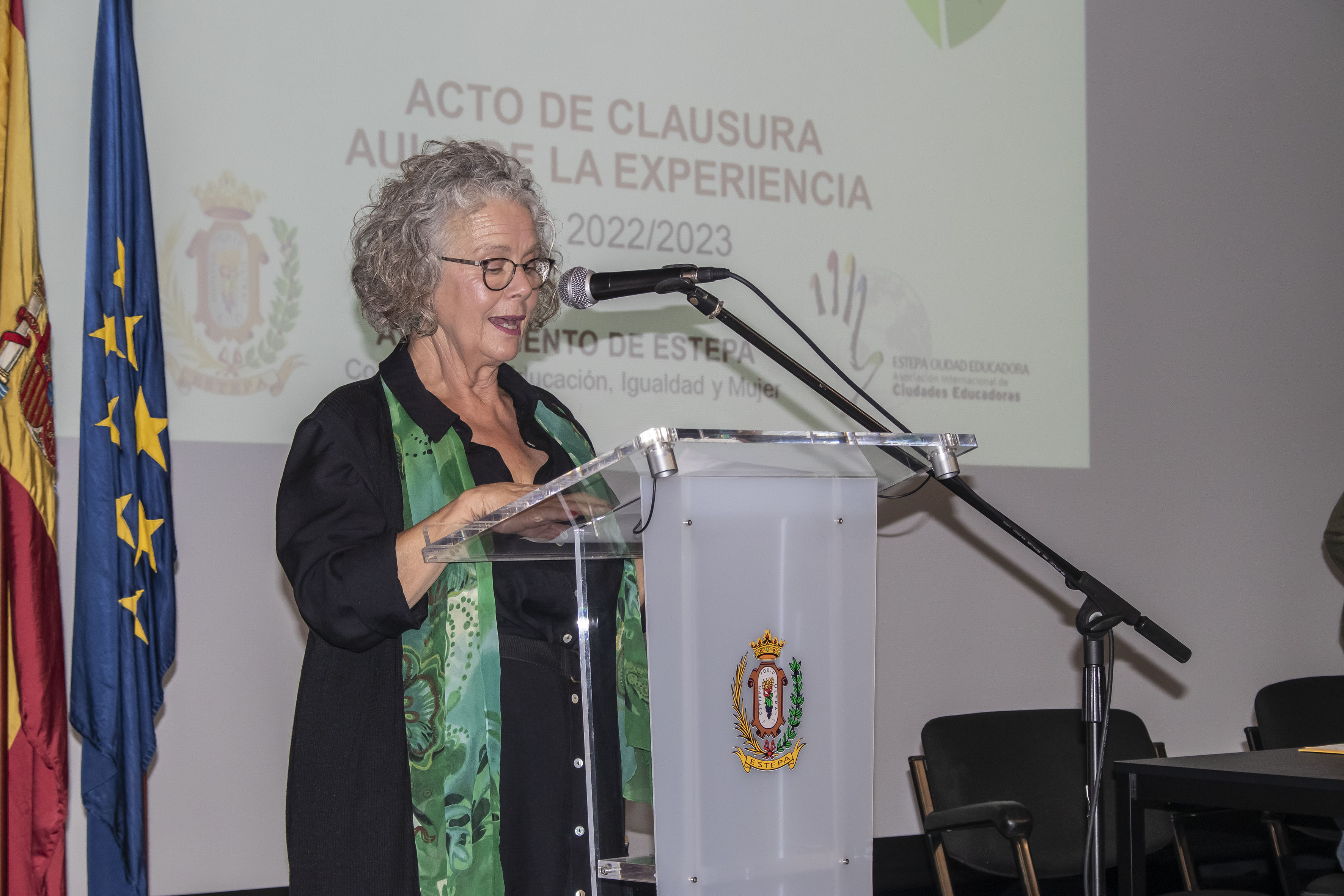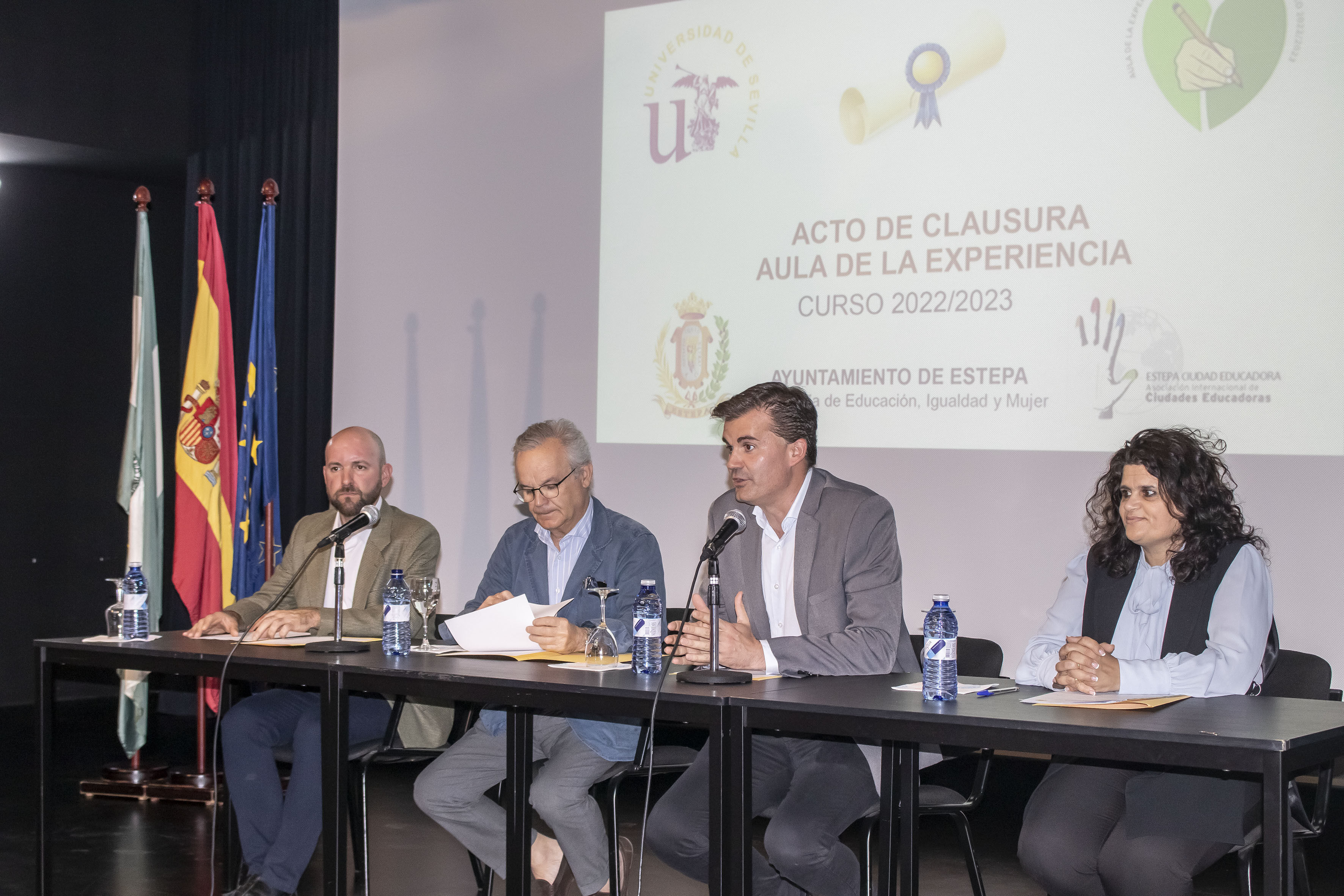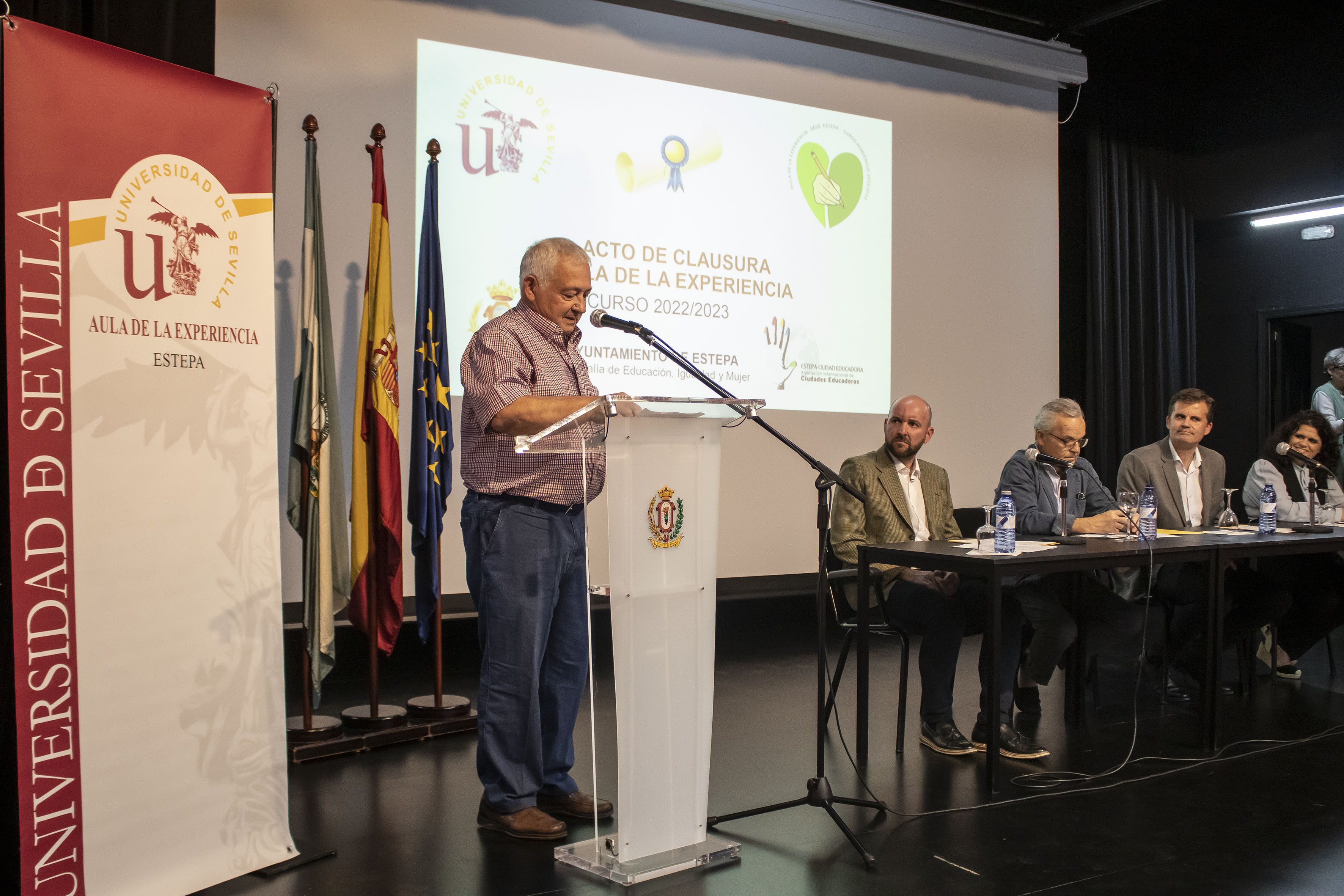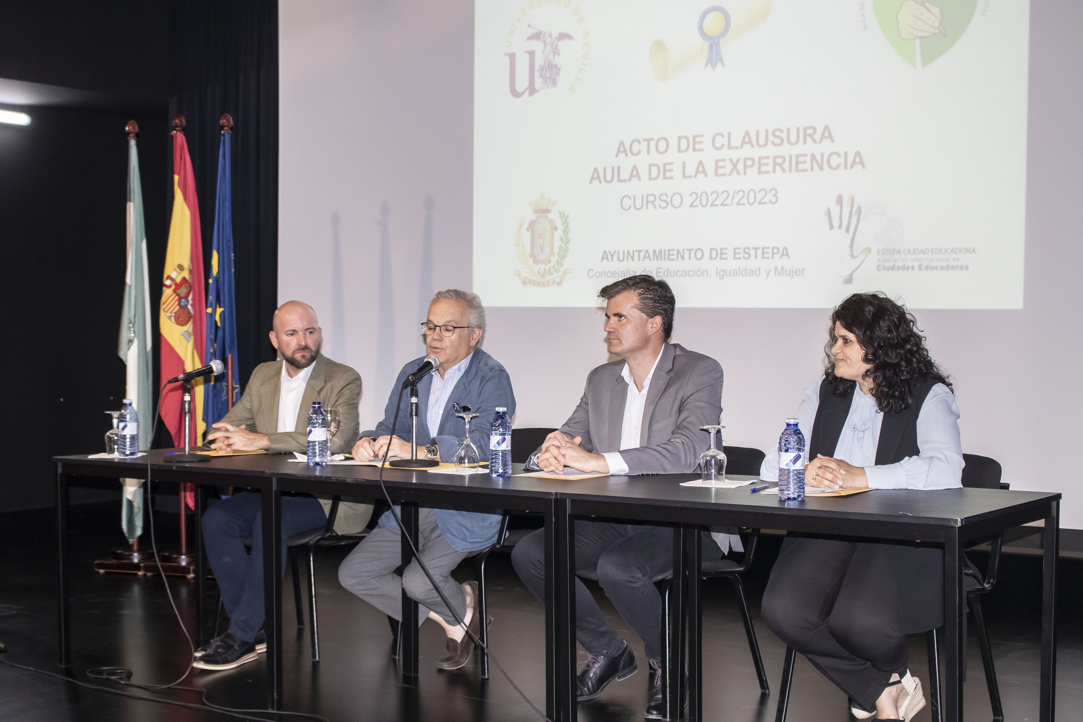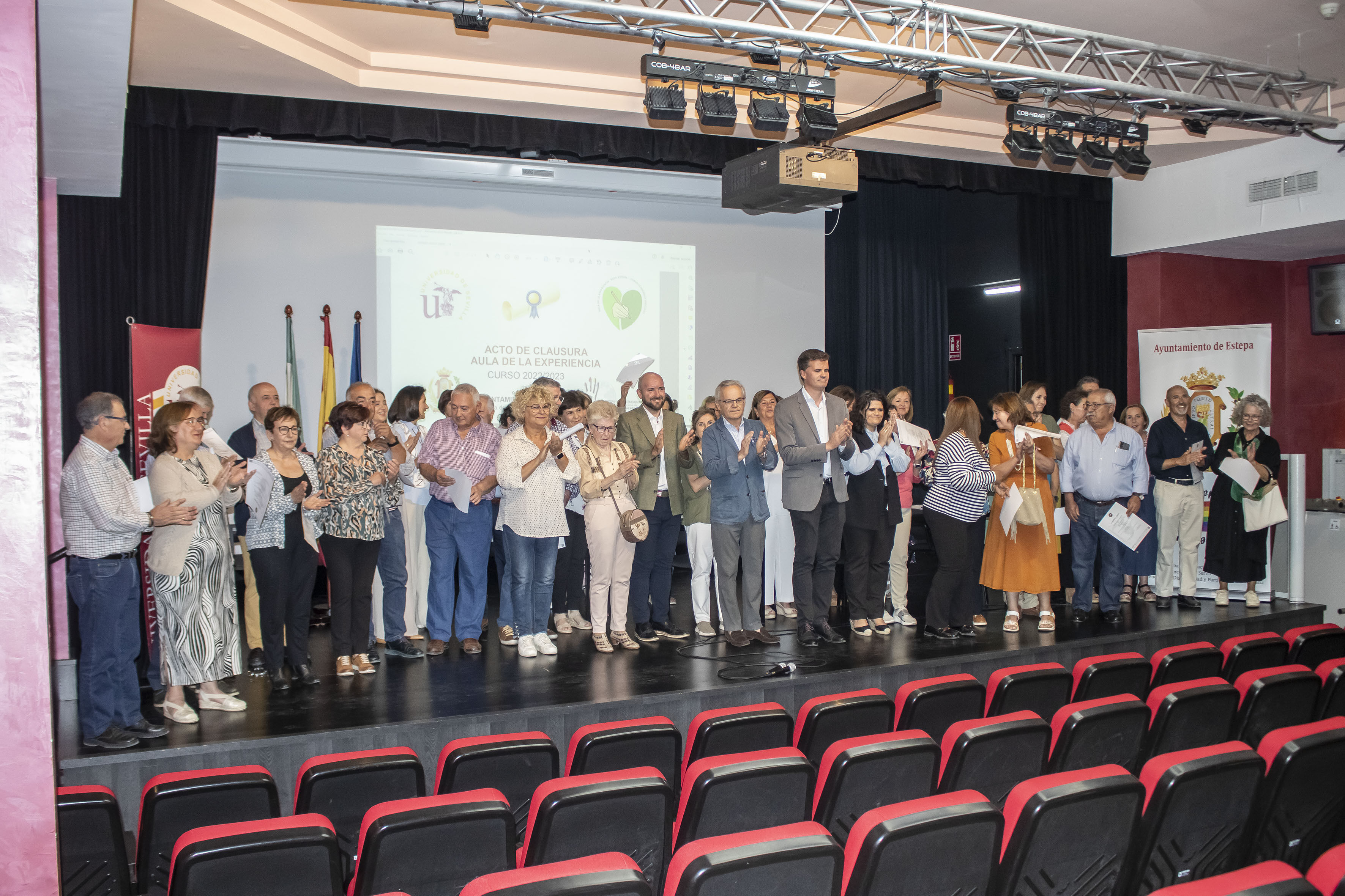 Acaba otra edición del Aula de la Experiencia en Estepa. Con más de veinte años de recorrido, Estepa es una de las localidades donde nunca ha cesado la actividad de este aula. El proyecto de la Universidad de Sevilla dirigido a los mayores consolida sus filosofía cada curso. Las mujeres y hombres participantes en el Aula de la Experiencia se sienten más formados, más informados y más capaces cada año. Como decía una de las alumnas ayer en el acto de clausura, "el aula te da alás".