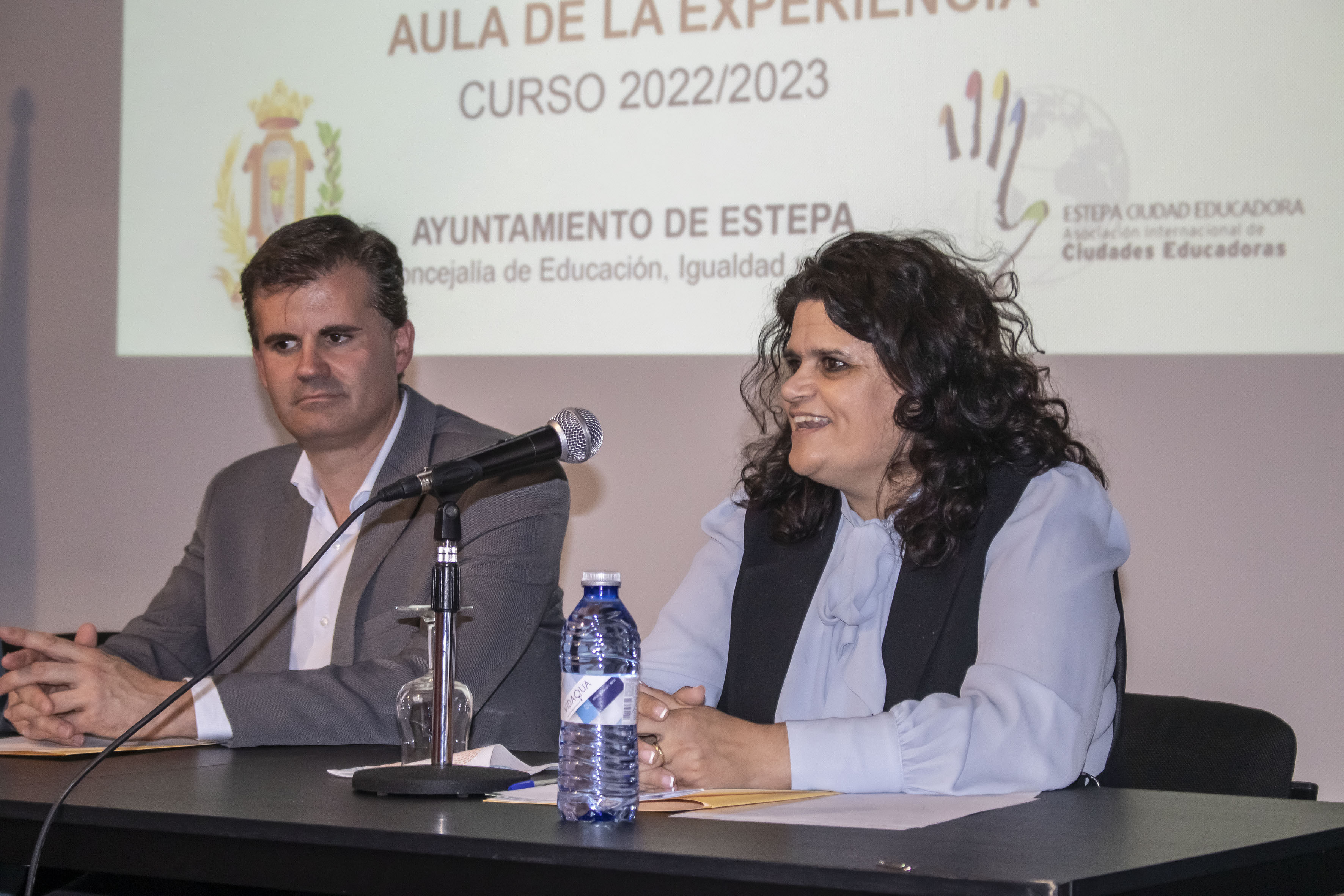 El salón de actos de la casa de la cultura Miguel de Cervantes de Estepa acogía ayer la clausura de esta edición, que contó con la presencia de Jesús Domínguez Platas, director del Aula de la Experiencia en la Universidad de Sevilla y con Rocío Barragán, directora general de Personas Mayores, Participación Activa y Soledad No Deseada, de la Junta de Andalucía.
