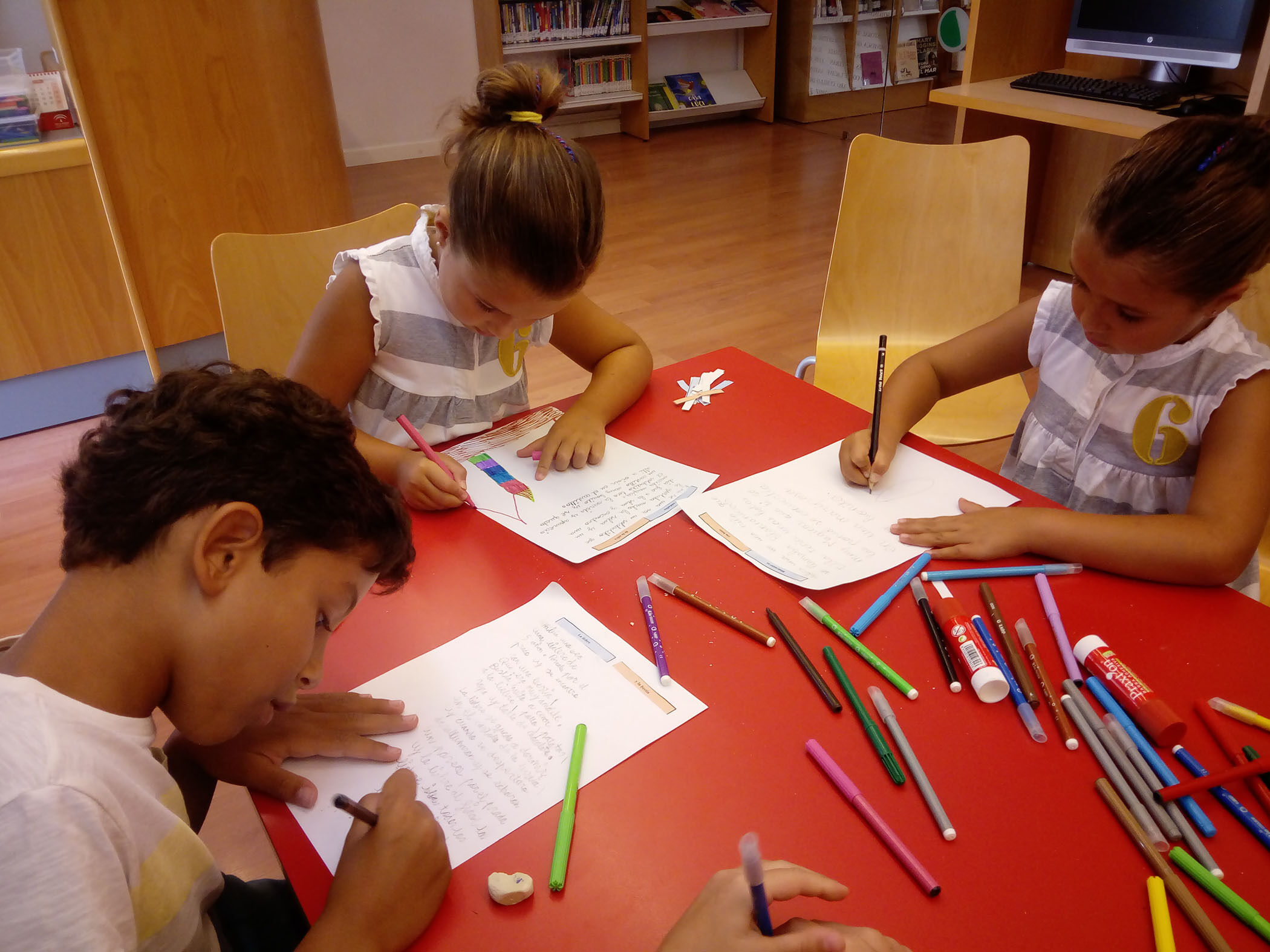 Martes, 27 de Agosto: Taller de Escritura Creativa – Cóctel de Cuentos, cada niño/a escribió un cuento partiendo de dos títulos de cuentos clásicos. Al terminar, le pusieron ilustraciones a todos los cuentos que escribieron.