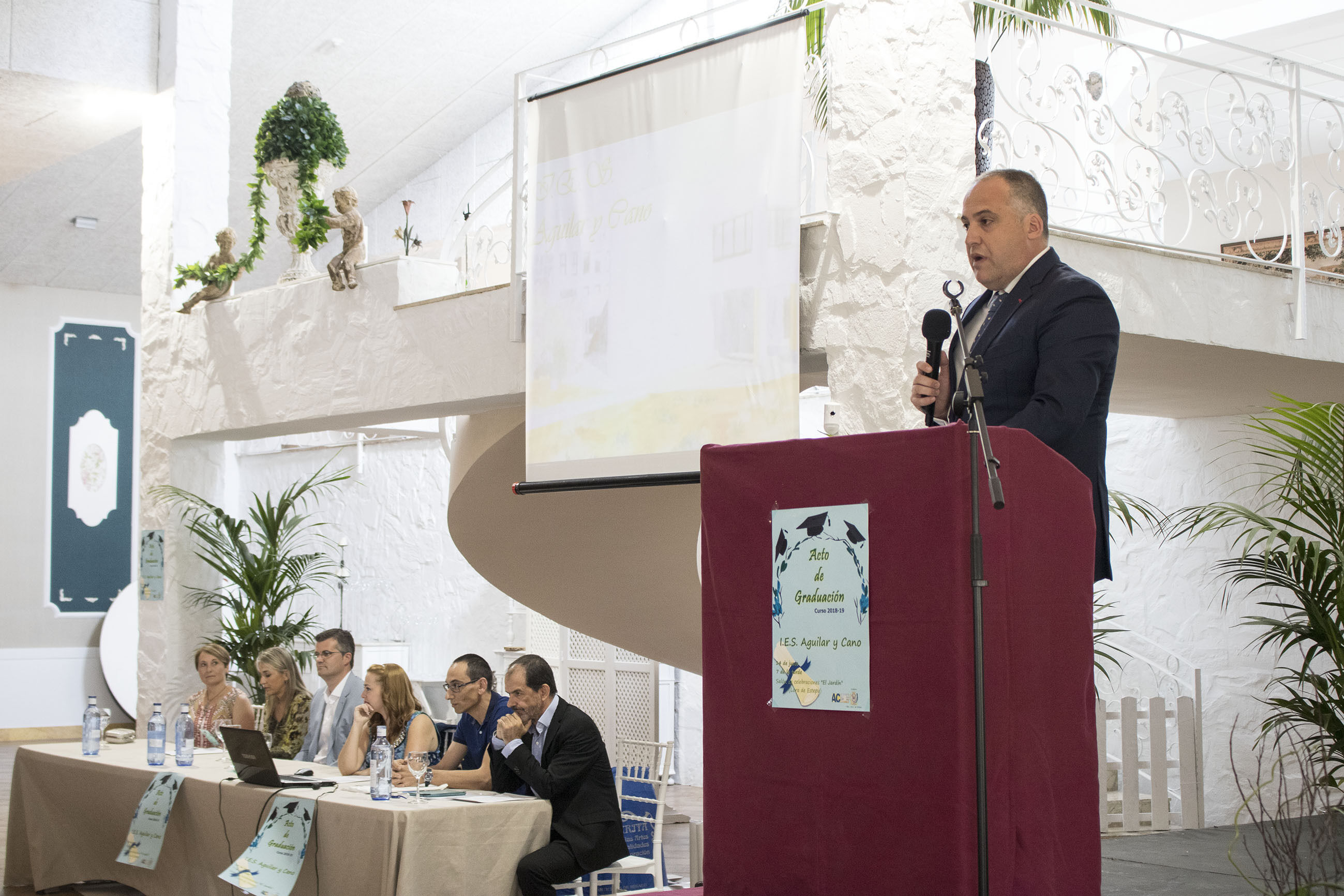 El acto estuvo presidido por el director del centro David Caro junto a otros miembros del equipo directivo del centro y los dos representantes del Ayuntamiento de Estepa.