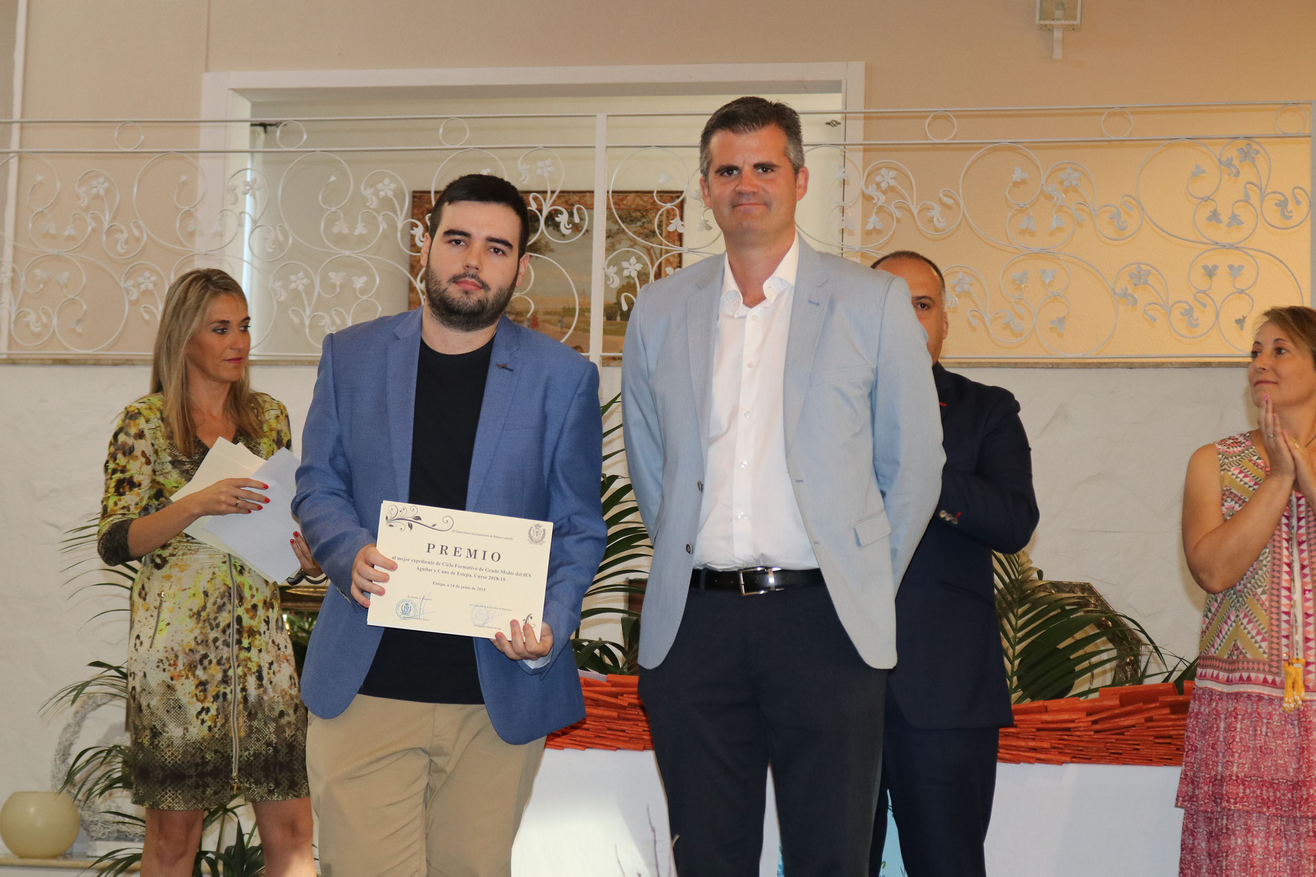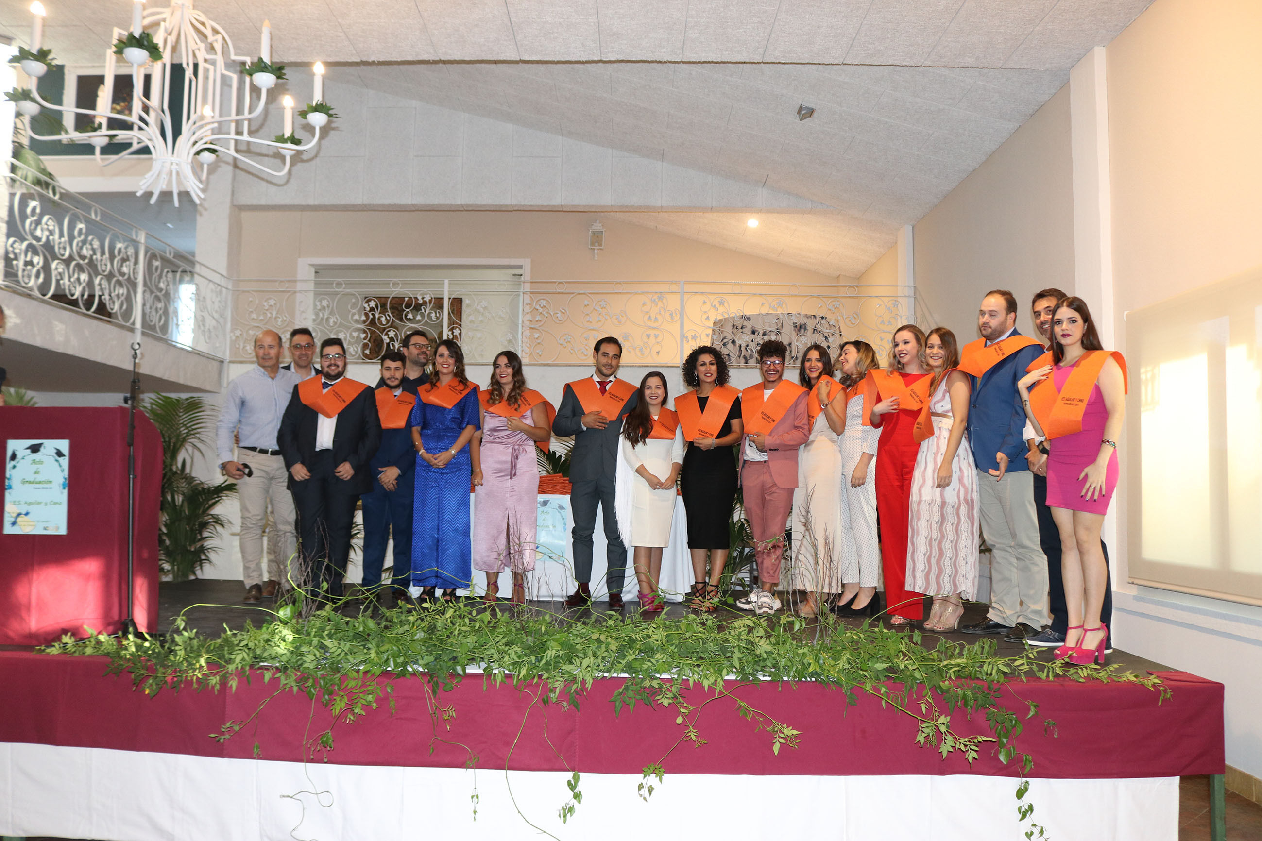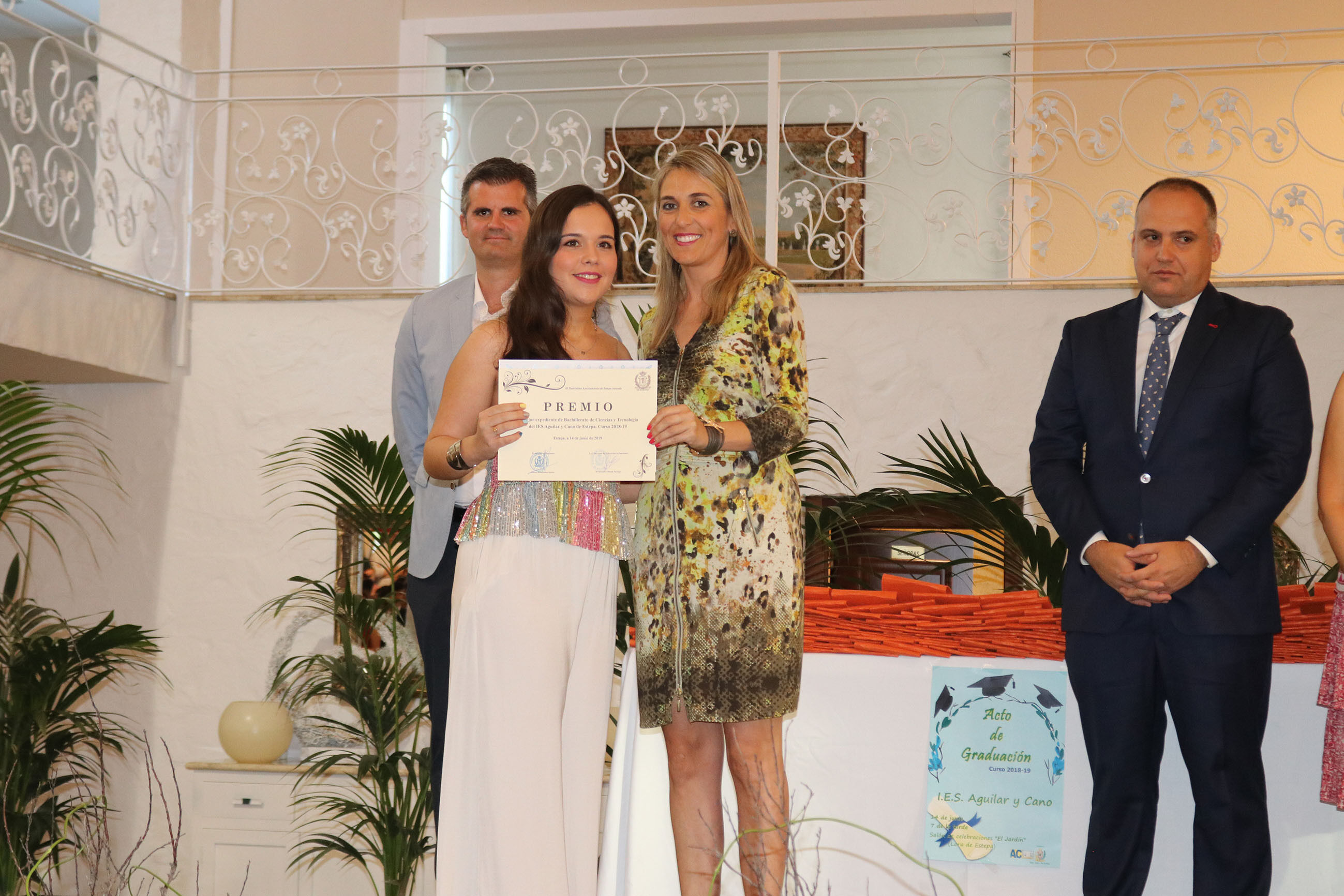 El viernes 14 de junio tuvo lugar en el Jardín de Lora de Estepa el acto de Graduación de los alumnos y alumnas de 2º de Bachillerato y Ciclos Formativos del IES Aguilar y Cano de Estepa. Un acto que sirvió también de despedida de la que ha sido Concejala de Educación en los dos últimos años en el gobierno tripartito del Ayuntamiento de Estepa, María Remedios Olmedo Borrego, que junto al alcalde Antonio Jesús Muñoz hicieron entrega de los reconocimientos a los mejores expedientes de los alumnos de este centro.