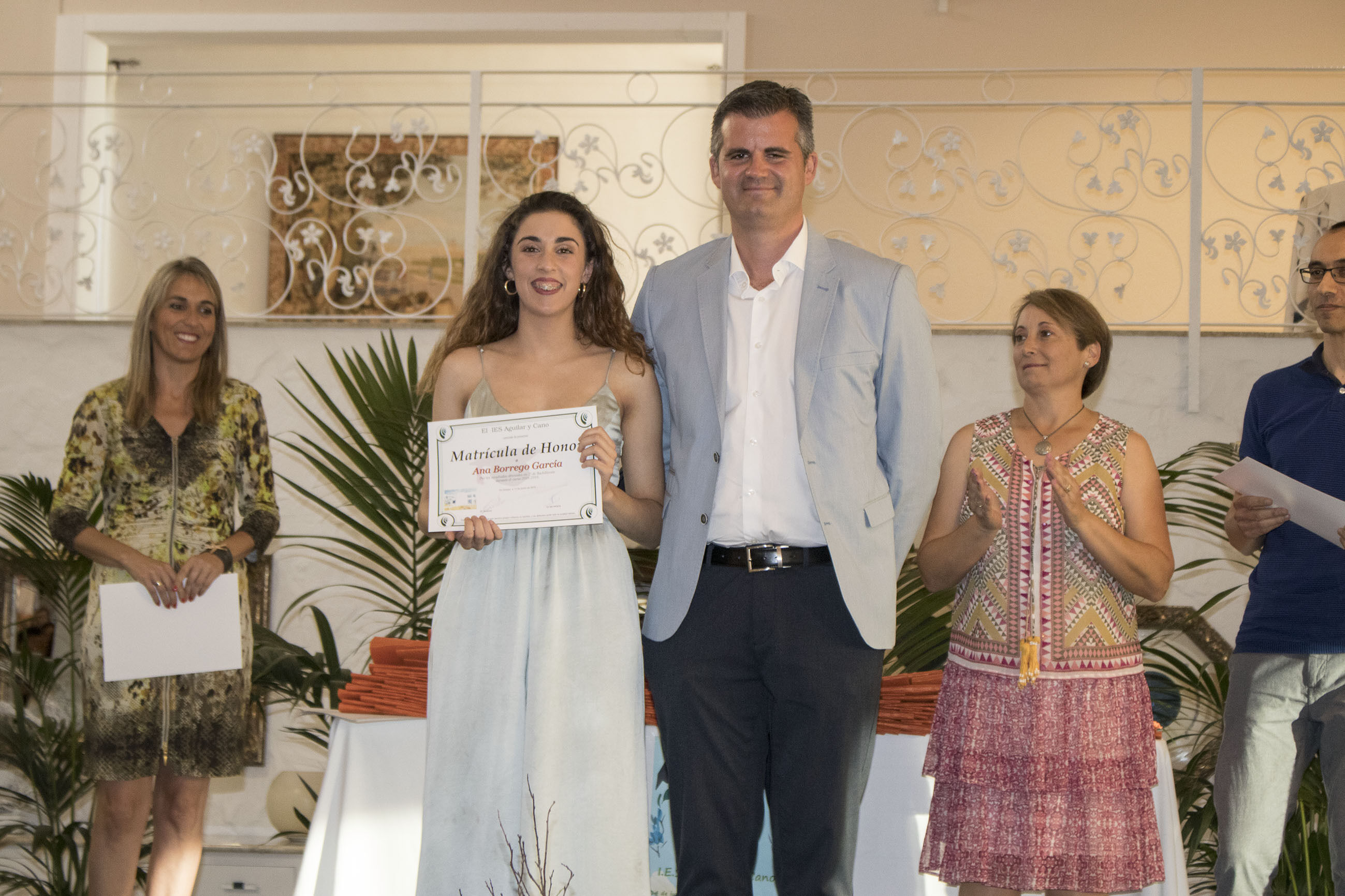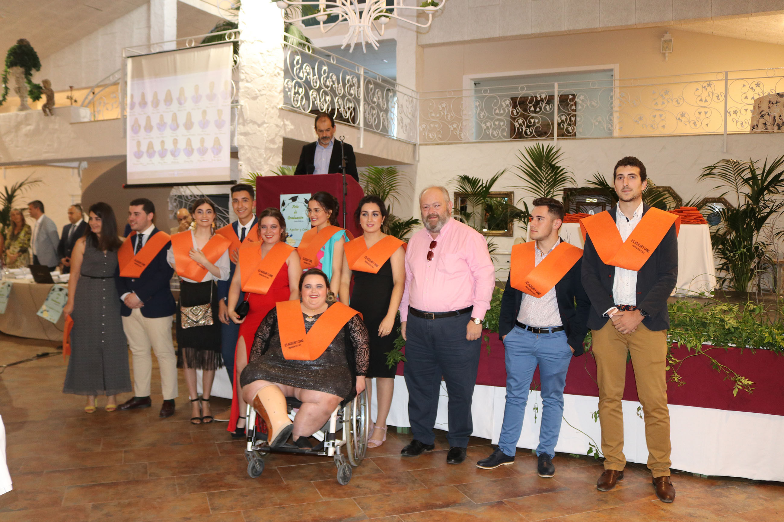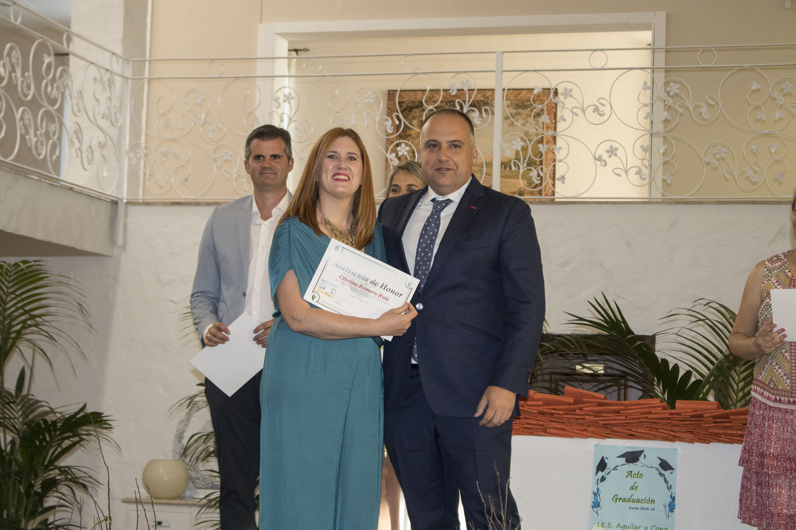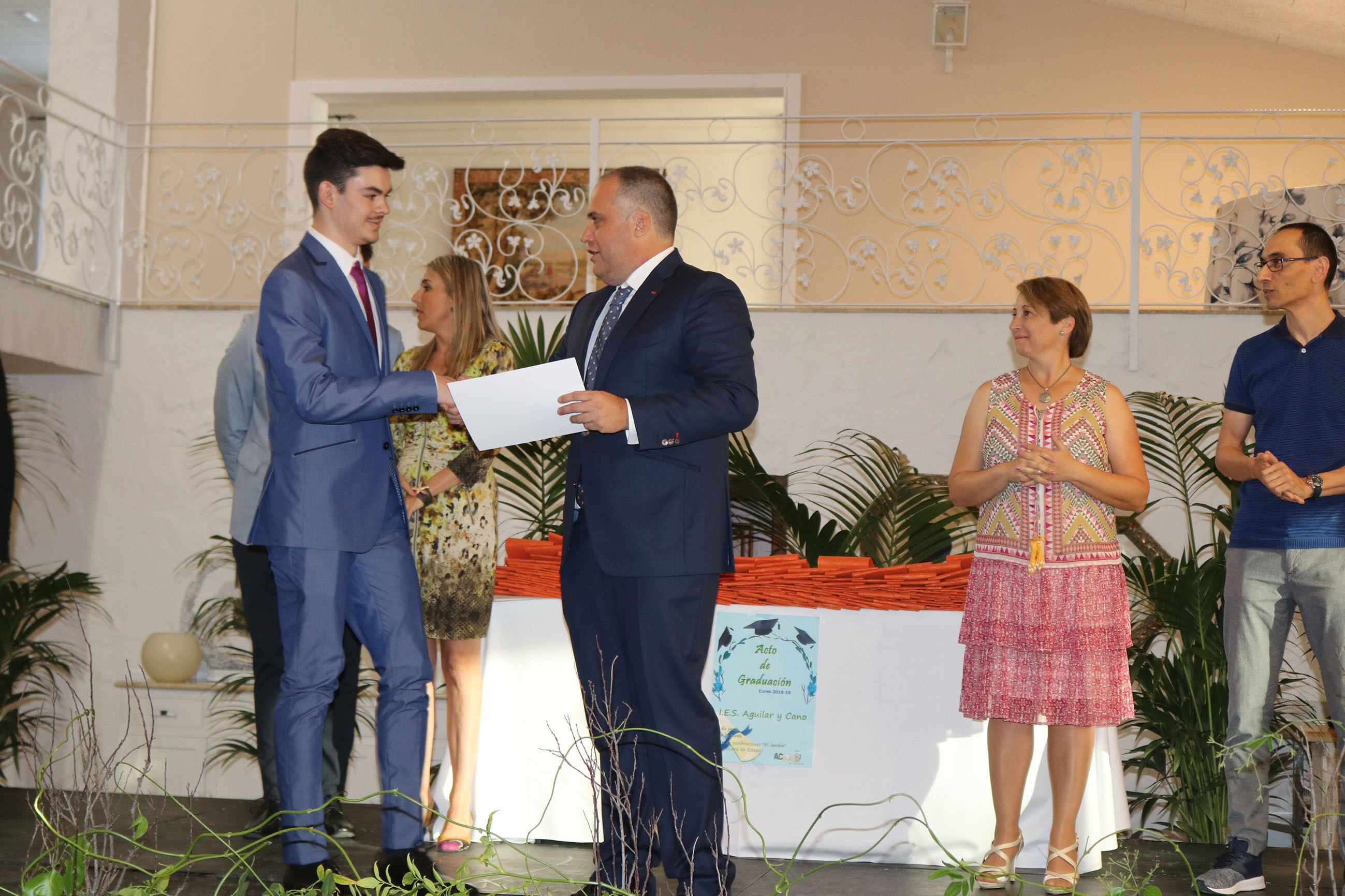 El viernes 14 de junio tuvo lugar en el Jardín de Lora de Estepa el acto de Graduación de los alumnos y alumnas de 2º de Bachillerato y Ciclos Formativos del IES Aguilar y Cano de Estepa. Un acto que sirvió también de despedida de la que ha sido Concejala de Educación en los dos últimos años en el gobierno tripartito del Ayuntamiento de Estepa, María Remedios Olmedo Borrego, que junto al alcalde Antonio Jesús Muñoz hicieron entrega de los reconocimientos a los mejores expedientes de los alumnos de este centro.