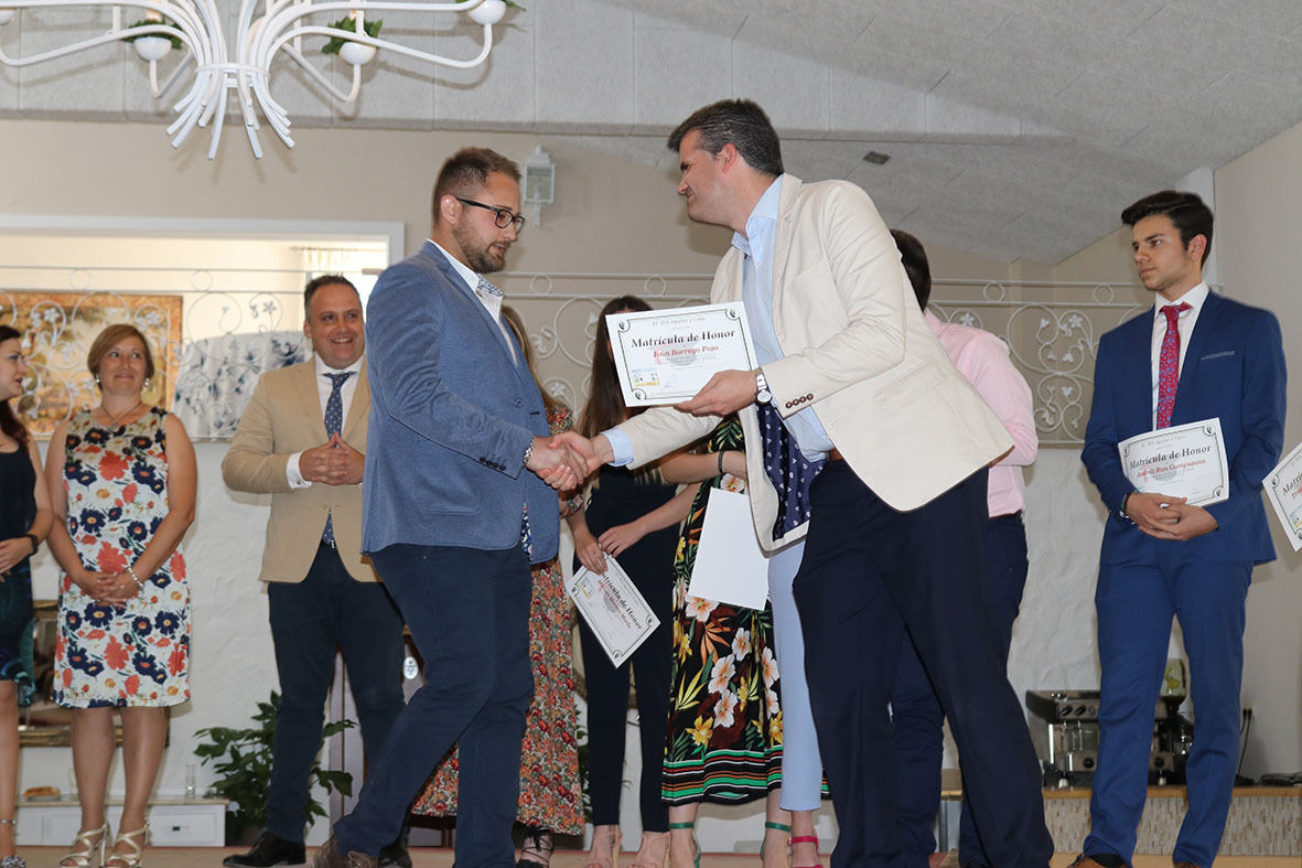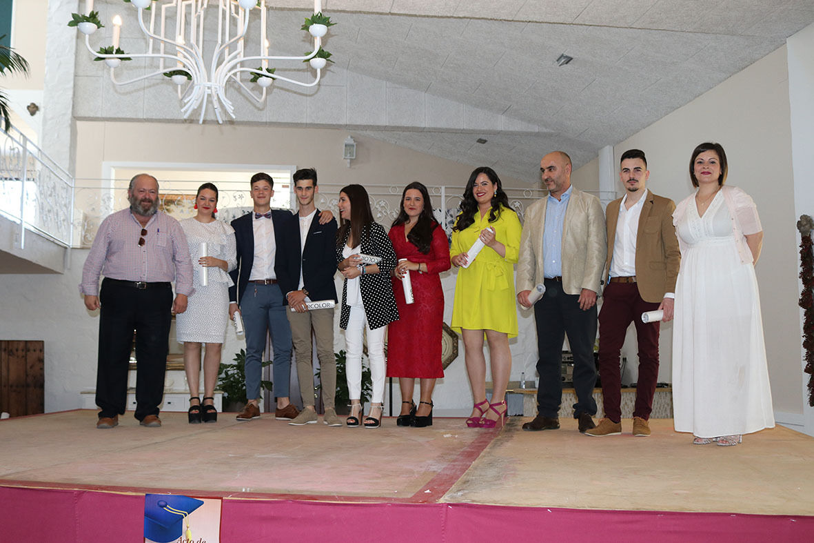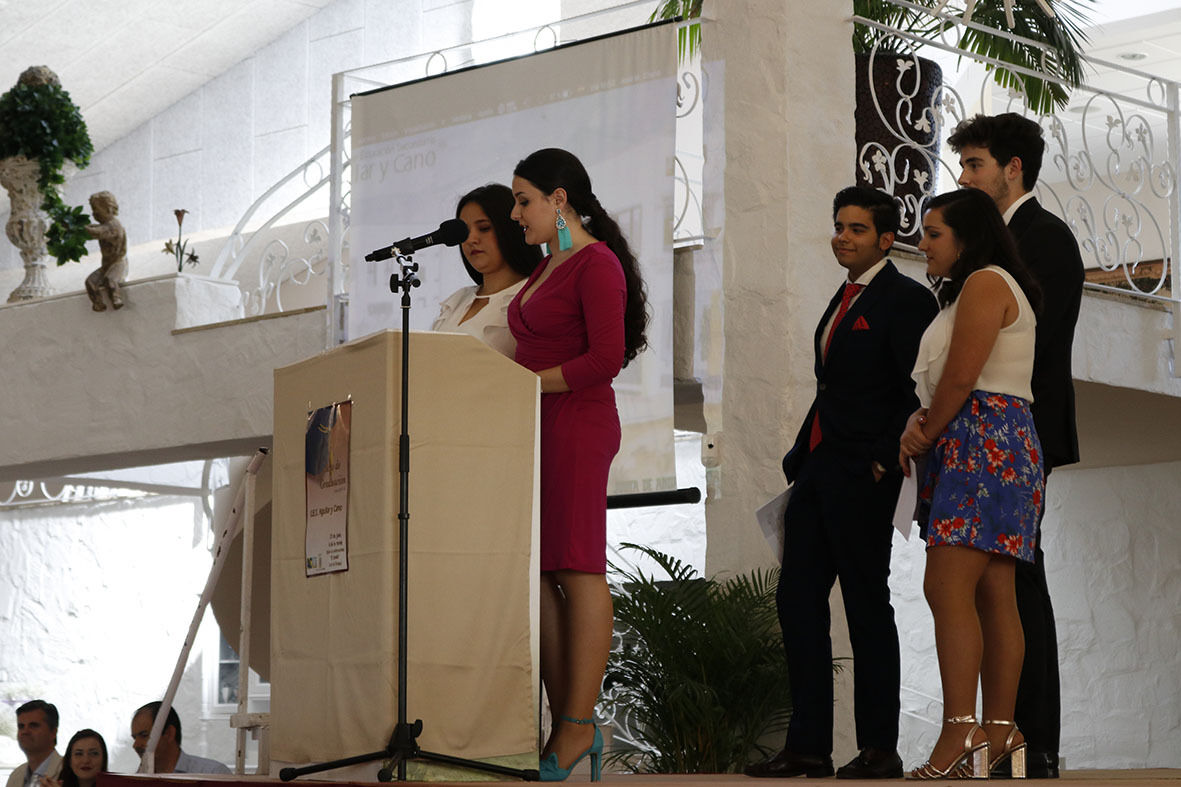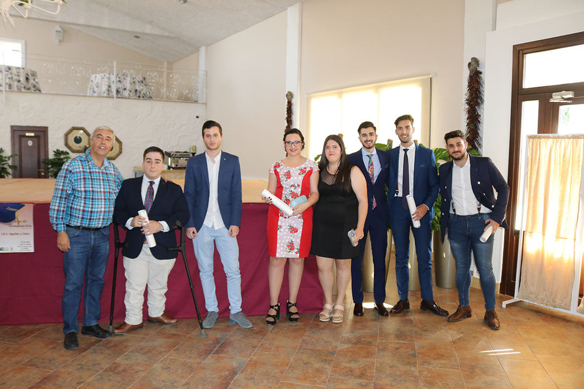Ayer tuvo lugar el acto de graduación del curso 2017-18 de los alumnos de Bachillerato y Ciclos Formativos del IES Aguilar y Cano. El acto estuvo presidido por el director del centro David Caro y por el alcalde de Estepa Antonio Jesús Muñoz. Además contó con la presencia de la concejala de Educación María Remedios Olmedo y del concejal de Infraestructuras Javier Fernández, que junto con el alcalde hicieron entrega de un premio en metálico que reconoce a los mejores expedientes del curso. El acto se desarrolló en un ambiente muy cordial y satisfacción, tras el final de una etapa para el alumnado, y así lo reconocieron profesores y alumnos que hablaron al público asistente. En representación de los padres y madres de los alumnos y alumnas habló Asunción Pérez Pozo. Finalmente todos los grupos posaron para la foto tras recibir sus orlas.