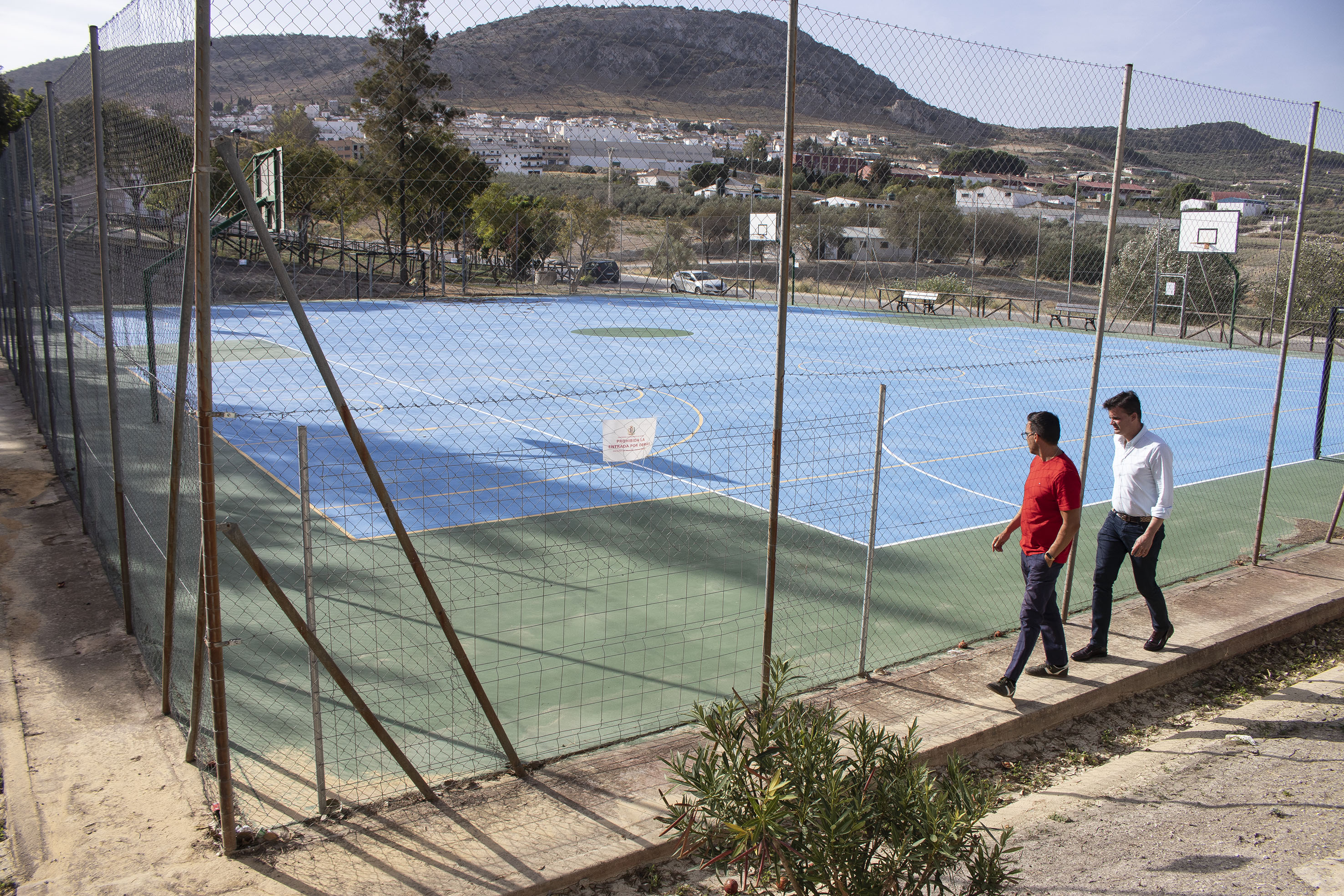 Finalizarán en breve las obras de reparación de los nuevos pavimentos de las pistas de los barrios situadas en calle Badolatosa y La Roda de Andalucía y Pza 28 de Febrero. Ambas pistas han sido reparadas y repavimentadas en bitono verde y azul eléctrico y marcajes en amarillo y blanco delimitando 2 pistas de baloncesto y 1 pista de balonmano f5 con marcajes reglados.