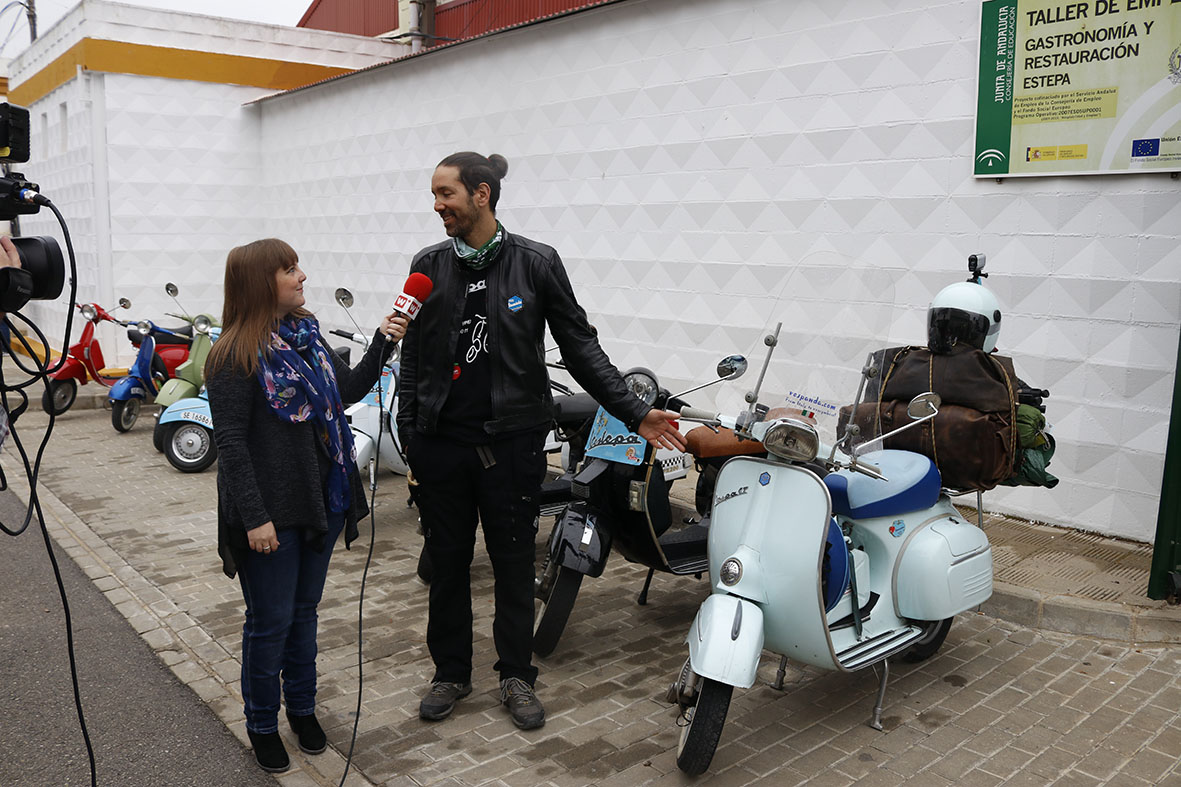 Este año además como sorpresa positiva del evento, la organización ha contado con la presencia de un personaje curioso como es Hilario Lavarra, un italiano que hace meses comenzó una gran aventura: dar la vuelta al mundo en Vespa. Tras recorrer ya gran parte de Europa, el italiano Lavarra, ha hecho parada en Estepa para compartir esta jornada de convivencia con la gente del Polvorón Vespero. Mañana mismo, partirá para Marruecos, y de ahi, cruzará el continente africano para después saltar a Oriente. Desde la organización del Polvorón Vespero le desean toda la suerte del mundo a Hilario y agradecidos por su paso por Estepa.