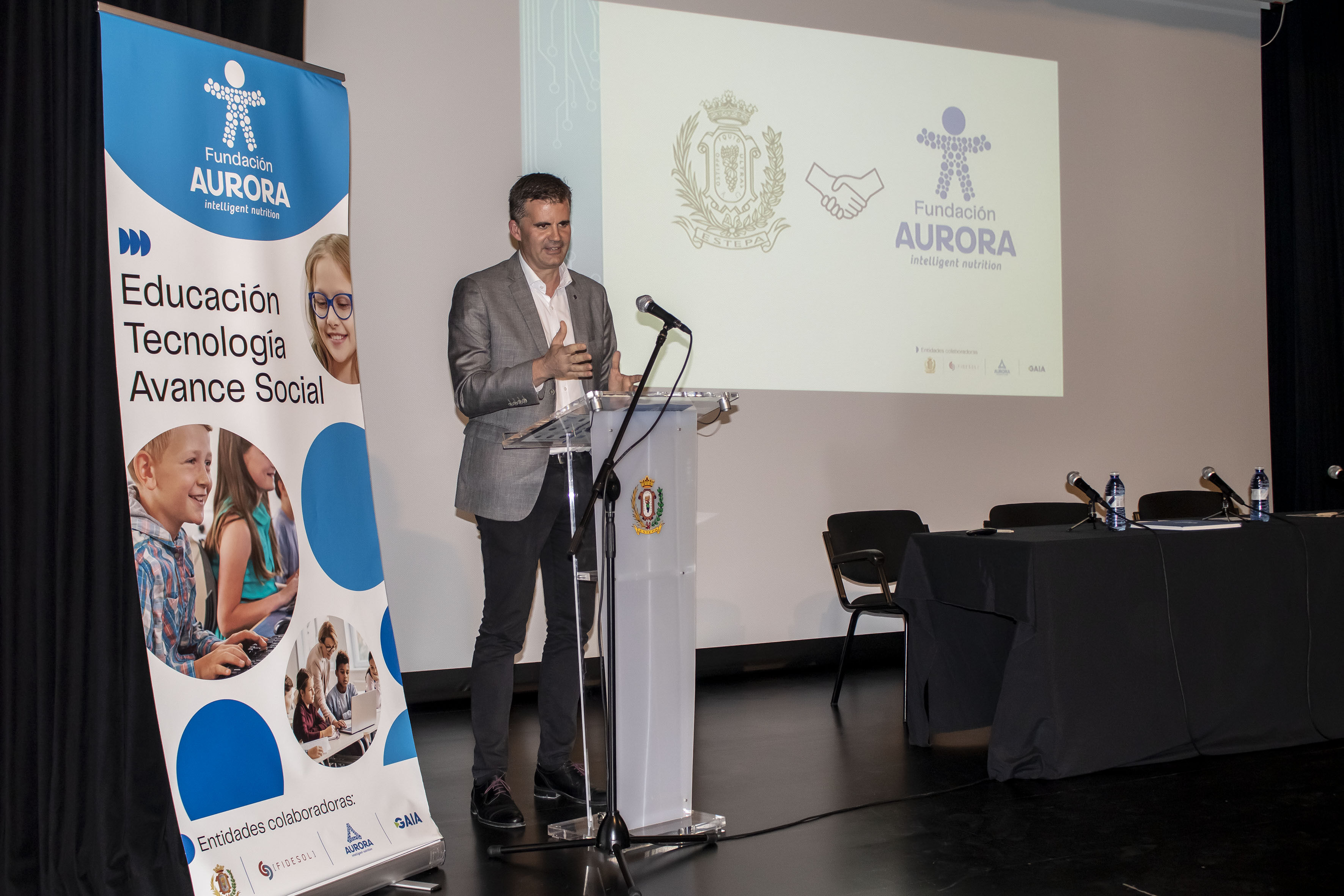 La casa de la cultura Miguel de Cervantes de Estepa acogió ayer el acto de presentación de la Fundación “AURORA INTELLIGENT NUTRITION”, presidida por el empresario estepeño Fernando Morenos Cáceres. En la inauguración del citado acto, se contó con las intervenciones del alcalde de Estepa, Antonio Jesús Muñoz Quirós y de la viceconsejera de Desarrollo Educativo y Formación Profesional de la Junta de Andalucía, Macarena O’Neill Orueta.