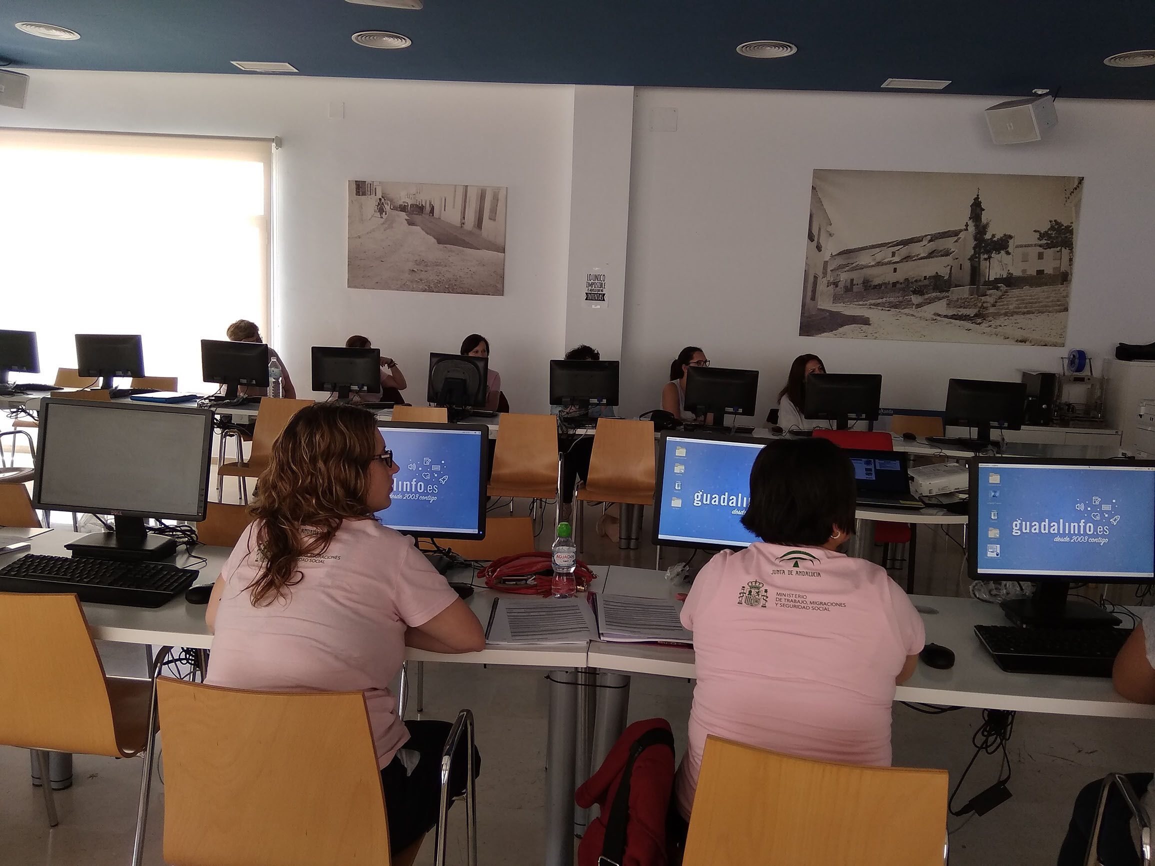 Las alumnas del Taller de Empleo “Servicios de Proximidad” dependientes de la Delegación de Desarrollo Económico, Formación y Empleo del Ayuntamiento de Estepa, participan en el Taller Código Femenino - Programa de Comunicación y Destrezas Digitales para mujeres desempleadas.