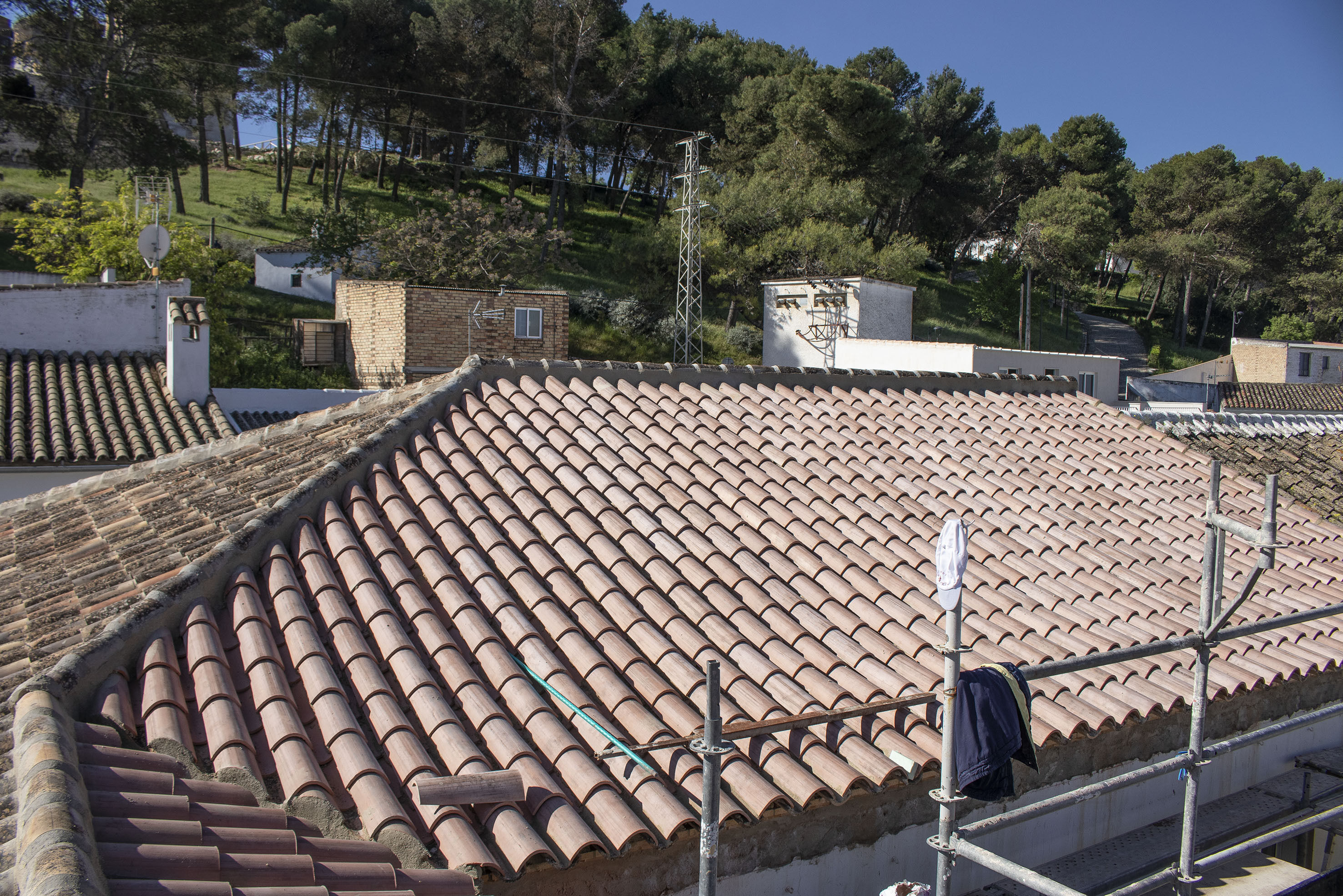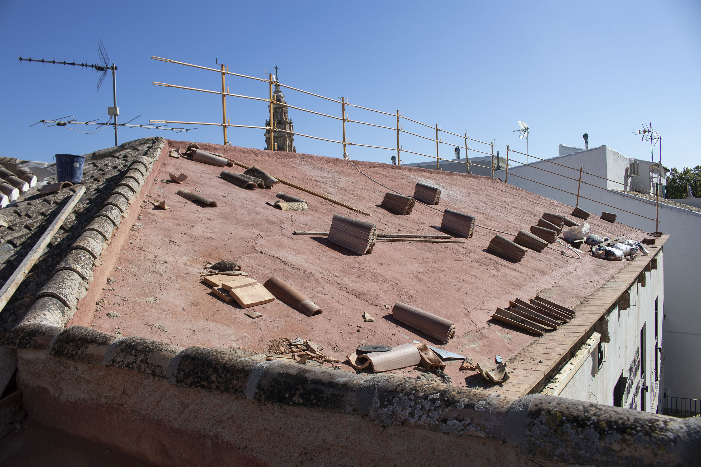 1. Mejoras de aislamiento exterior de cubiertas. La superficie de cubierta es de 322 m2. Se ha desmontado la cubierta existente y se está colocando una nueva, dotada con aislamiento por placas de poliestireno extruido.