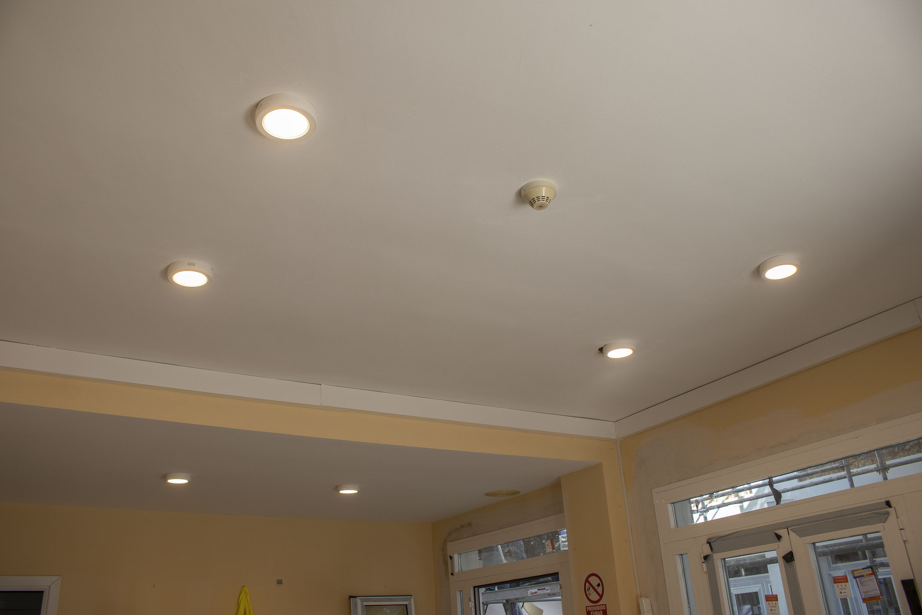 3. También se han sustituido ya las luminarias del edificio. Se han retirado todas las antiguas luminarias y se han colocado unas nuevas con lámparas LED.