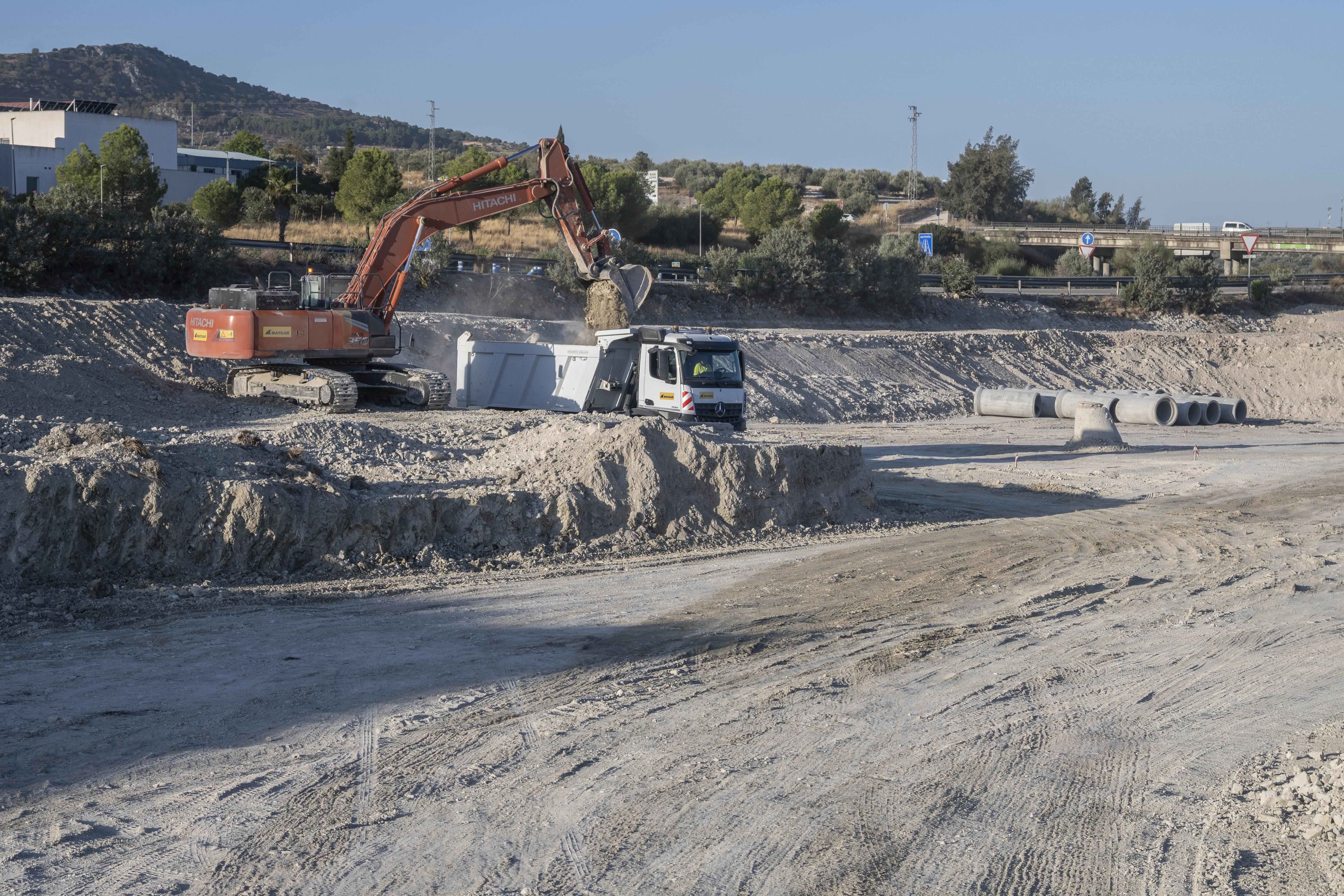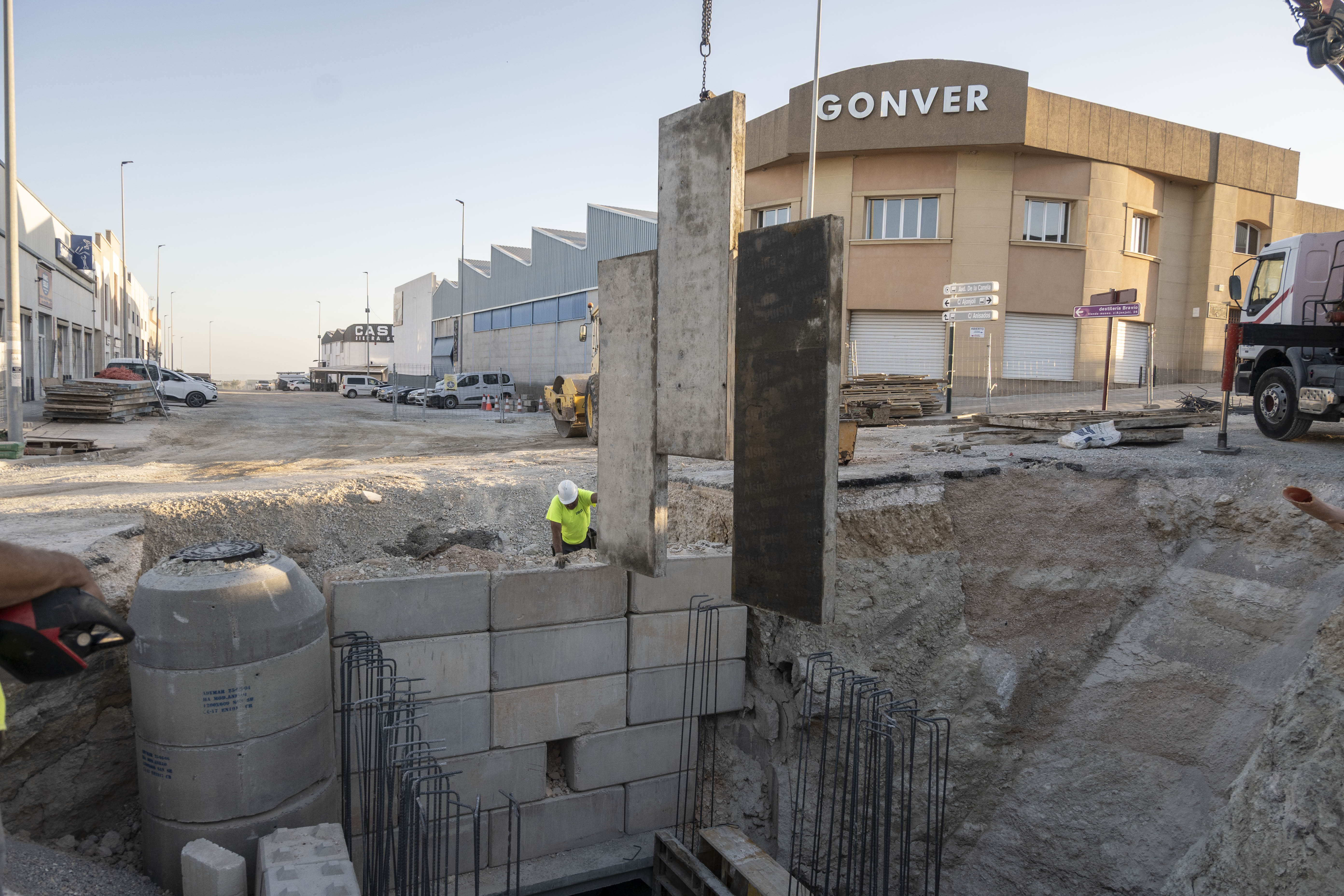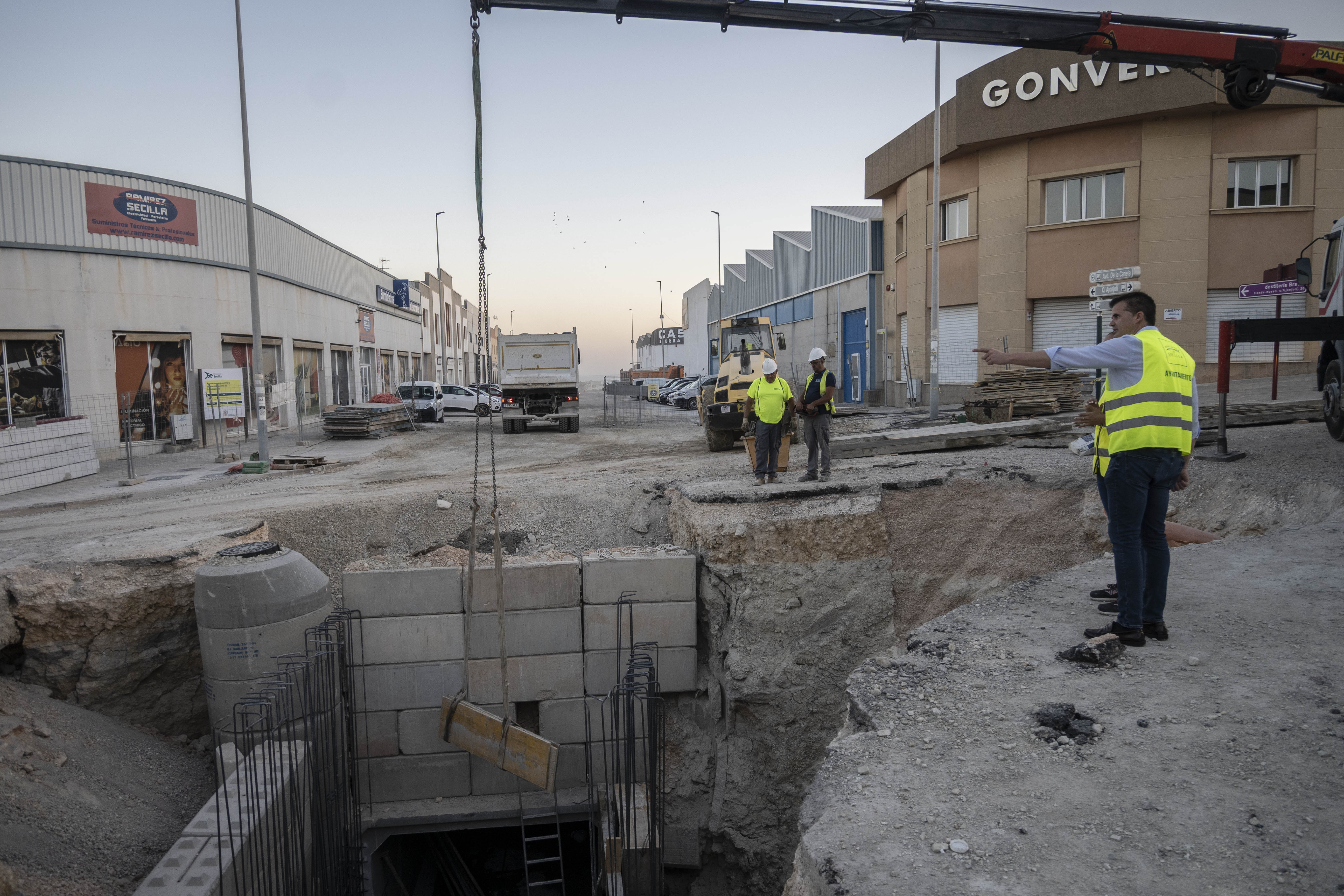 Tras cinco meses de trabajos, el entubamiento que conducirá el agua de lluvia desde el polígono industrial Sierra Sur hasta el futuro tanque en el polígono Corazón de Andalucía ya ha atravesado los dos carriles de la Autovía A92 y alcanza en estos días la Avenida de la Canela, una de las arterias principales del polígono Sierra Sur.
