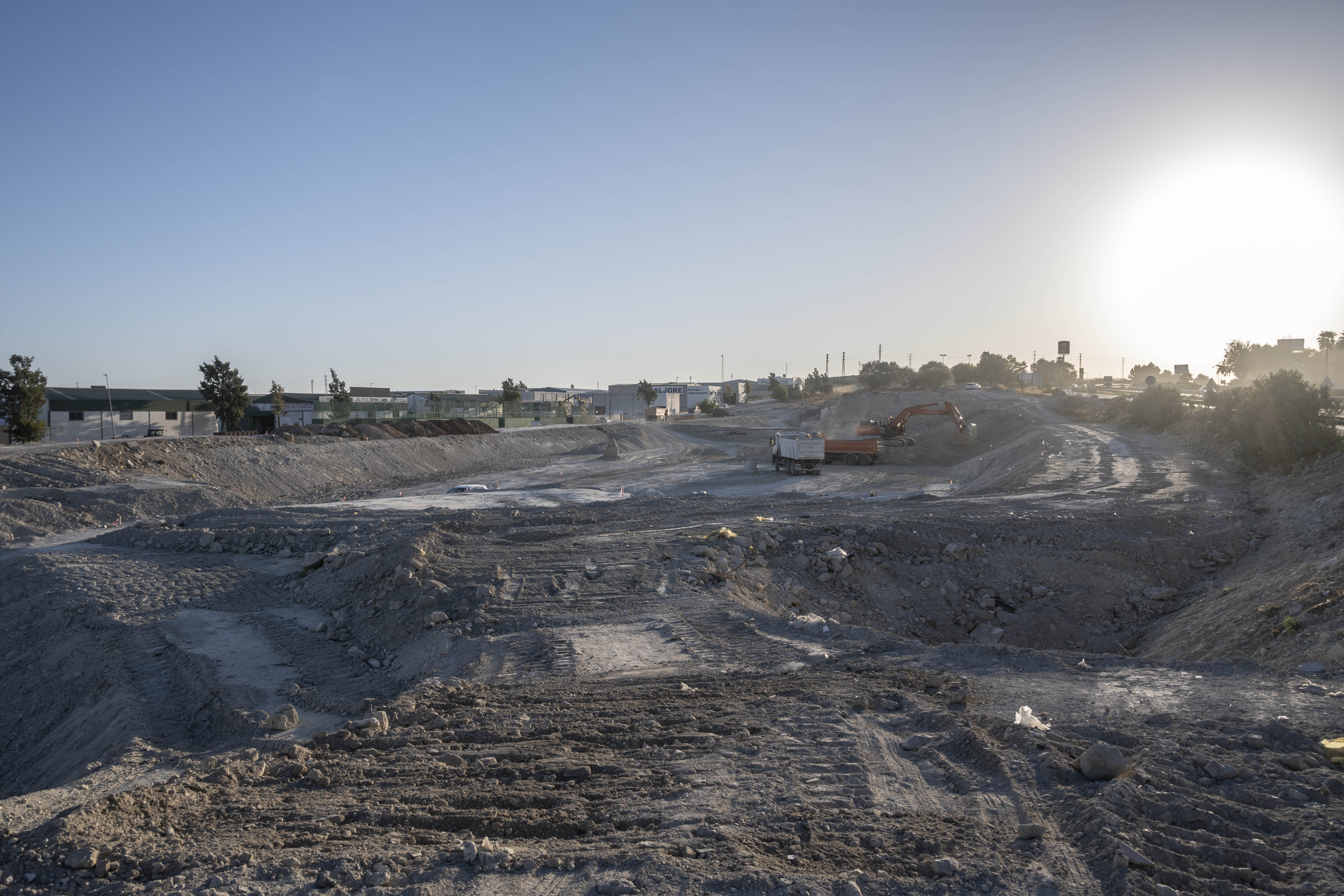 De forma paralela, avanzan los movimientos de tierra en el polígono Corazón de Andalucía, junto a las pistas de pádel, donde se ubicará la gran balsa de laminación que permitirá el control y la prevención de inundaciones en el núcleo urbano de Estepa. Esta balsa podrá albergar hasta 60.000 metros cúbicos de agua.
