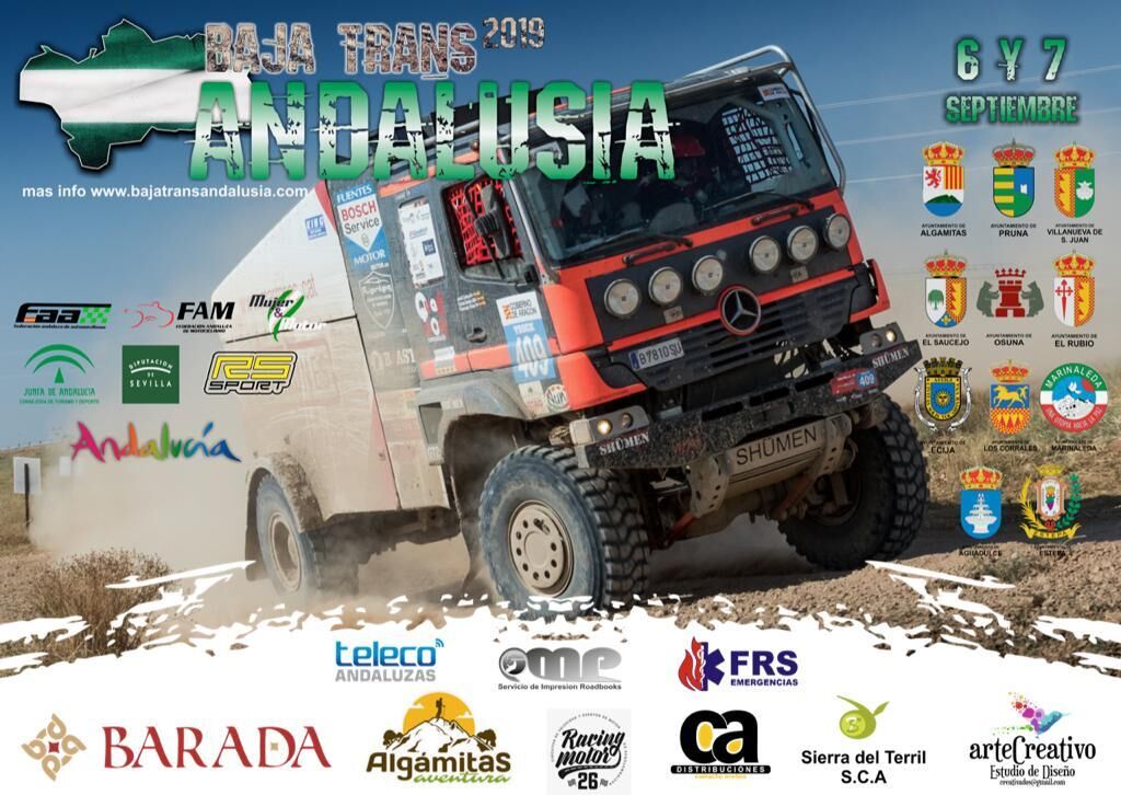 El C.D RS SPORT organiza el 1ª BAJA TRANS ANDALUSIA que se celebrara los días 6 y 7 de septiembre de 2019 en la provincia de Sevilla. La prueba, puntuará como 2 carreras diferentes para el Campeonato de Andalucía de Enduro 4X4, una por cada jornada.