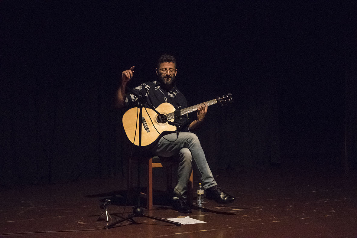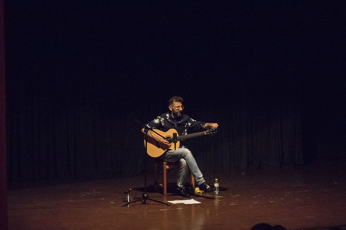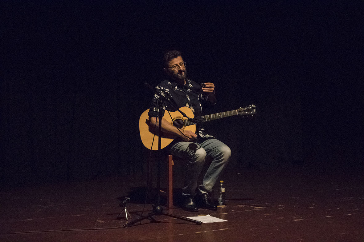 En palabras del propio Carlos, su nueva música puede ser difícil de oir pero eso no quitó ni un ápice de interés al público que llenó el salón de actos de la casa de la cultura Miguel de Cervantes.
