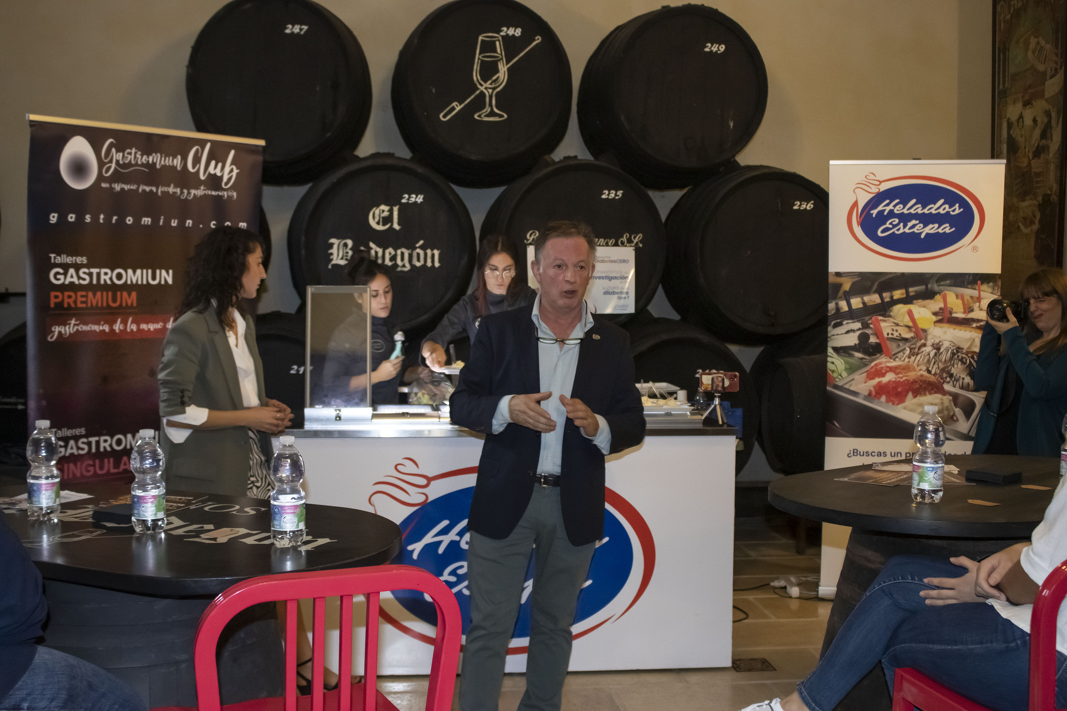 El evento, que ha tenido lugar en las instalaciones de la bodega de vinos de Estepa, "El Bodegón", comenzó con una introducción de María Villar, responsable de comunicación de Helados Artesanos de Estepa, que nos llevó a un mundo de sabores únicos y exquisitos.