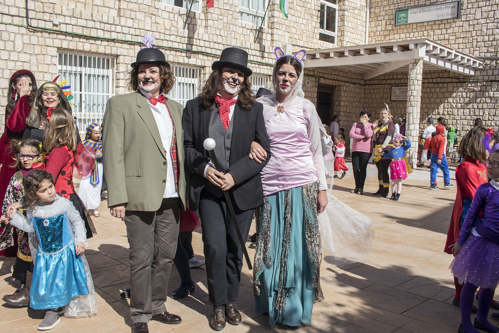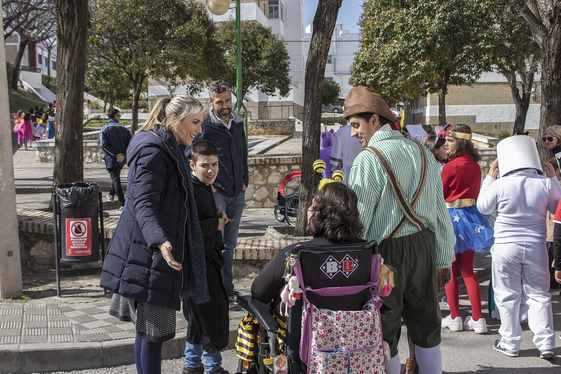 La concejala de Educación, Remedios Olmedo y el concejal de Infraestructura Javier Fernández, han acompañado el equipo de profesores en esta mañana carnavalera.