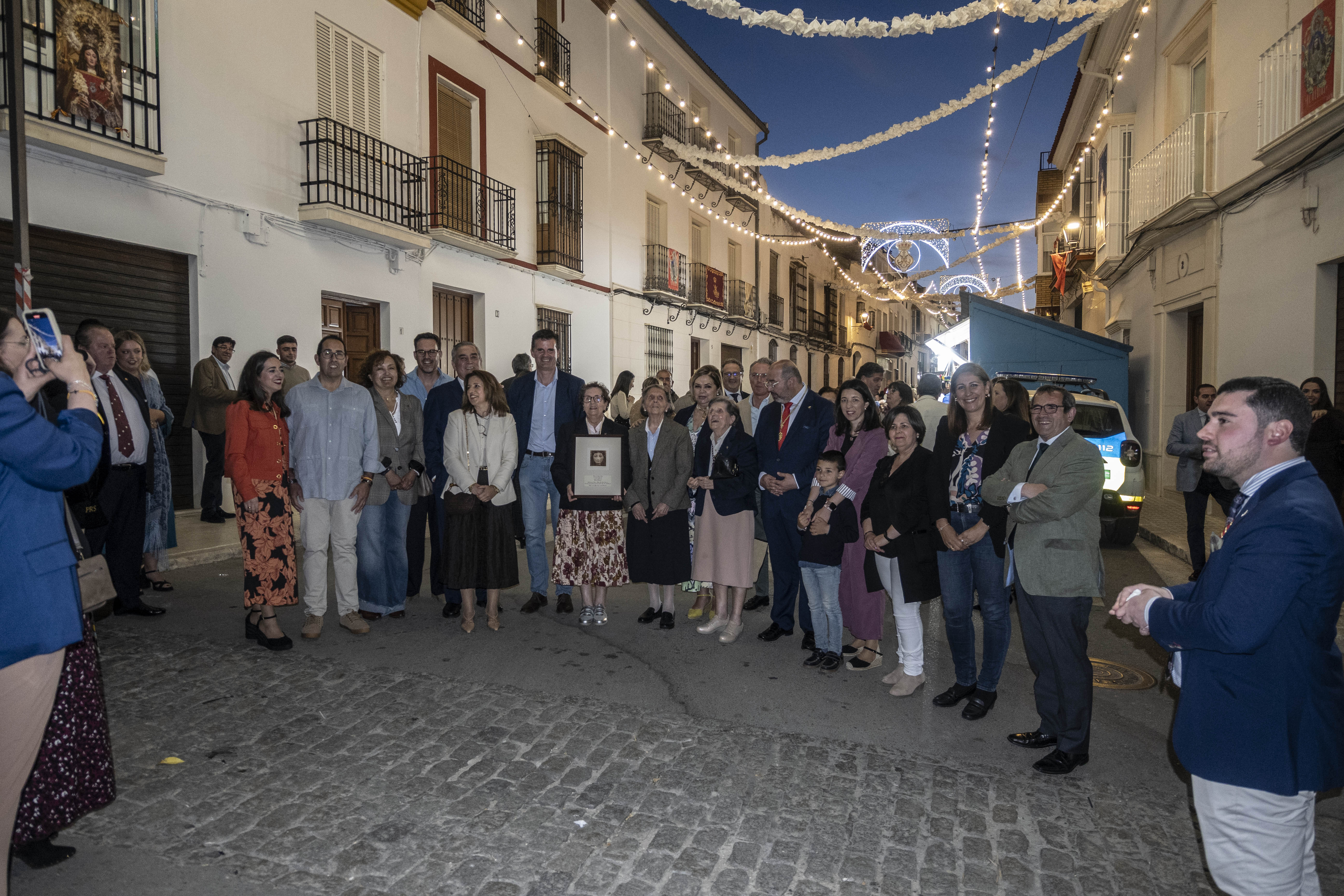 La hermandad elige cada año a un "chuerretero" o "churretera" para pulsar el botón que enciende el alumbrado de la fiesta y este año este honor ha recaído en tres mujeres del barrio y muy devotas de la Virgen como son: Carmen, Ana y Pilar Osuna Reina.