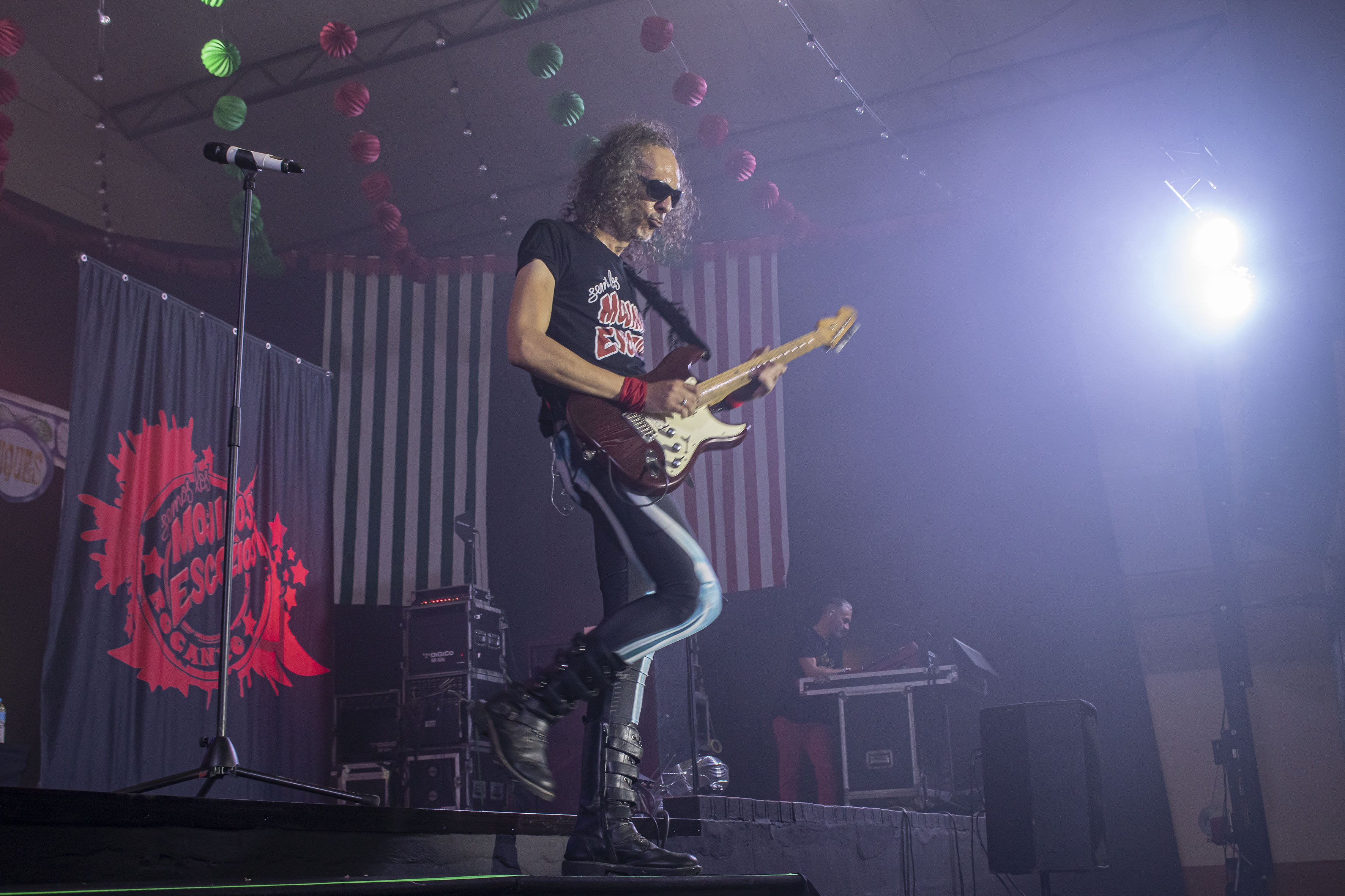 El Sevilla y su banda, Los Mojinos Escozíos han abierto los conciertos en la Feria de Estepa 2023. La banda sevillana ha llenado la caseta municipal del rock divertido y atrevido de los "Mojinos"