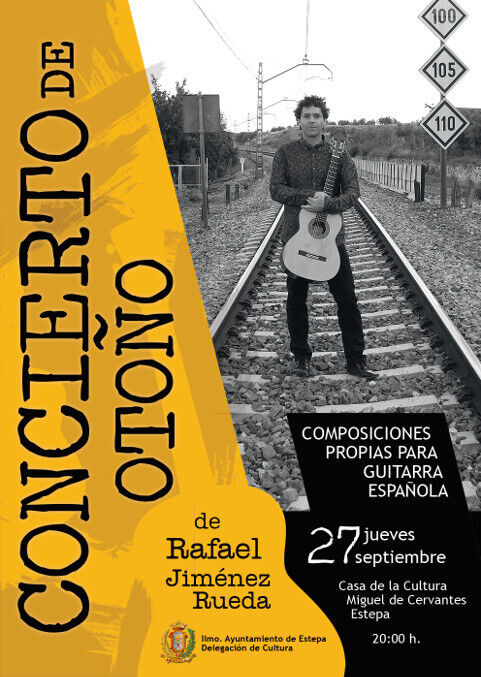 Rafael Jiménez Rueda es profesor de guitarra clásica y flamenco en el Conservatorio y Escuela Municipal de Música de Estepa. Tiene los títulos superiores de guitarra clásica y etnomusicología, máster en investigación musical y actualmente prepara su doctorado, que trata sobre el patrimonio musical tradicional de Andalucía. A parte de la investigación, también se dedica a la composición musical. Fruto de esta faceta, es el concierto que presenta en la Casa de la Cultura Miguel de Cervantes, el próximo jueves 27 de septiembre a las 20:00 En el mismo se incluyen estudios, preludios y obras. Este contenido musical está en parte influenciado por la música tradicional andaluza, siendo algunas composiciones, arreglos de piezas musicales populares, algunas tan conocidas como son La Tarara y los Campanilleros. Aunque dichas piezas son populares y tradicionales, el compositor ha querido darle un toque musical más actual. El resultado es una confluencia musical del tiempo; sonidos y ritmos del pasado, tratados con una visión melódica, armónica y rítmica más contemporánea.