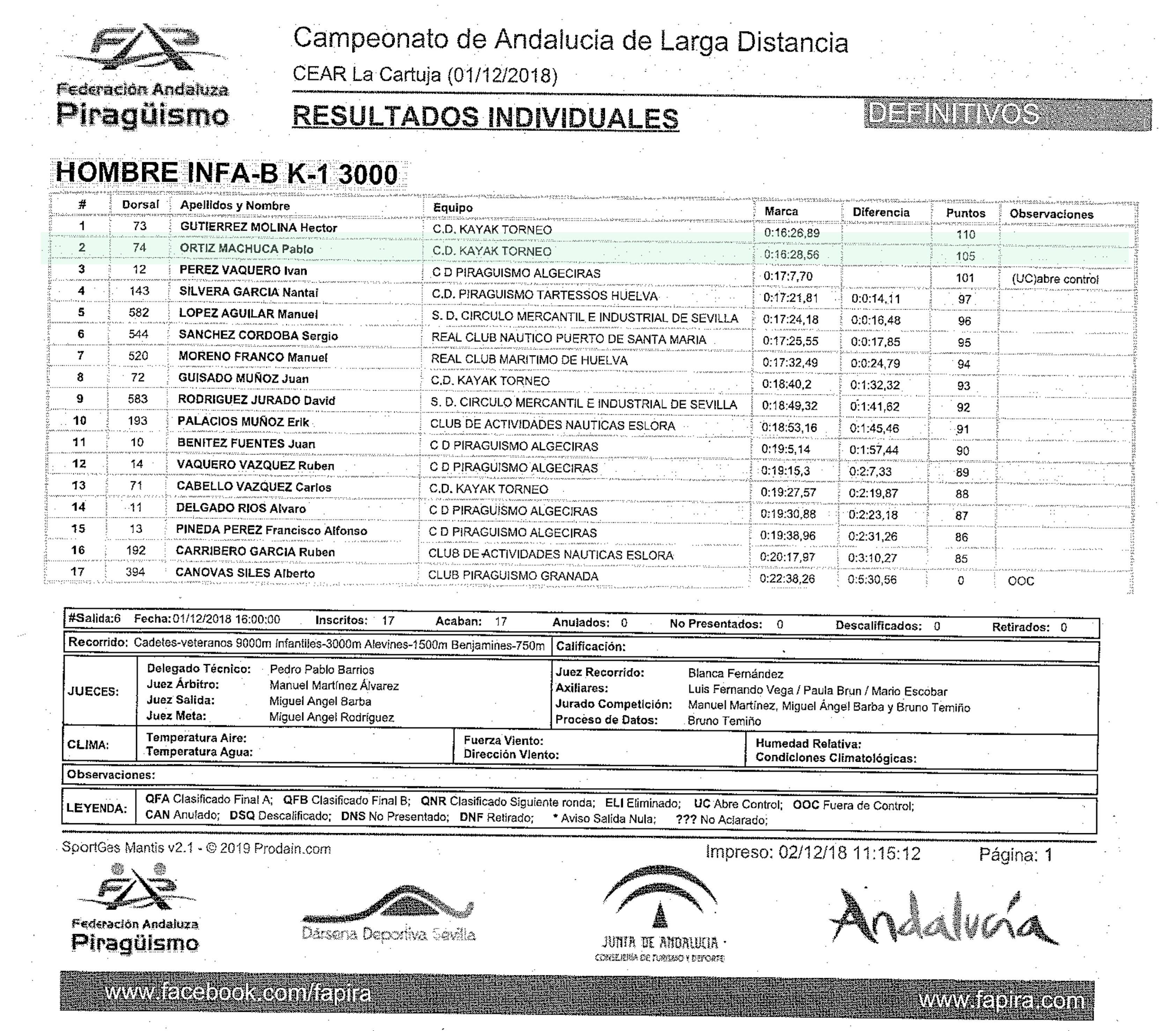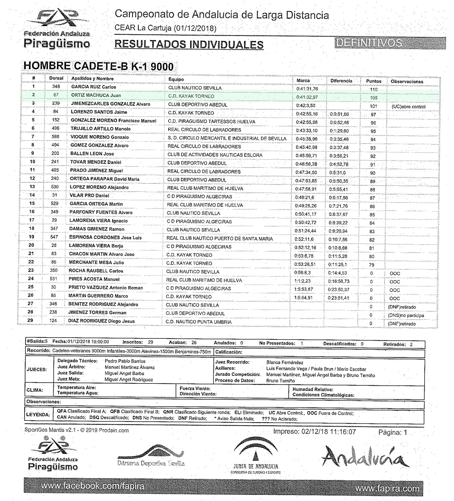 Juan compite en Cadete B Masculino K1 9000 y Pablo compite en Infantil B K1 3000