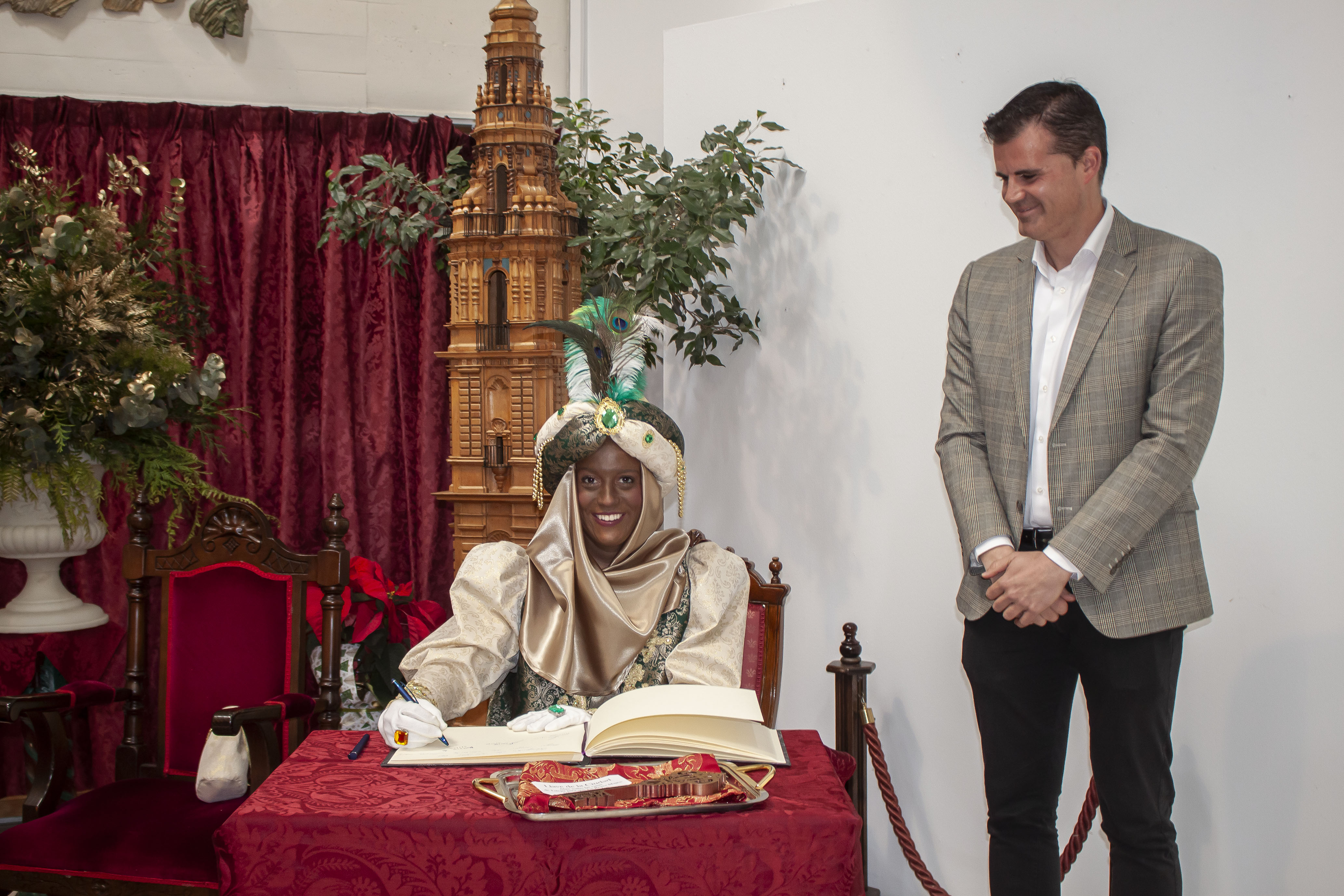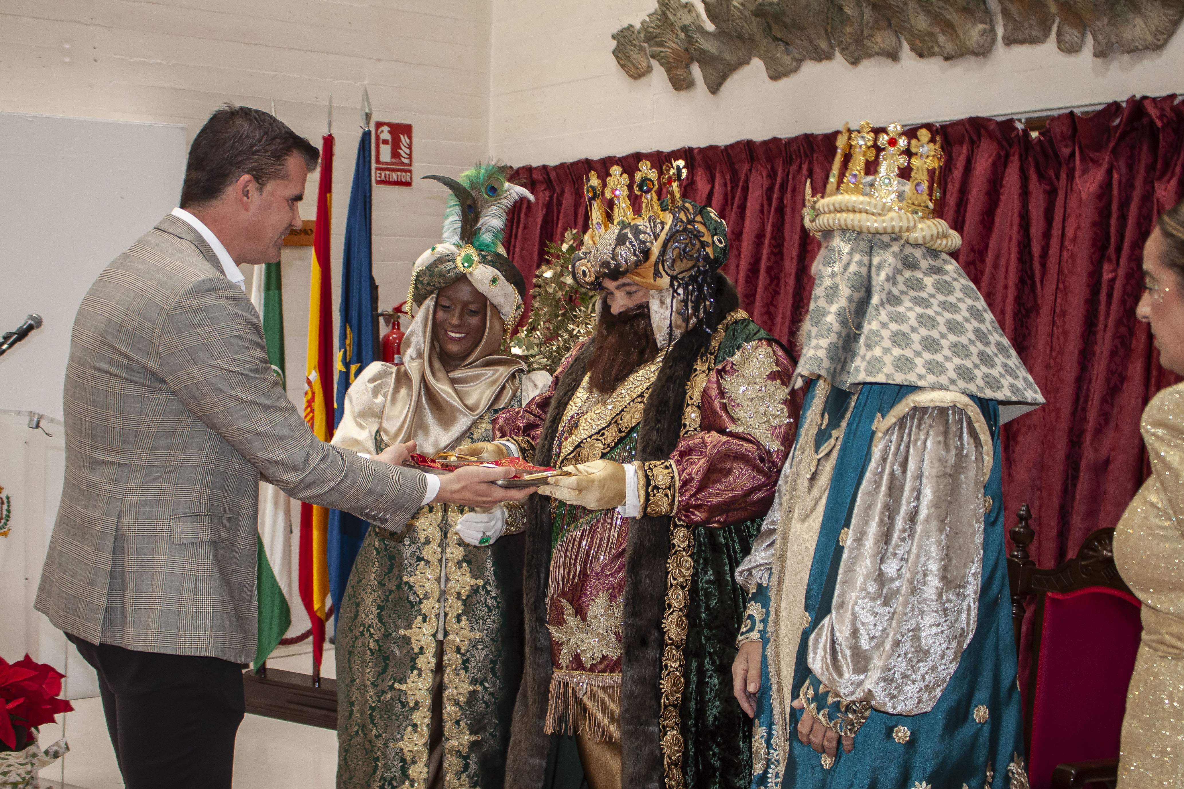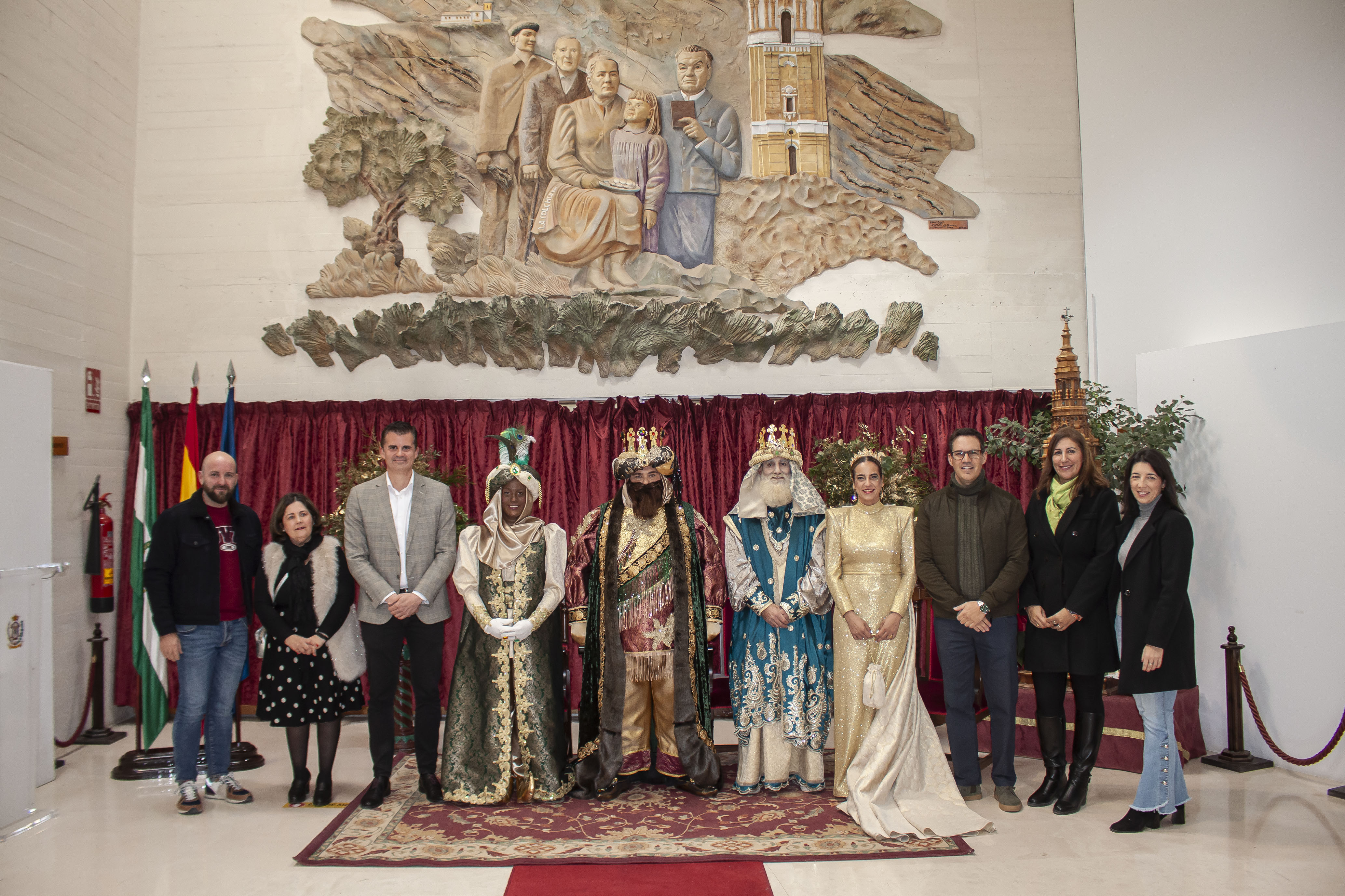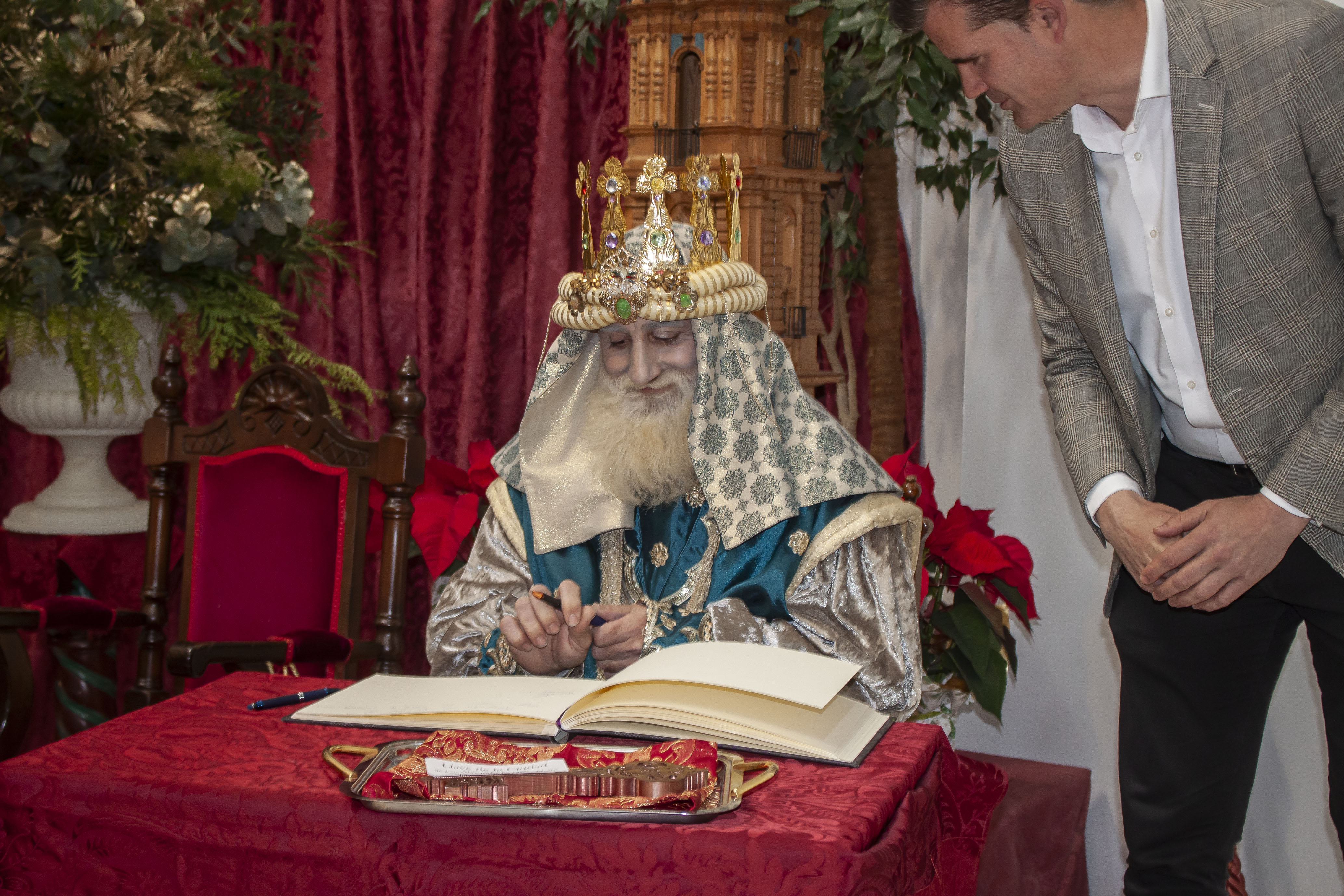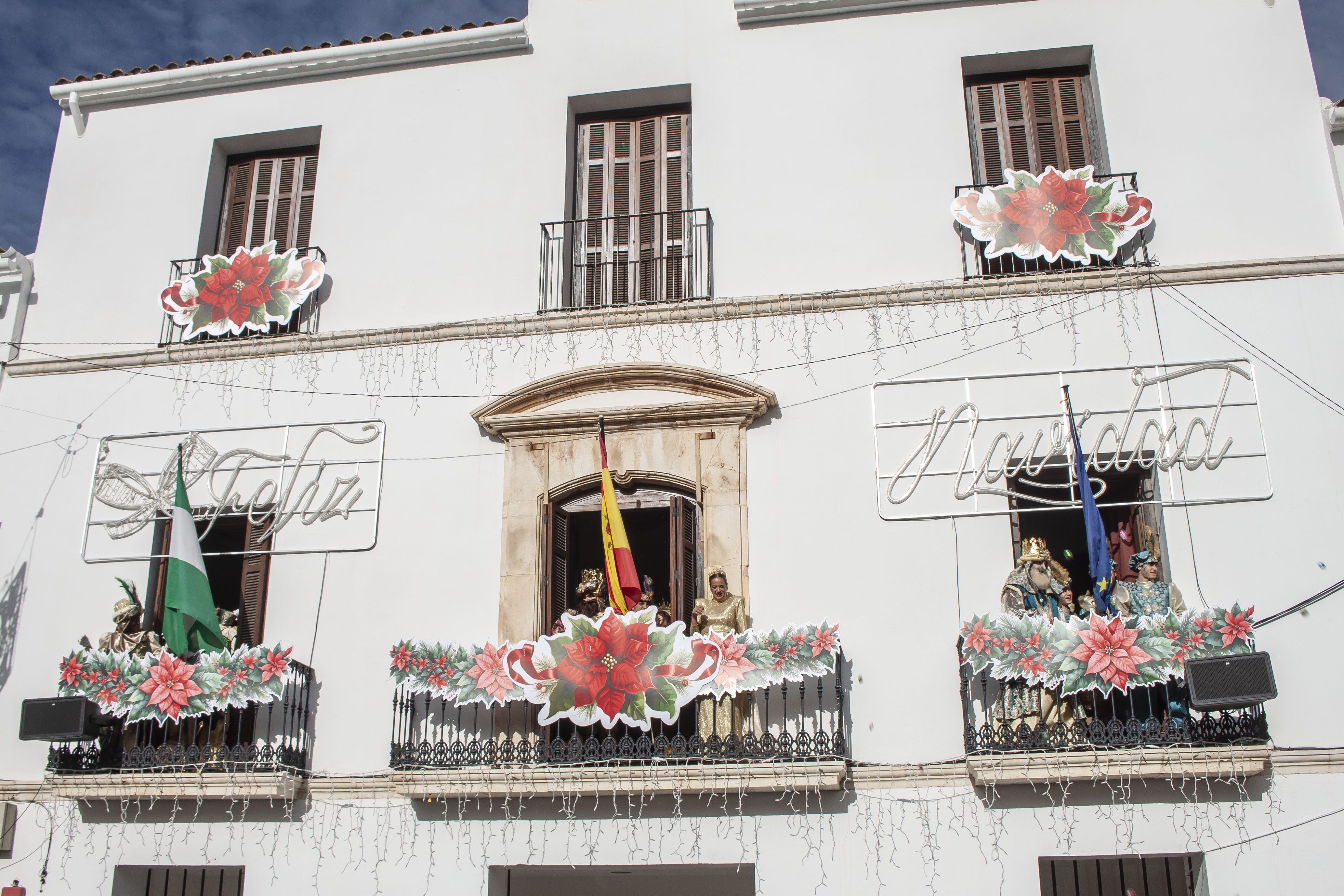 El concejal de Festejos, Manuel Rodríguez, acompañado por parte del equipo de gobierno del Ayuntamiento, ha organizado una bienvenida a los Reyes, a la altura de Sus Majestades, con firma en el libro de honor de los Reyes Magos y encuentro con los niños y niñas que los esperaban, desde el balcón del Ayuntamiento.