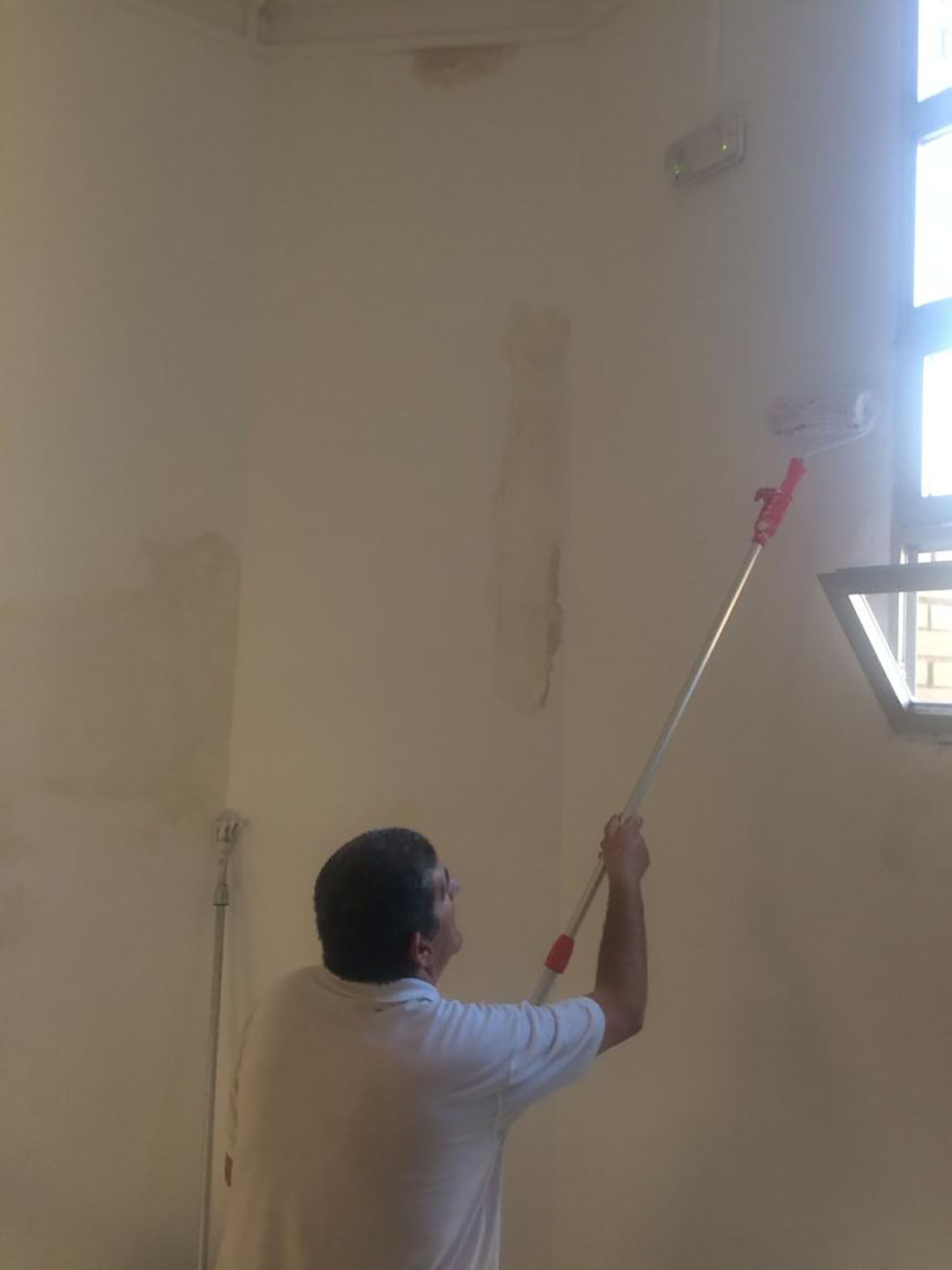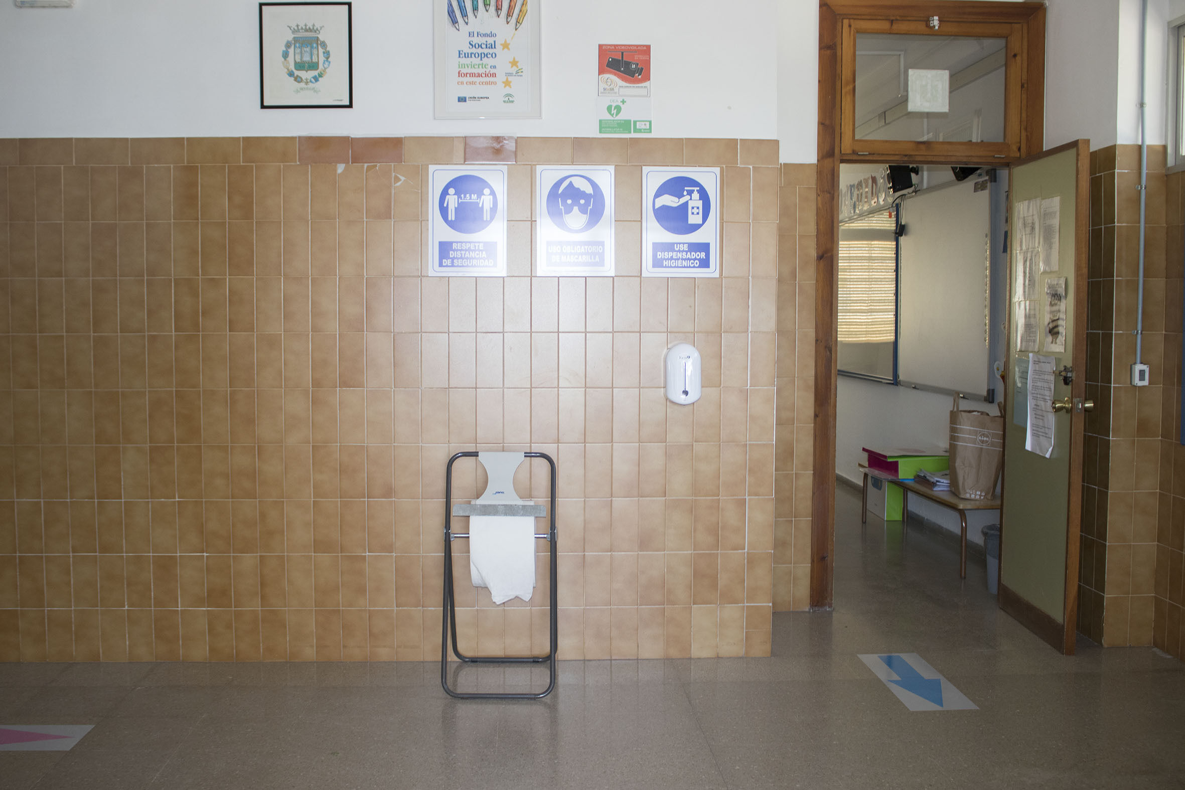 Los primeros trabajos comenzaron abril, en plena pandemia, cuando aprovechando que las aulas estaban vacías, se procedió a una limpieza y desinfección a fondo de todas las clases, usando disolución de hipoclorito para asegurar la eliminación de cualquier virus existente en las instalaciones.