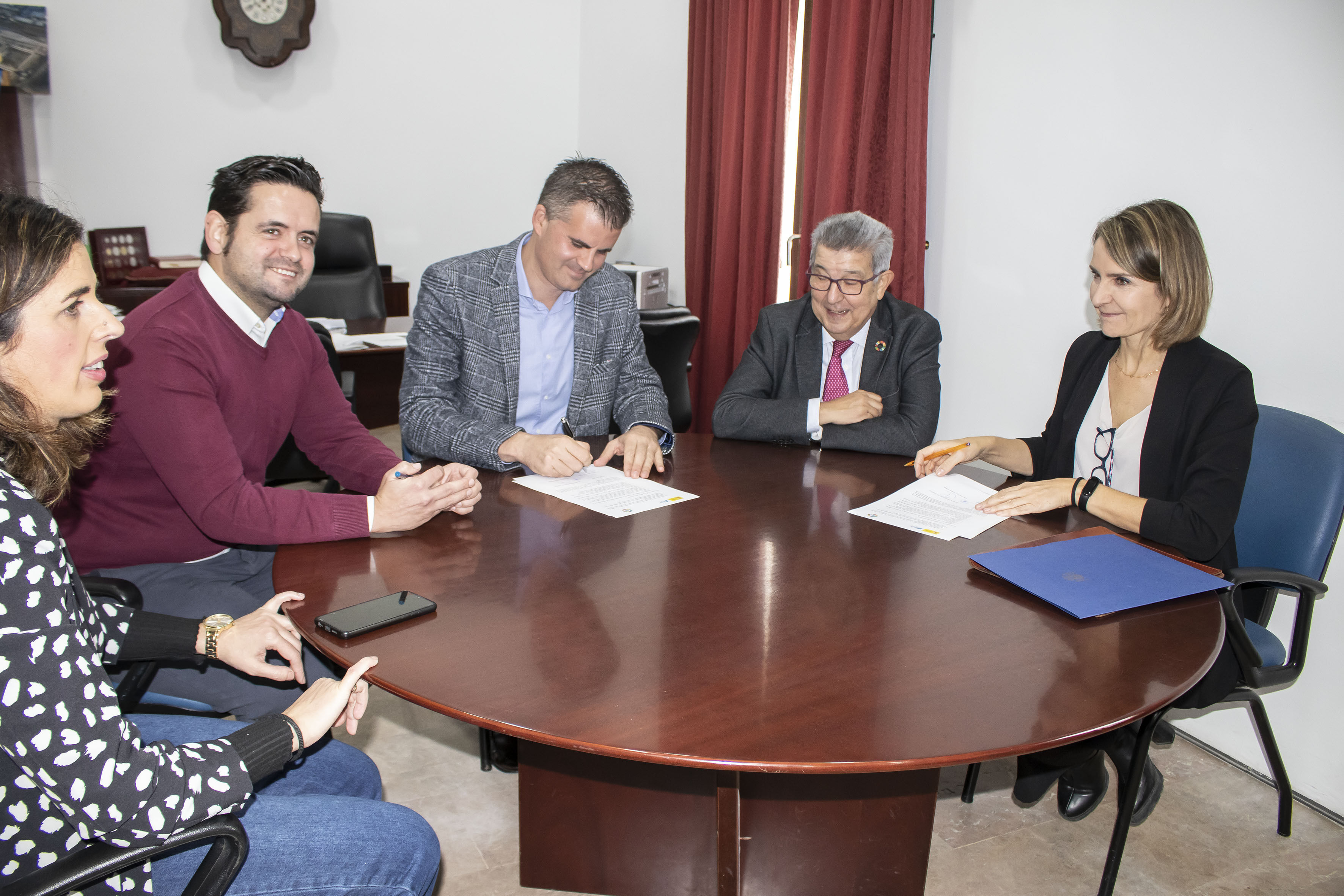 El convenio lo ha firmado el alcalde de la ciudad, Antonio Jesús Muñoz y la directora general de Tráfico, Ana Luz Jiménez. En el acto estaba presente el Subdelegado del Gobierno de España en sevilla Carlos Toscano, quien se ha mostrado satisfecho por la colaboración de las dos instituciones en un proyecto que ya, él mismo anuncio en mayo de 2021, en una de sus visitas a nuestra ciudad. En la mesa se encontraban también los concejales de Urbanismo, David Gamito y de Asuntos Sociales, Beatriz García.