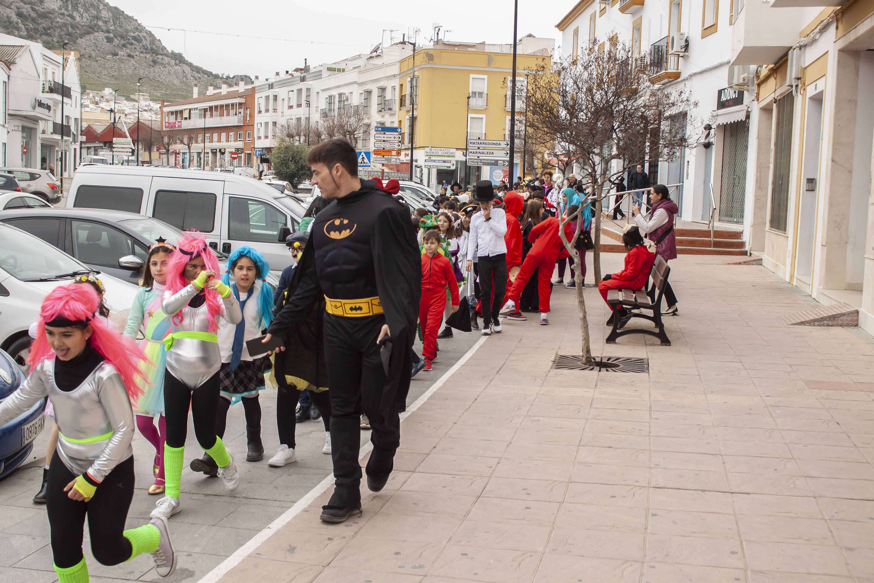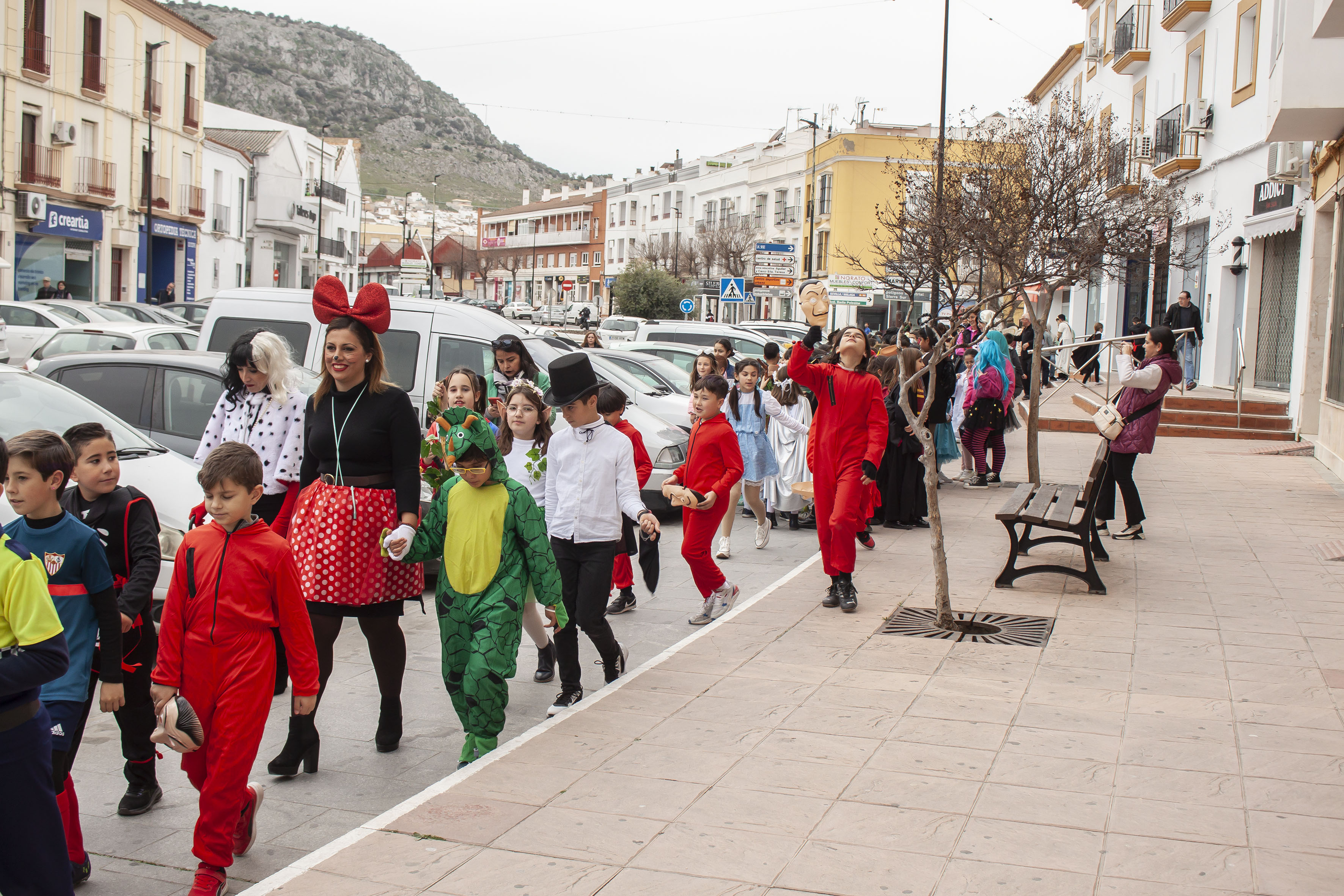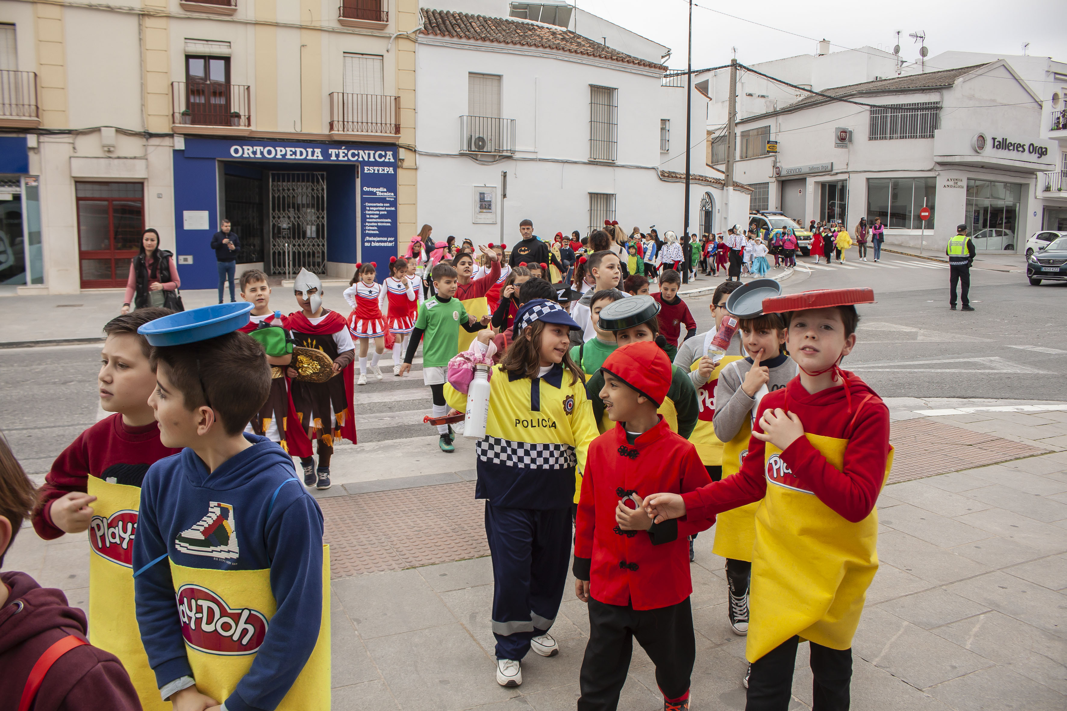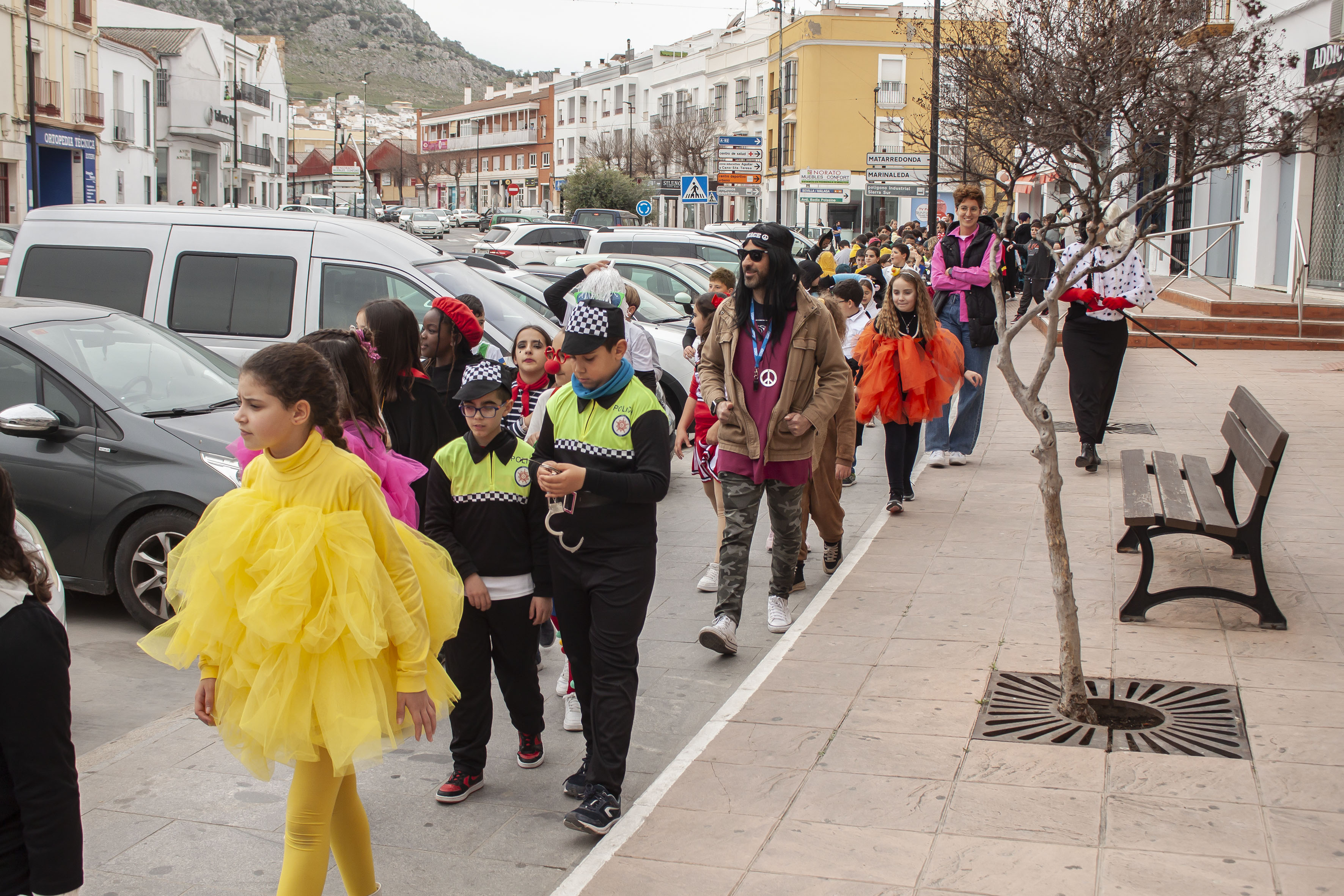 Las alumnas y alumnos del CEIP Santa Teresa han organizado esta mañana un pasacalles para celebrar el carnaval. Los pequeños han visitado a sus compis del centro de calle Écija.
