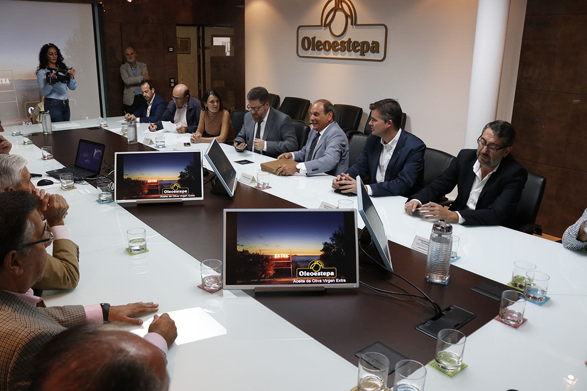 Tras atender a los medios, el consejero se ha reunido con la Junta Directiva de Oleoestepa para intercambiar impresiones a apenas unos días antes de comenzar la nueva campaña de recogida de la aceituna que darán los nuevos Aceites de Oliva Virgen Extra. Este encuentro ha contado también con la presencia de la Directora General de Industrias y Cadena Agroalimentaria, Rosa Isabel Rios Martínez, el Director General de Producción Agrícola y Ganadera, Rafael Olvera Porcel y el Delegado de Agricultura, Segundo Benítez Fernández.