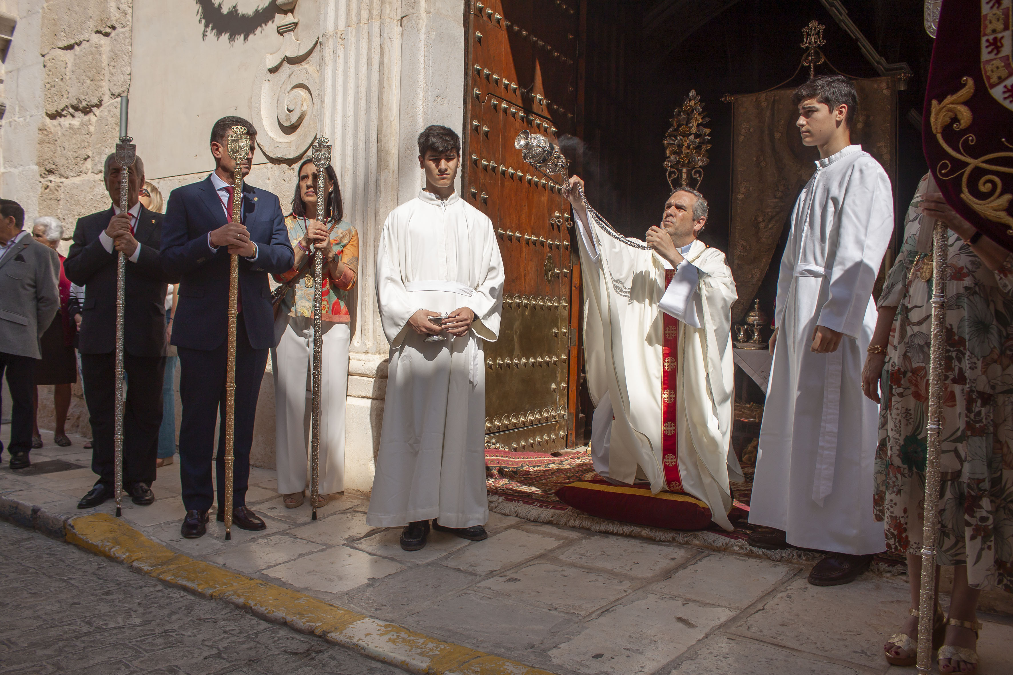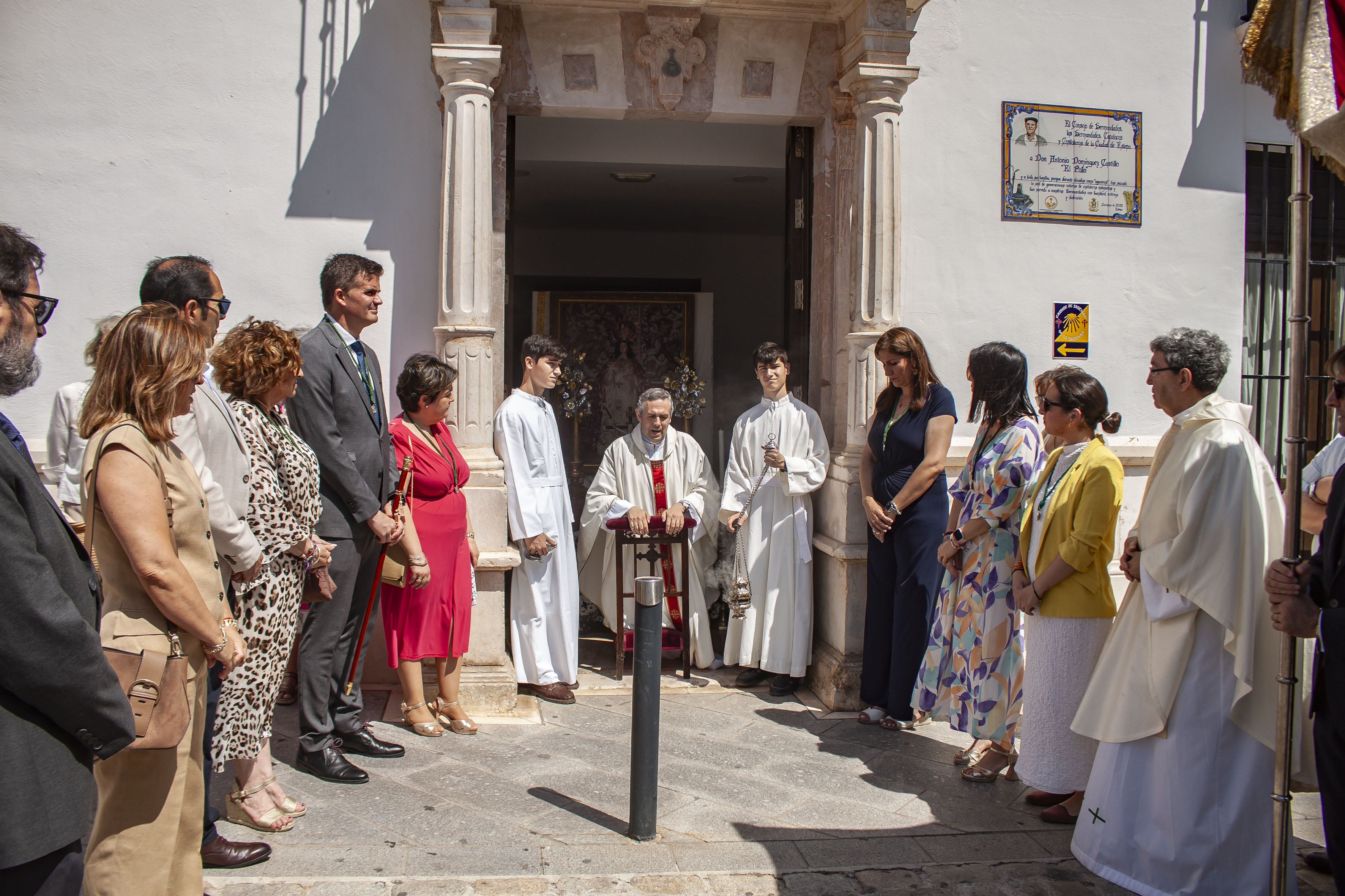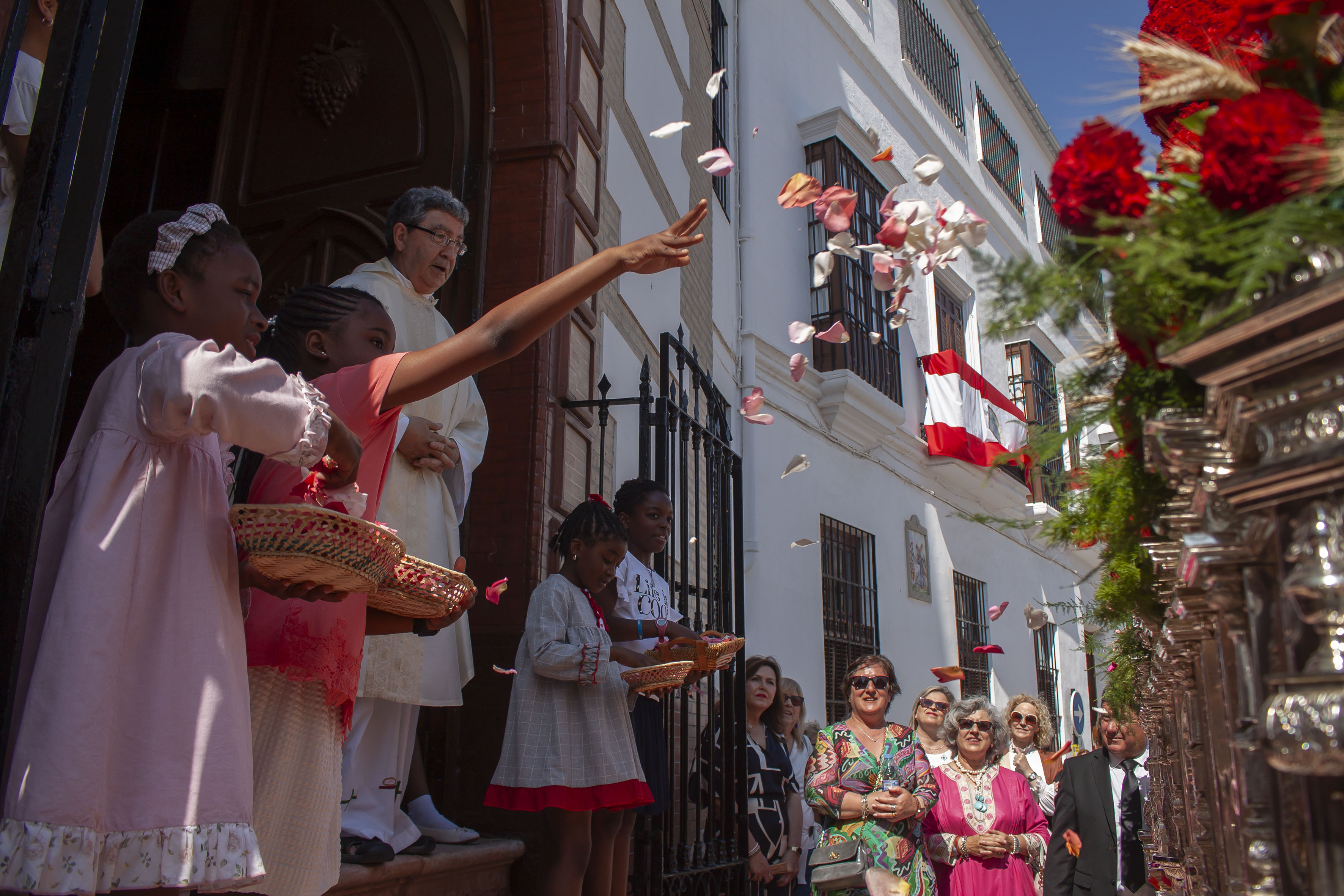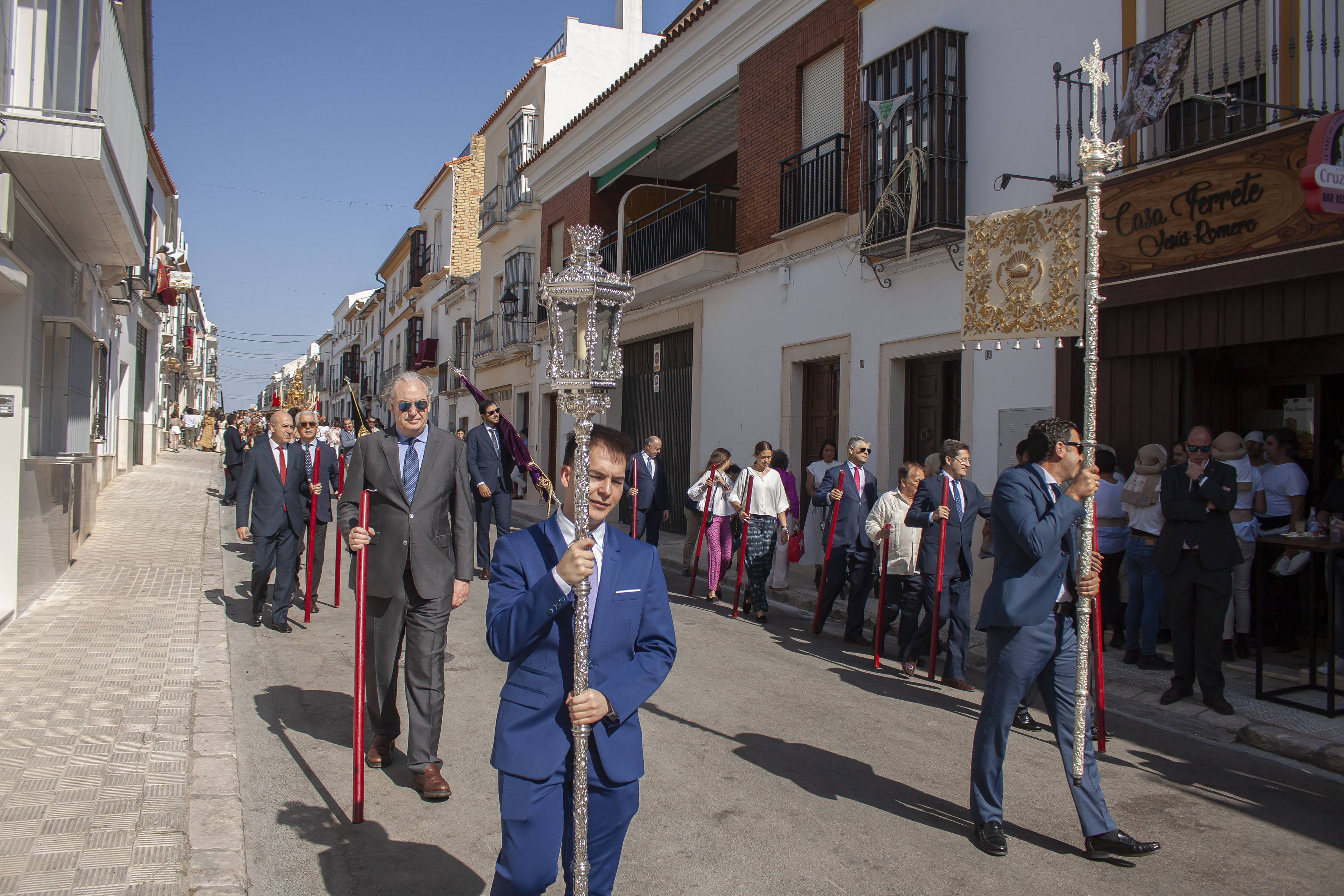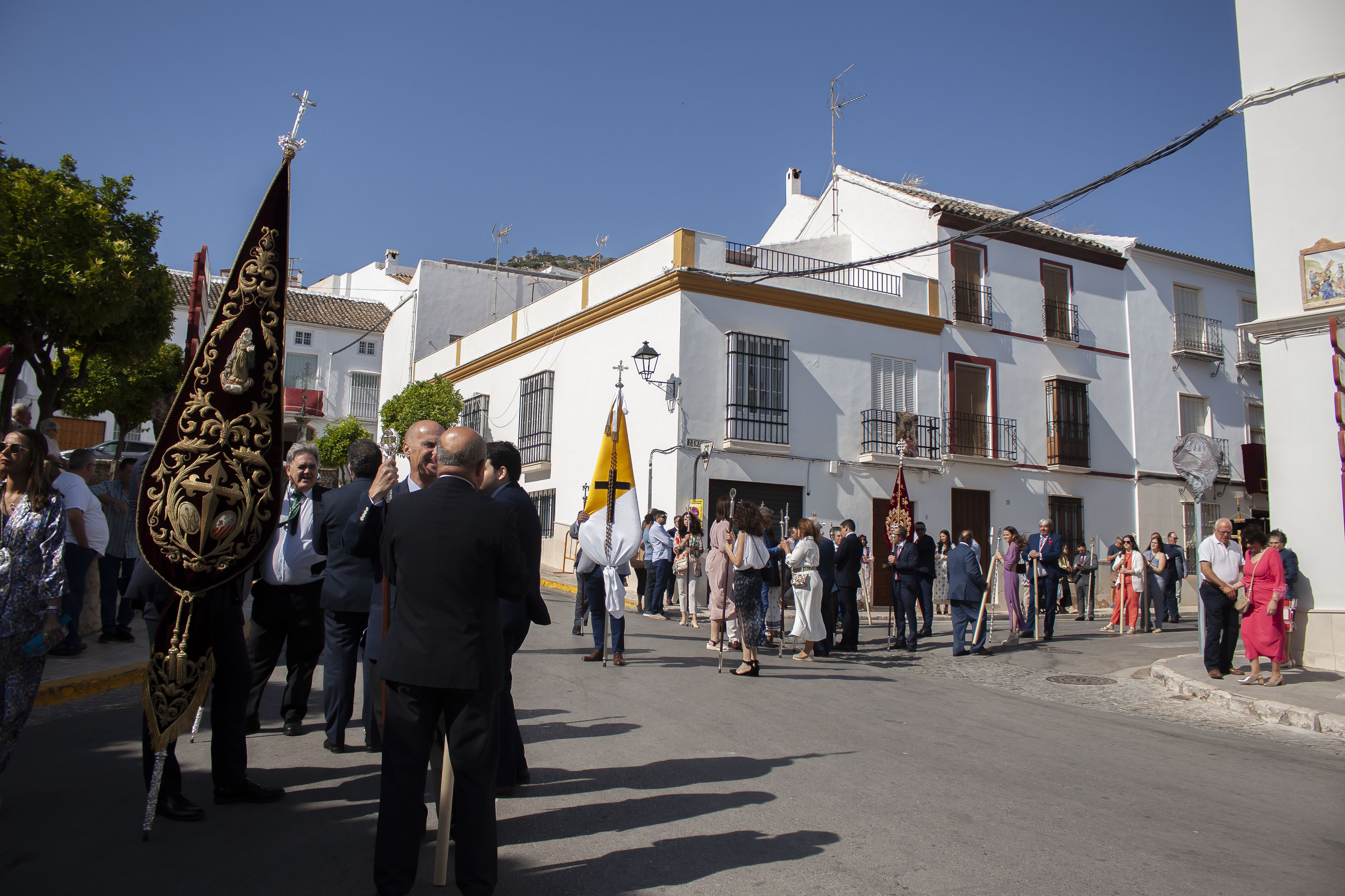 El presidente del Consejo General de Hermandades, Antonio Bustos Cabello y la Corporación Municipal, encabezada por el alcalde, Antonio Jesús Muñoz Quirós, han acompañado a la precesión, tras el paso de la Custodia.