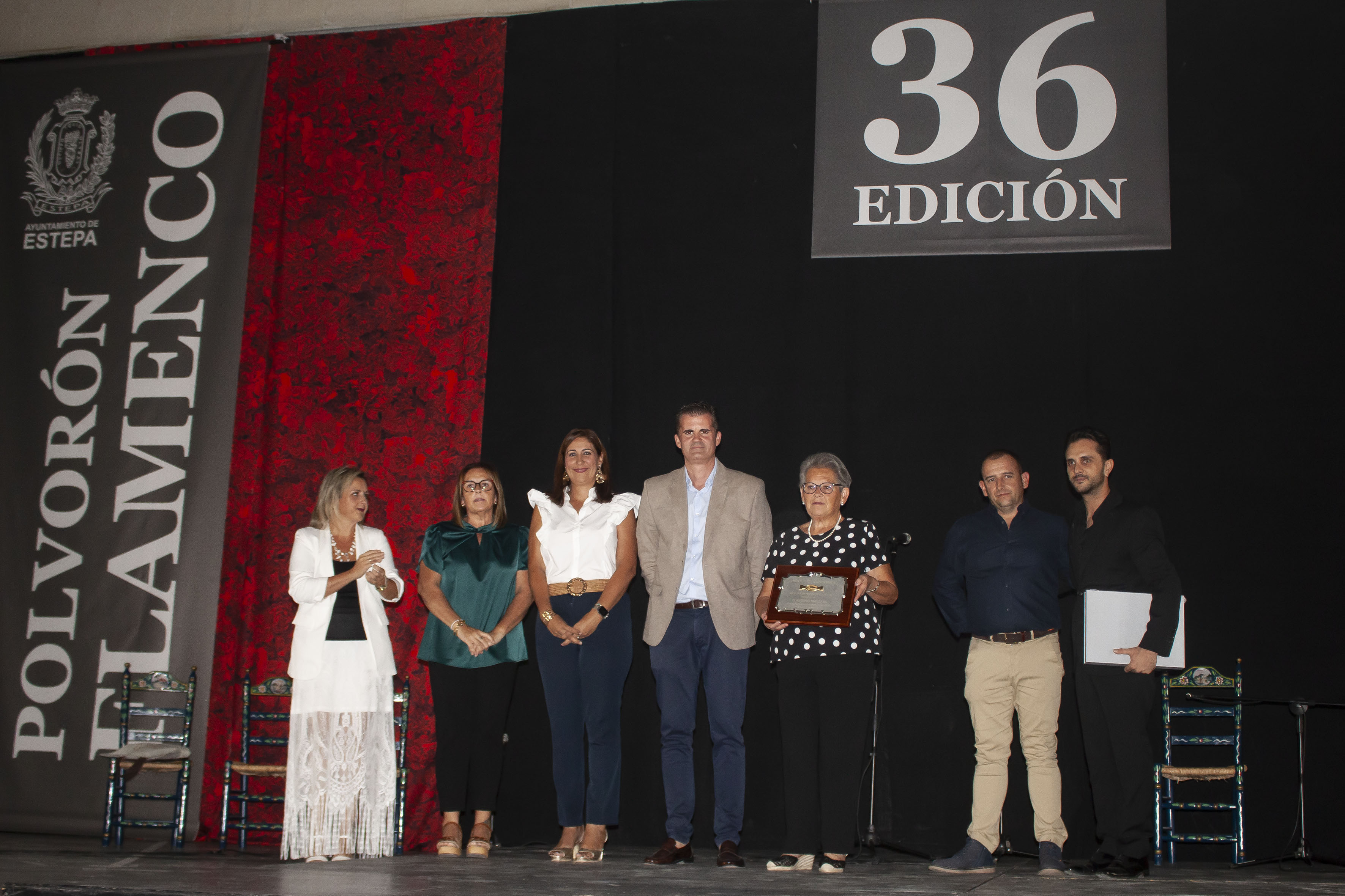El alcalde, Antonio Jesús Muñoz y la concejala de Cultura, Ascen Castillo, han hecho entrega junto al presidente de la peña, Armando Mateos, del distintivo del Polvorón a la familia de Antonio Manzano.