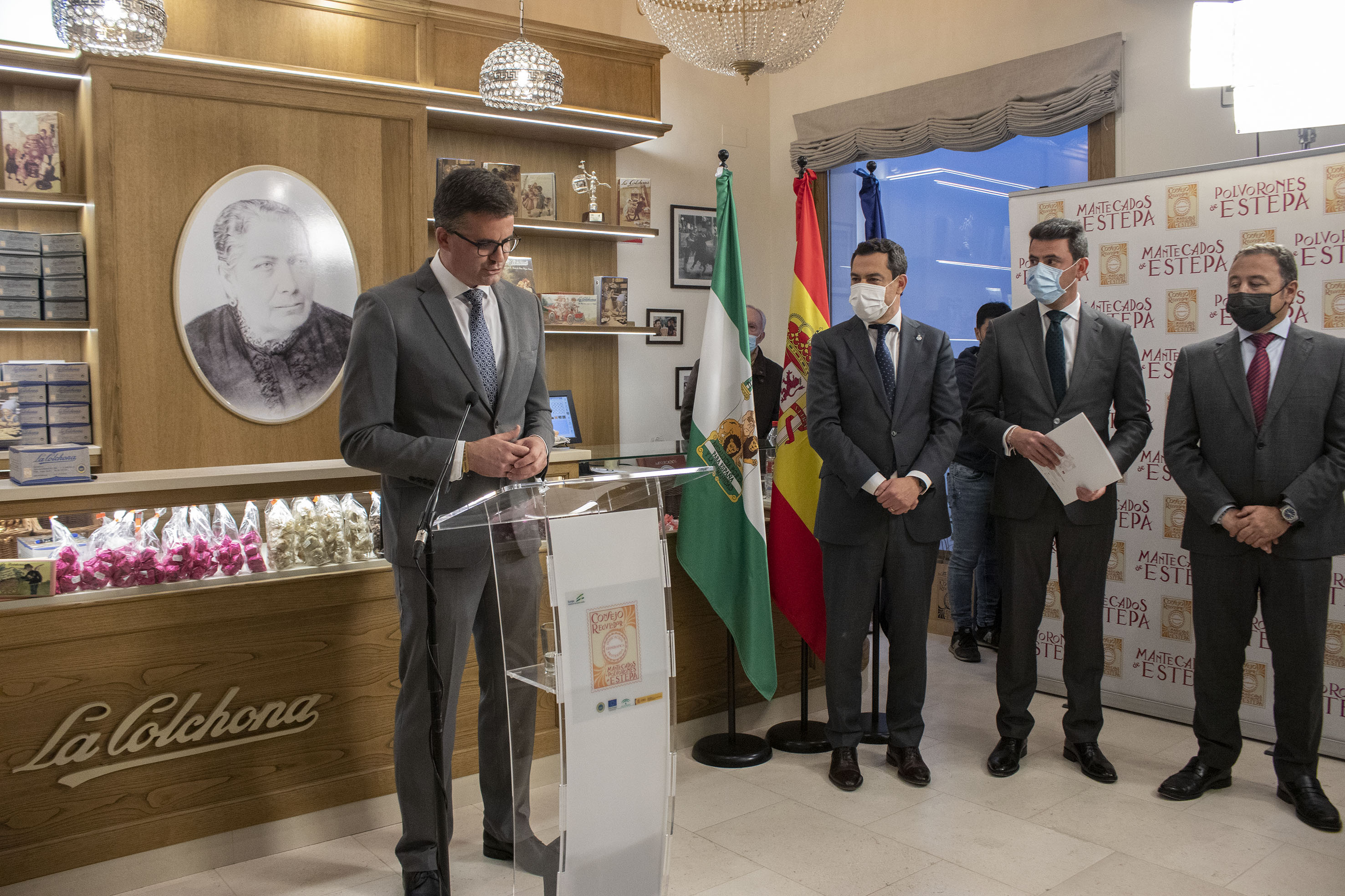 La fábrica artesanal de La Colchona, ha sido el lugar escogido para dar la bienvenida al presidente. El alcalde de Estepa, Antonio Jesús Muños, junto con la Corporación Municipal y el presidente del Consejo Regulador IGP Mantecados y Polvorones de Estepa, José María Fernández, han dado la bienvenida a la comitiva, en la que además de Moreno Bonilla, contaba también con la presencia del delegado del gobierno de la Junta de Andalucía en Sevilla, Ricardo Sánchez Antúnez.