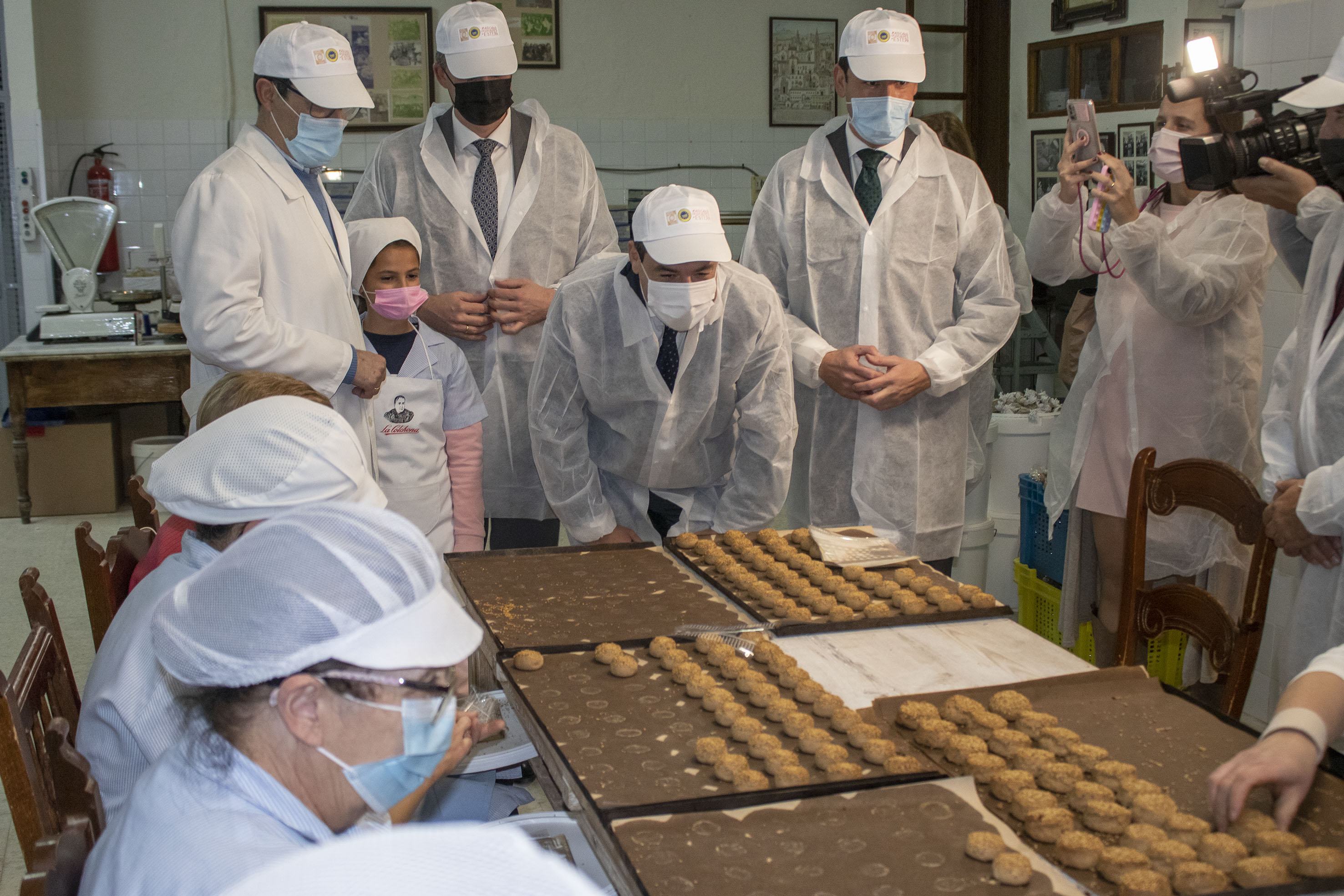 La familia Fernández Alfaro, quinta generación ya de los dulces de La Colchona, han abierto las puertas de su obrador a la visita del presidente y como el resto de fábricas de Estepa, confían en cerrar una campaña con récord de producción de mantecados y polvorones.