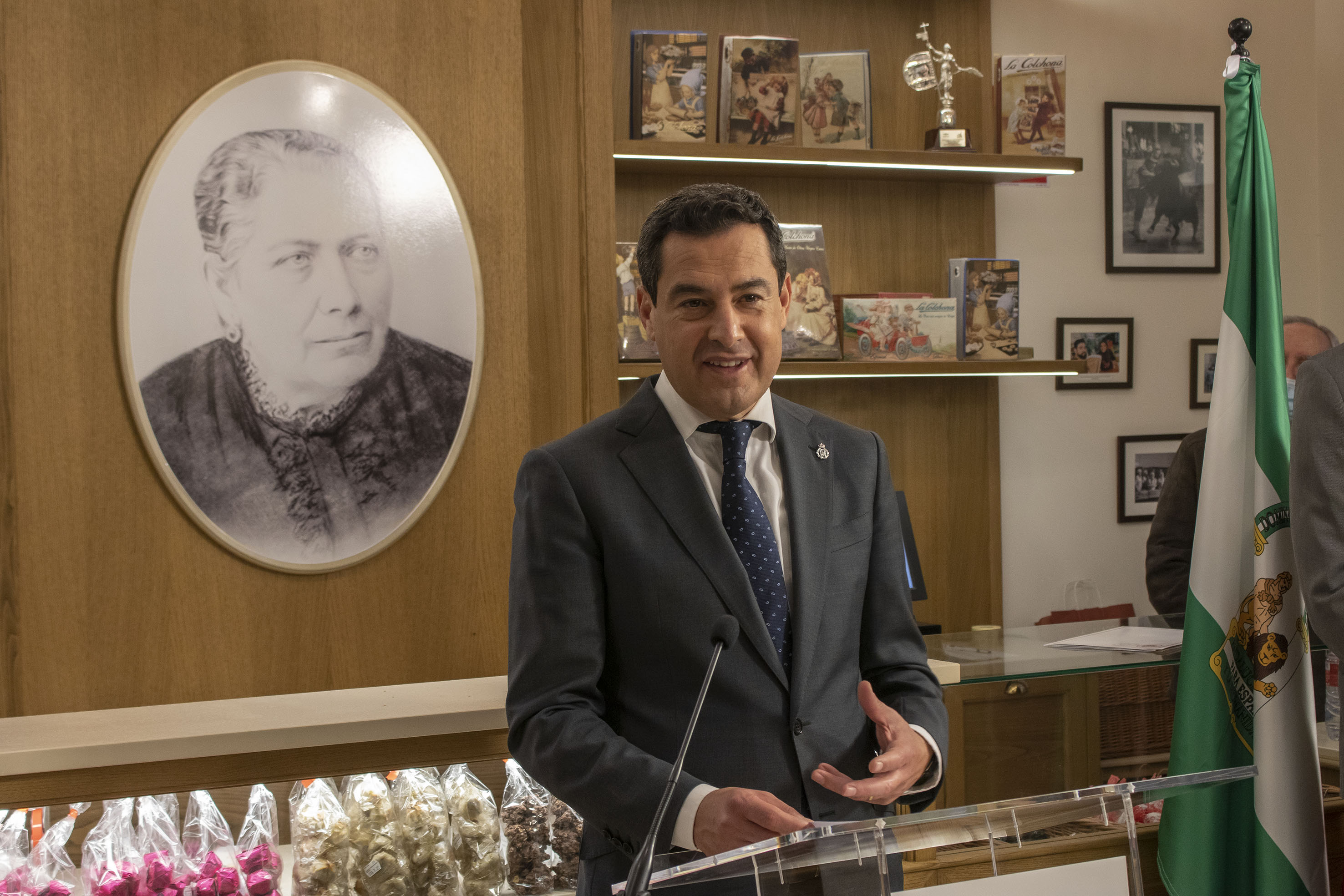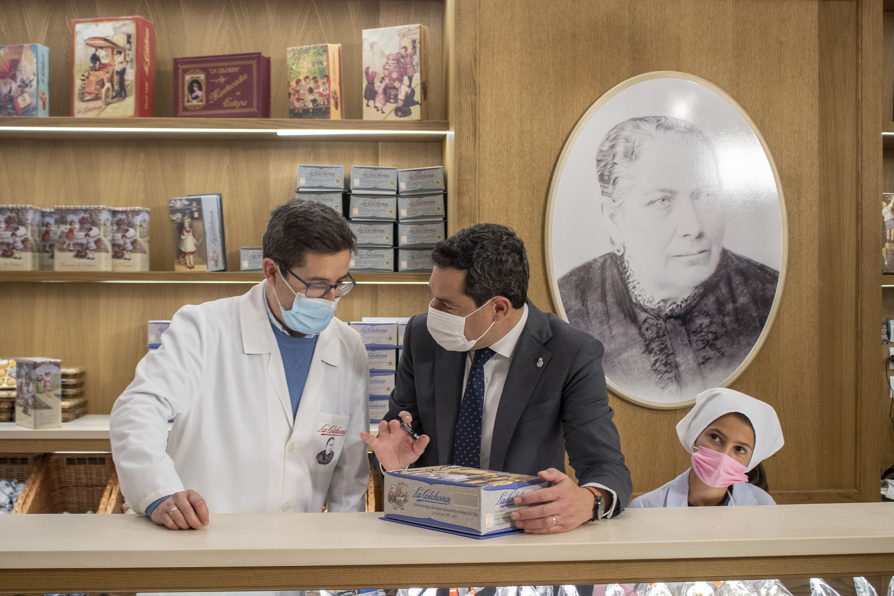 Cuando se encara la recta final de esta campaña de mantecados y polvorones, hemos recibido la grata visita de Juan Manuel Moreno Bonilla, presidente de la Junta de Andalucía, en Estepa.