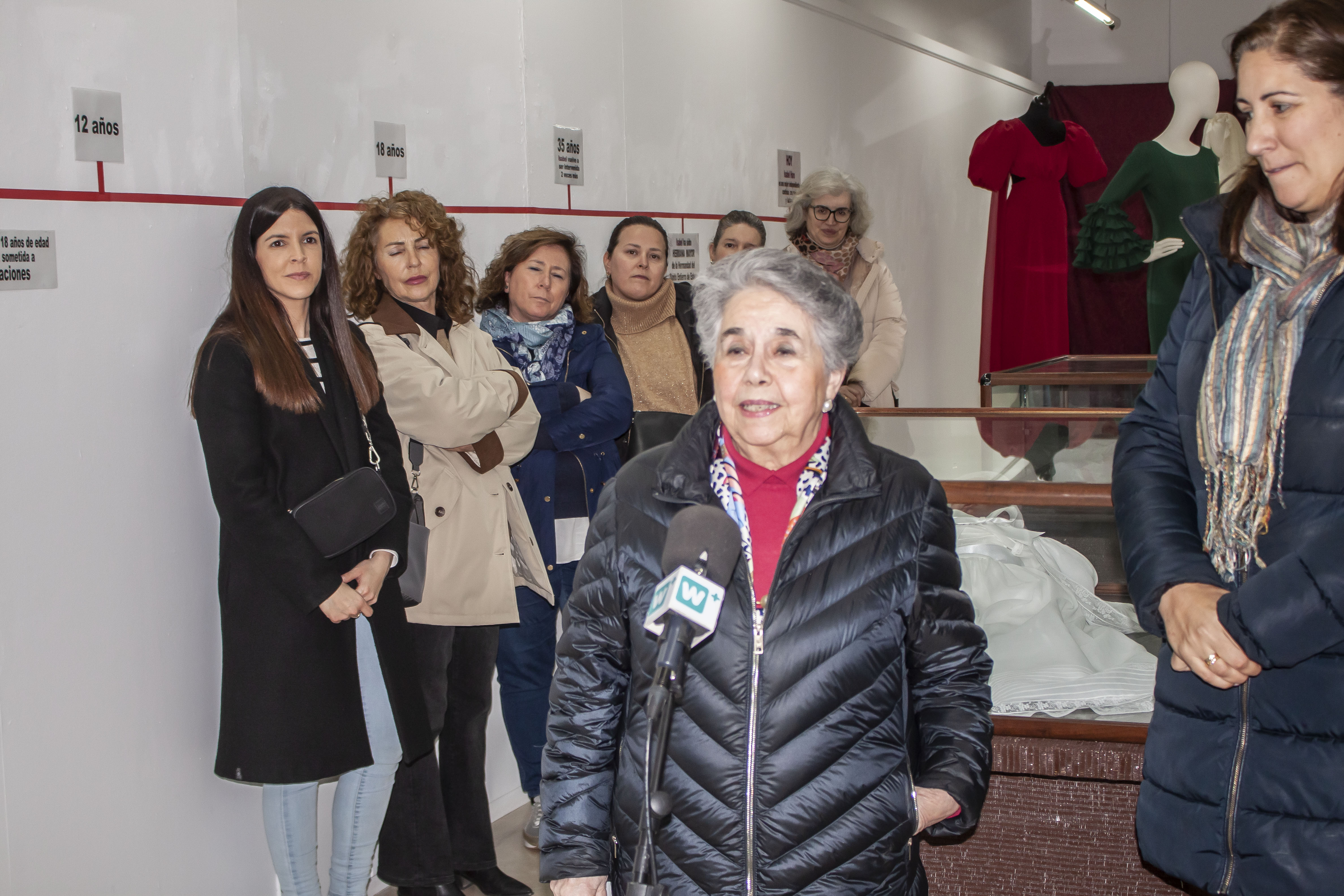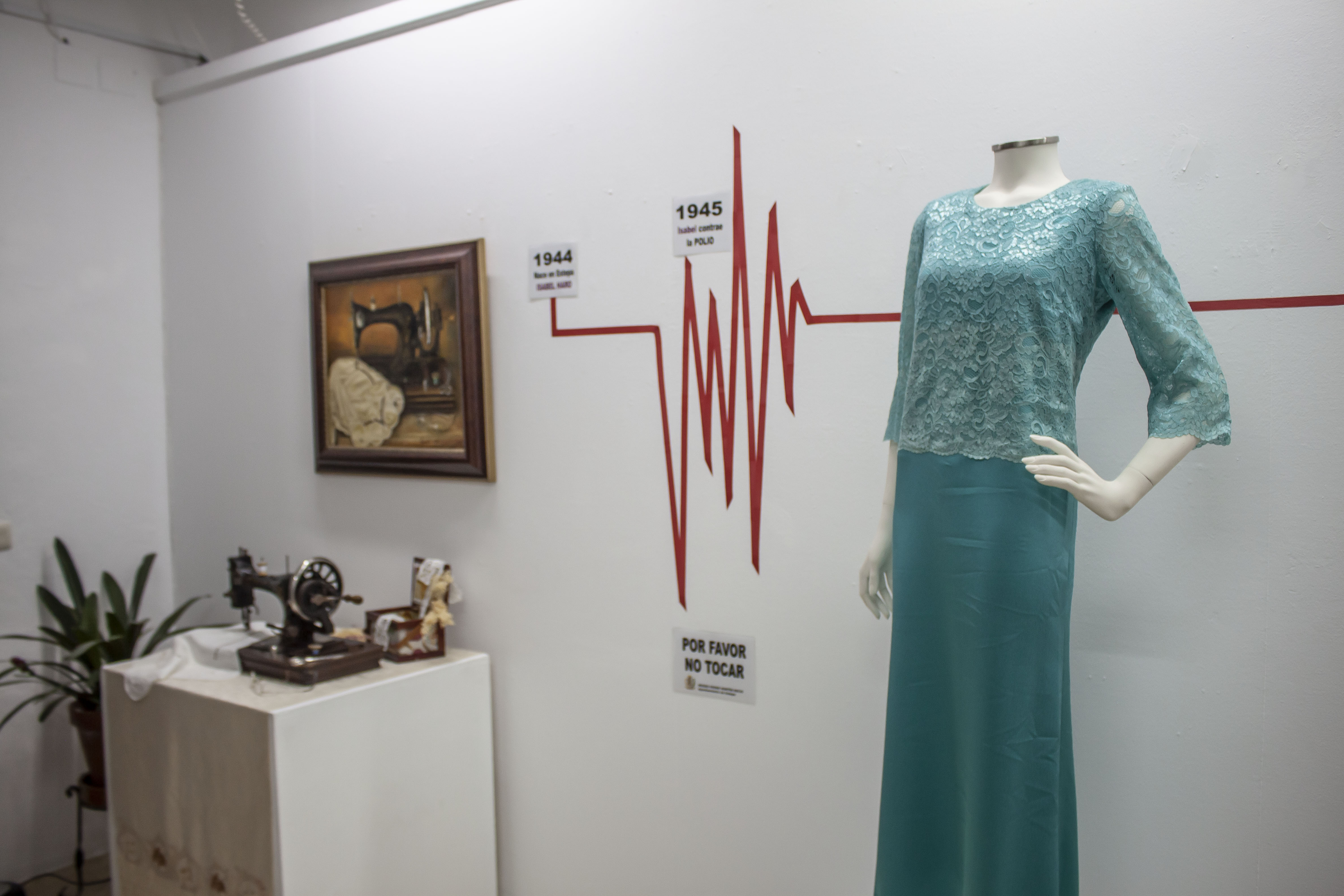 En la exposición se pueden ver prendas diseñadas y realizadas al más alto nivel de la confección, tras las que se ocultan las dificultades físicas y adversidades de todo tipo a las que ha tenido y tiene que hacer frente nuestra vecina. Como curiosidad, decir que Isabel nunca usó patrones para diseñar y realizar sus prendas, como María Aurora, comentó, "solo tenías que pedirle la prenda que querías y ella, tomaba medidas, cosía y te ofrecía justo lo que buscabas..."