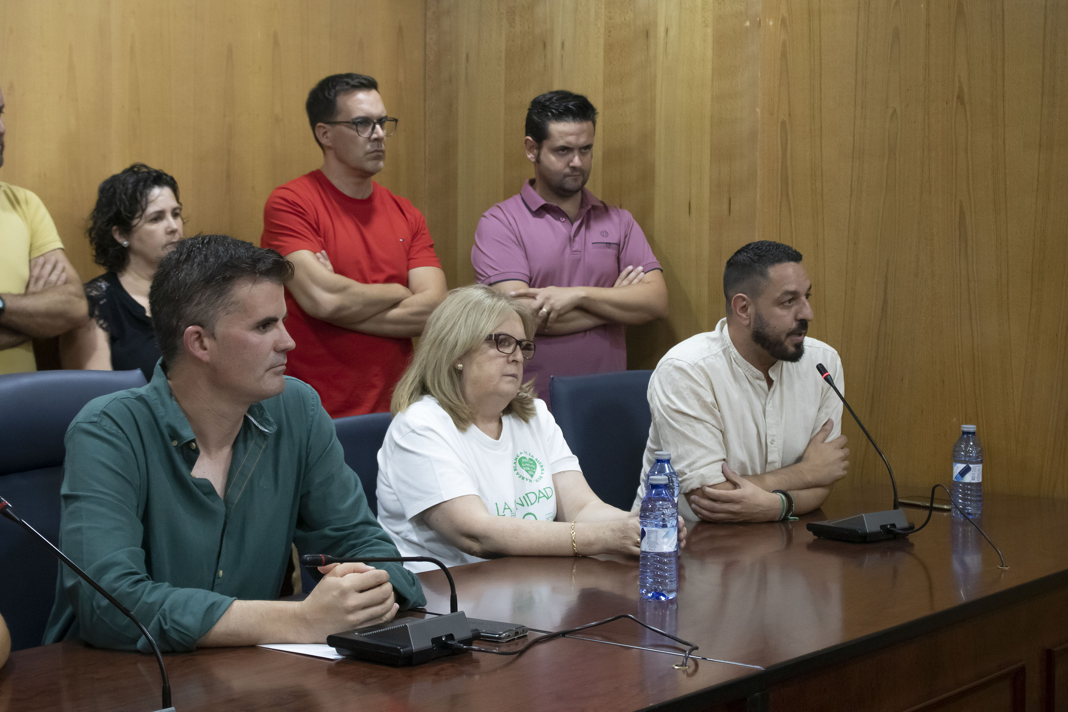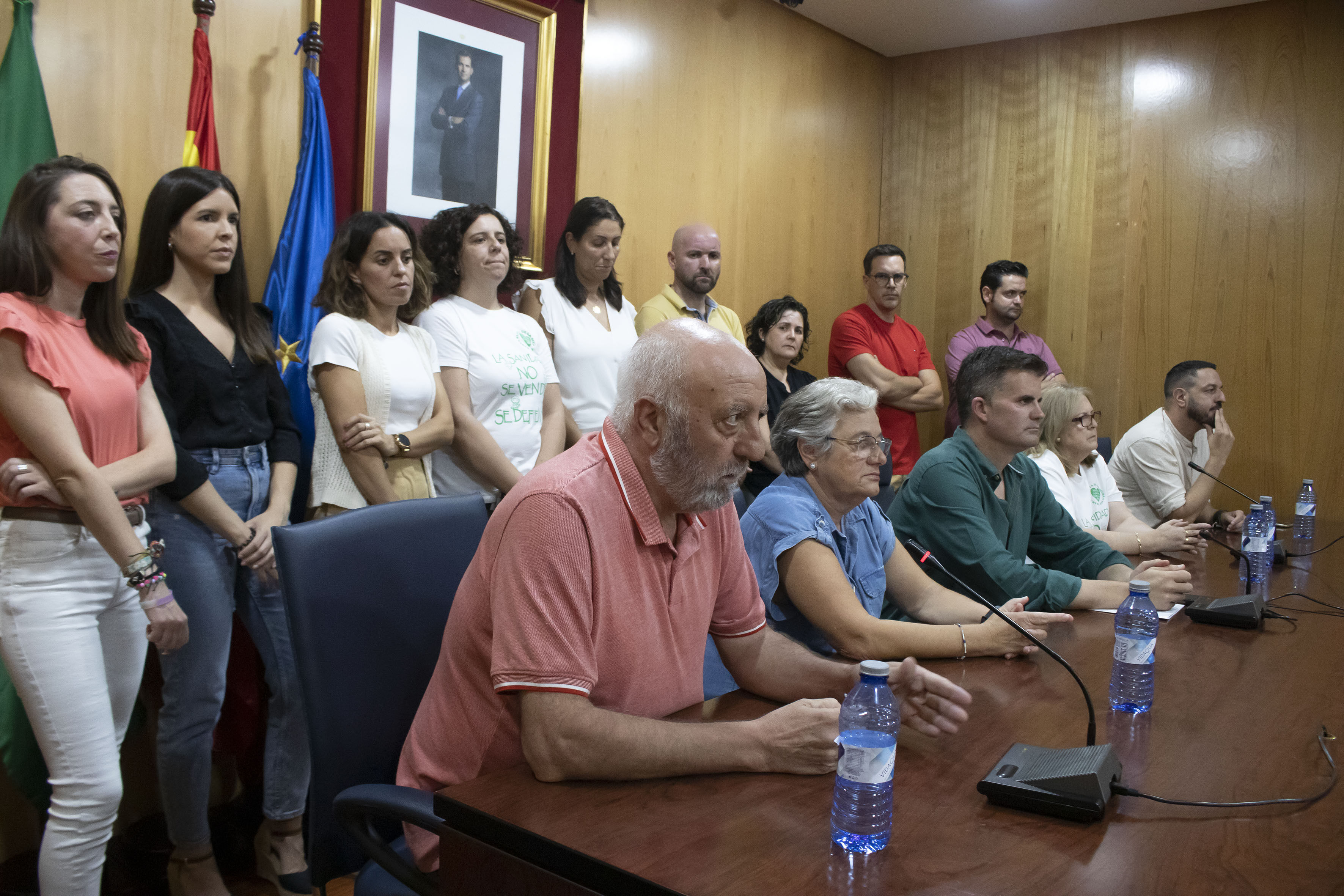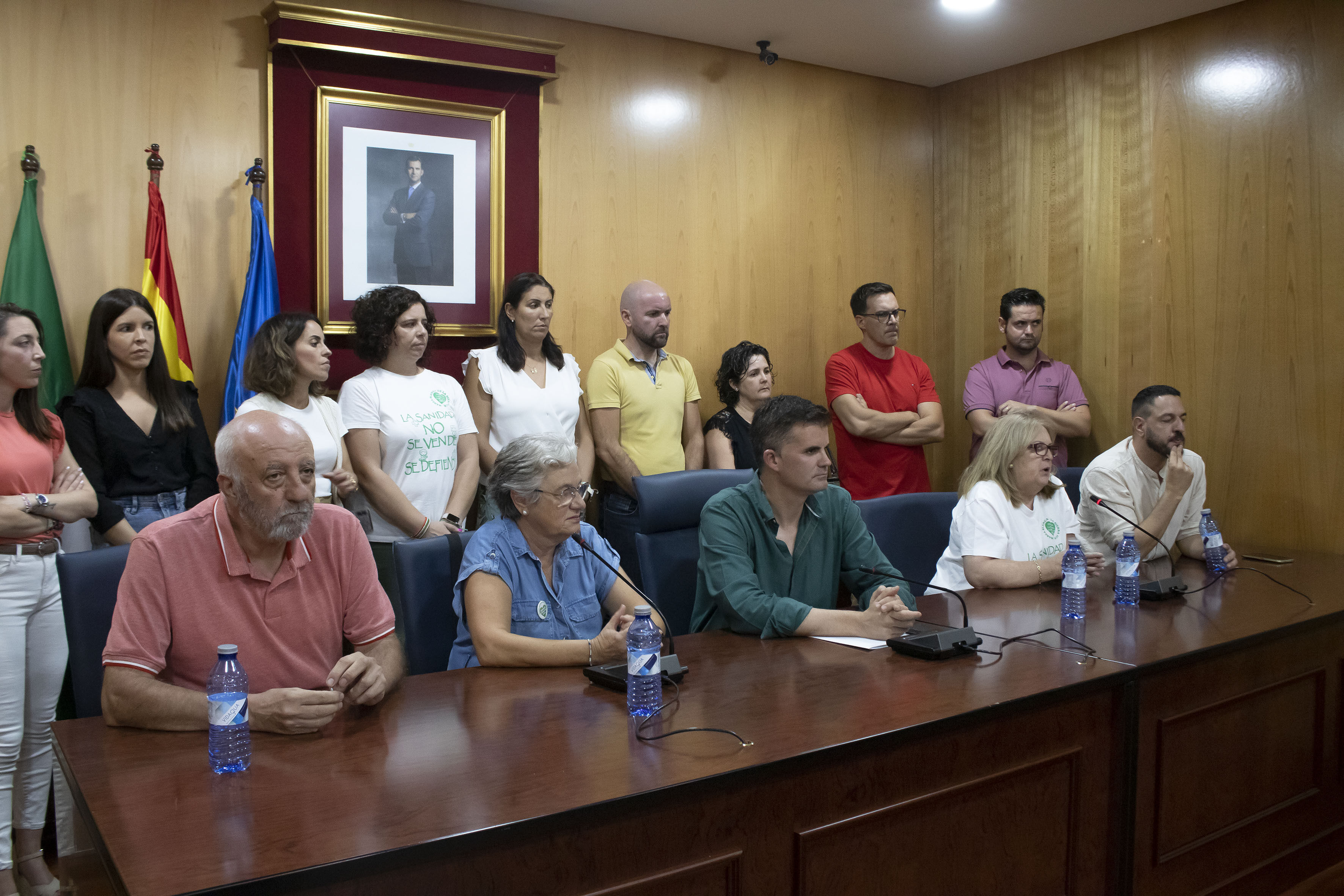 El alcalde de Estepa, Antonio Jesús Muñoz y el alcalde de Marinaleda, Sergio Gómez, han apoyado este encierro en la sala de Plenos del Ayuntamiento de Estepa, junto a miembros de Marea Blanca Estepa, como Gregoria Reina y Marea Blanca Sierra Sur como Nuria Roig y Juan Monedero.