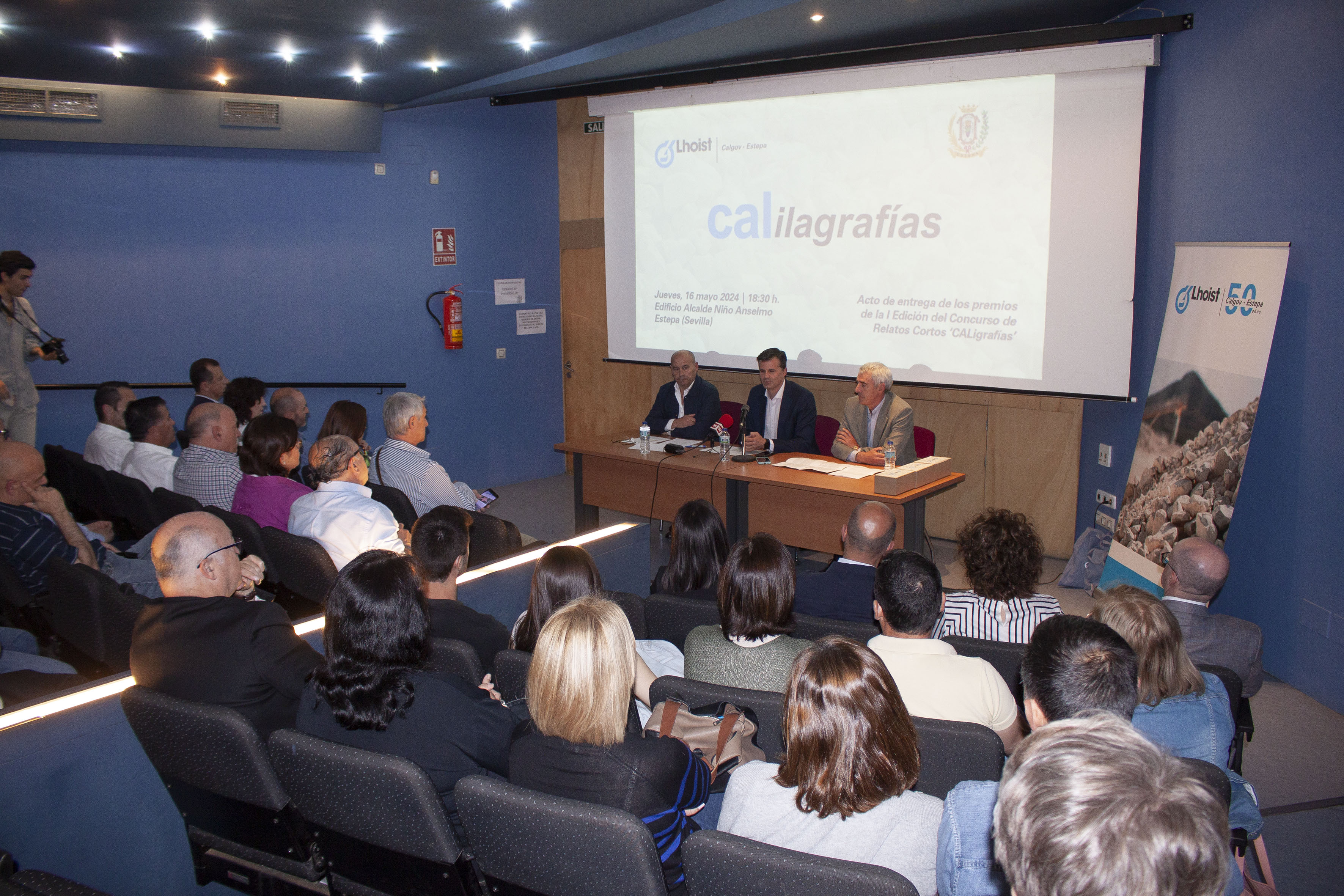El salón de actos del edificio social "Alcalde Niño Anselmo" de Estepa, acogió ayer el acto de entrega de los galardones a los premiadas en el I Concurso de Relatos Cortos "CALigrafías", que ha organizado la empresa Calgov del grupo Lhoist.