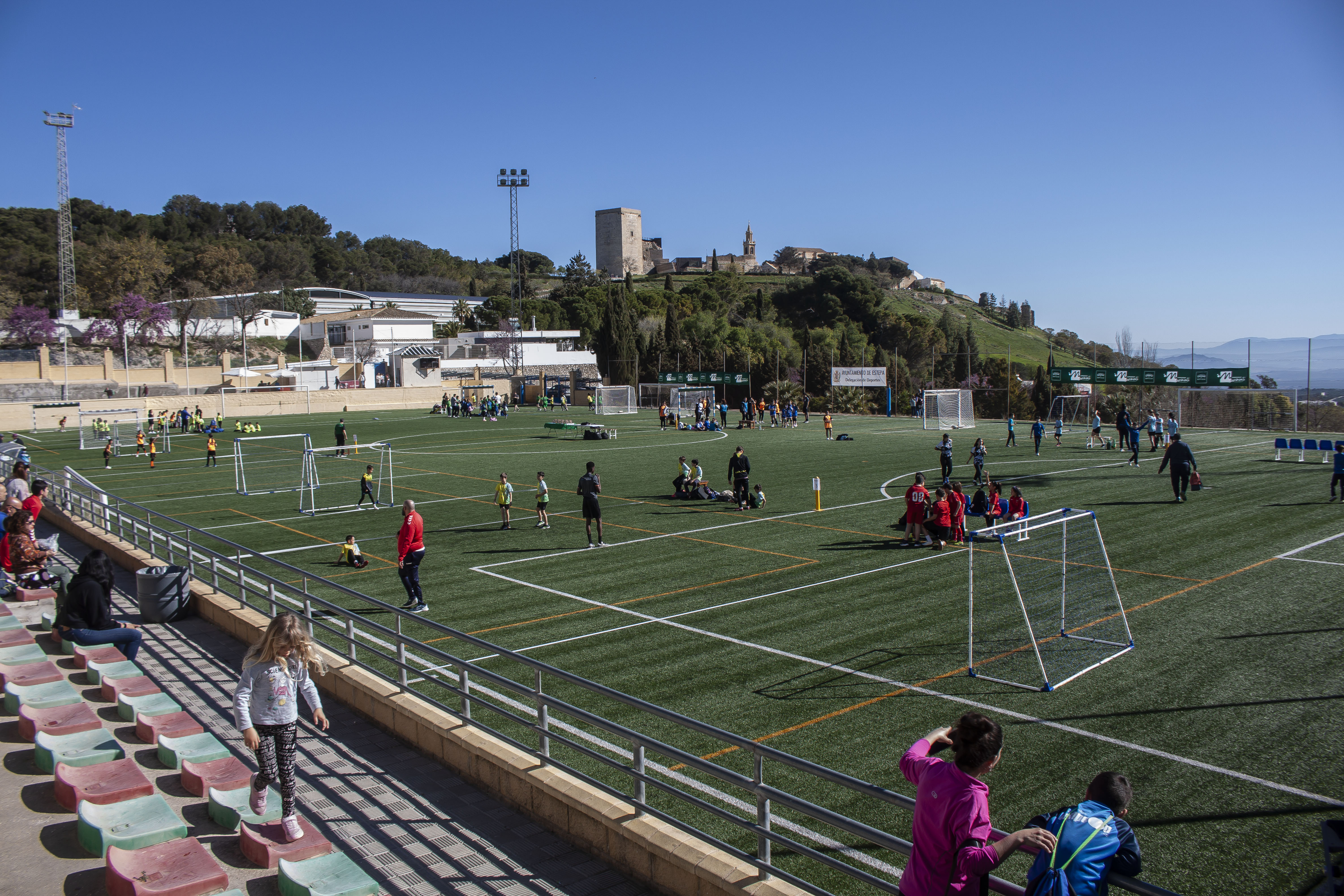 Brillante mañana de deporte hoy en Estepa. El campo de fútbol "Eusebio Olmedo", acoge en esta soleada mañana de sábado las finales de los Juegos Provinciales de la Diputació de Sevilla.